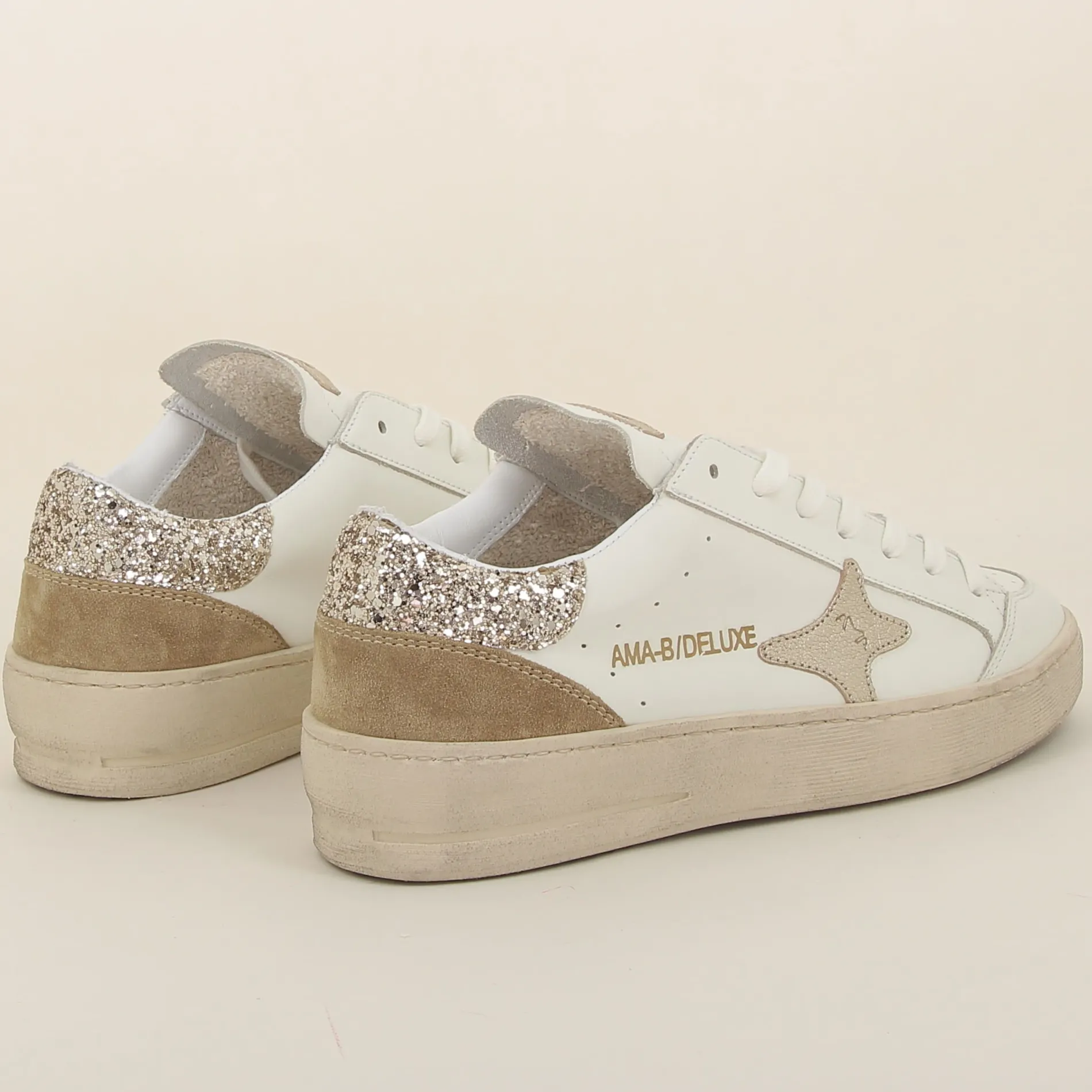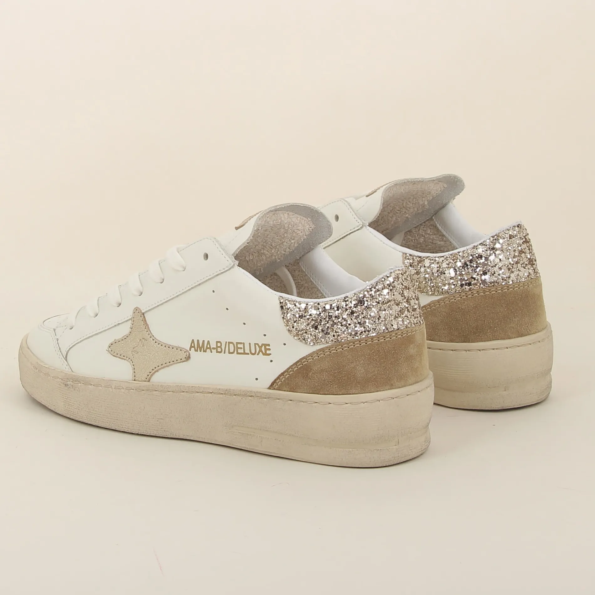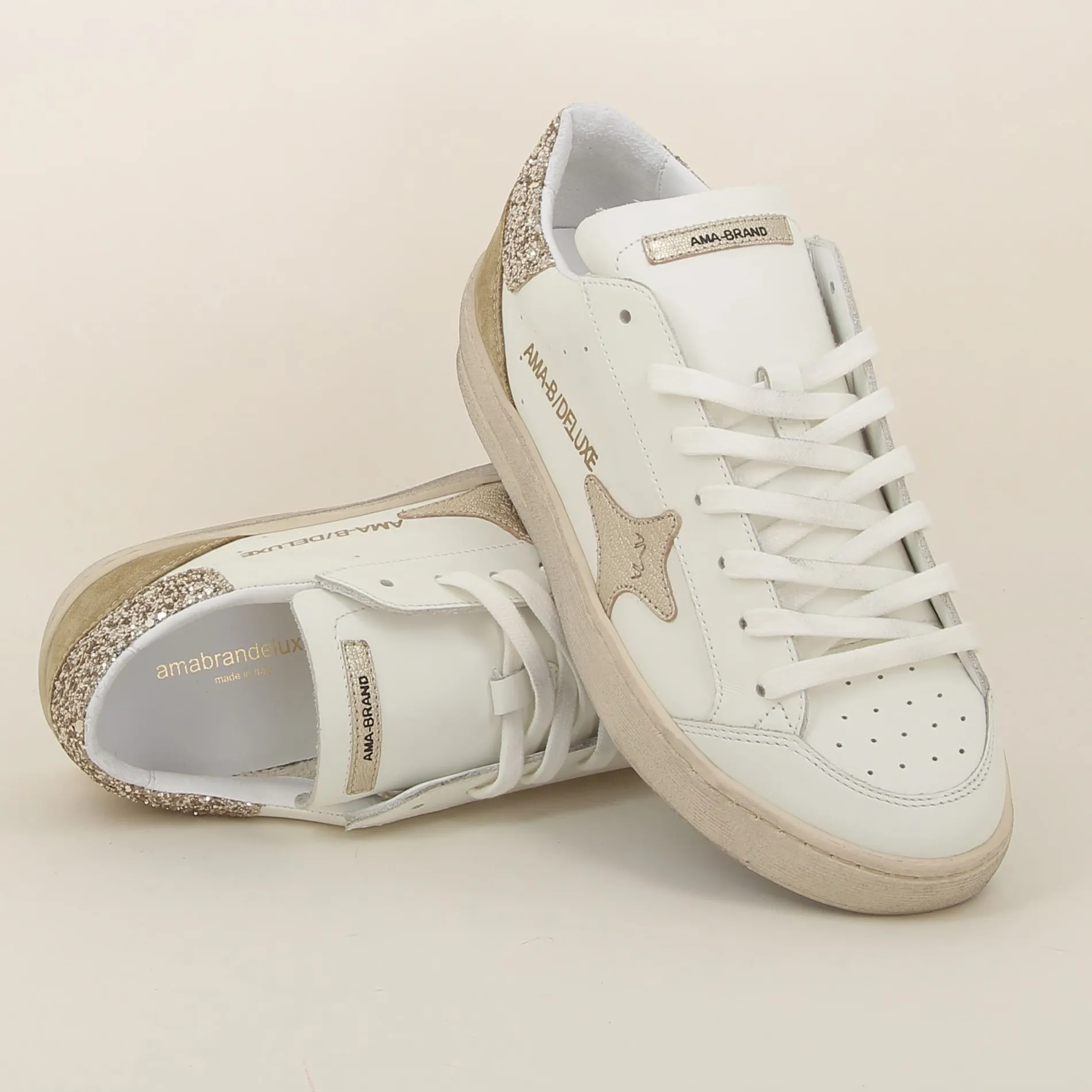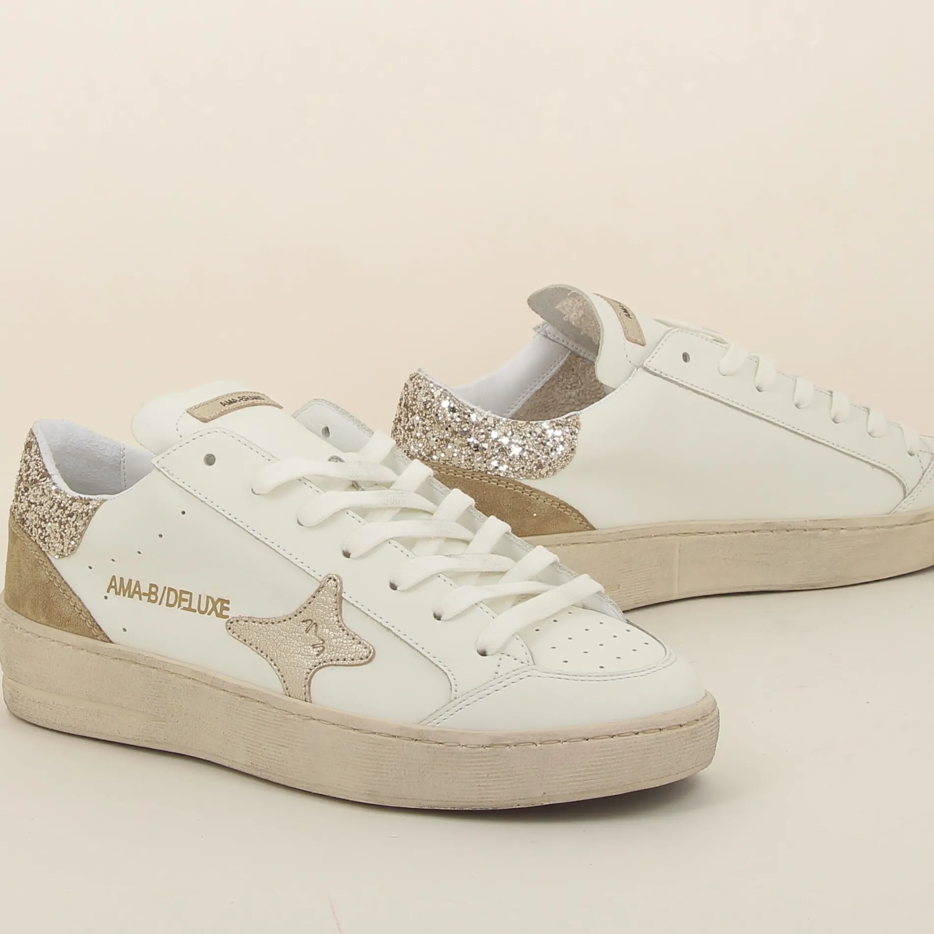 ★ Languette : La languette en cuir blanc est ornée d’un patch doré Ama-brand, apportant une subtile touche de luxe.