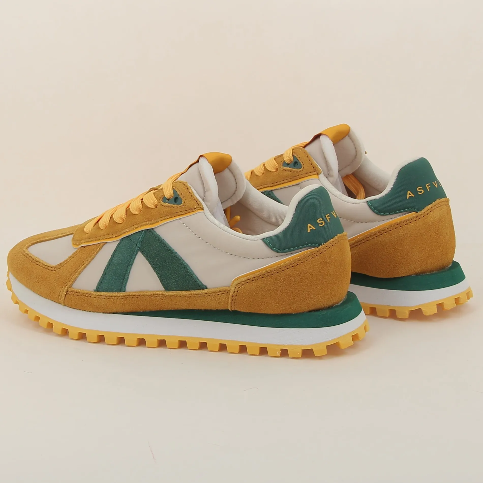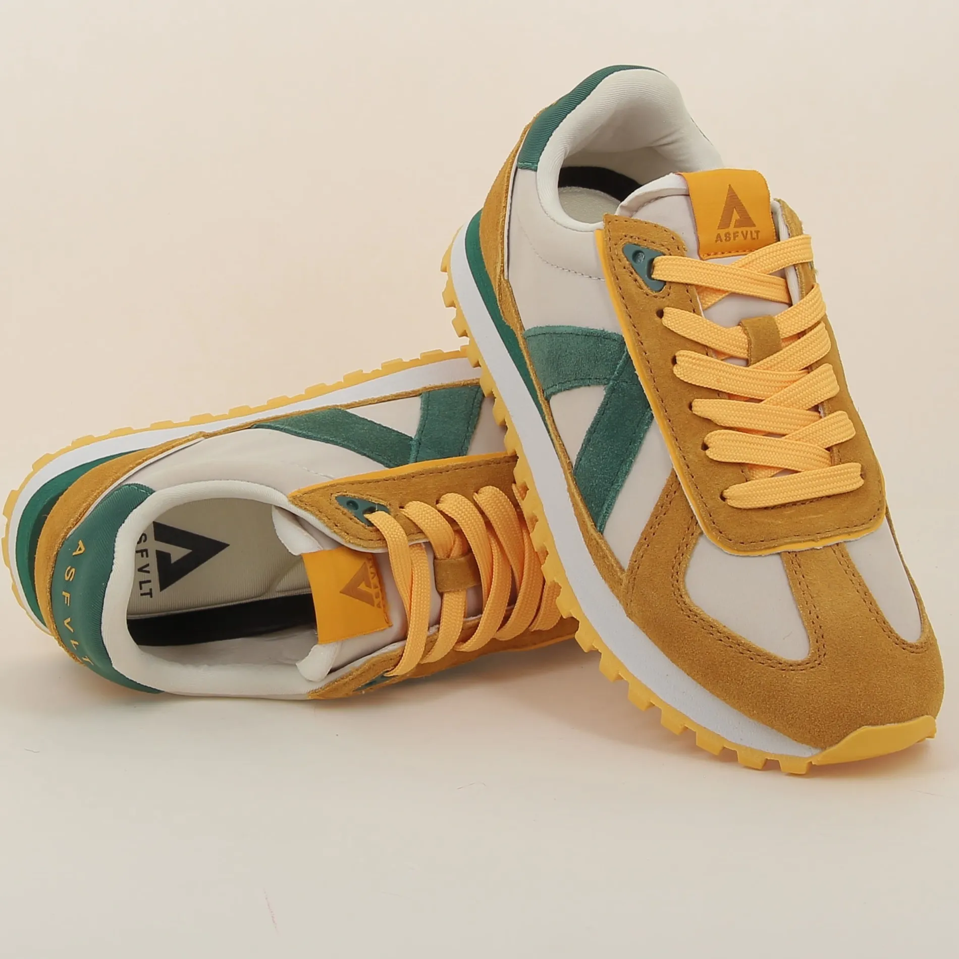 Ces baskets ASFVLT combinent un design vintage avec des éléments modernes pour un confort exceptionnel et un look unique, parfaites pour un usage quotidien ou sportif.