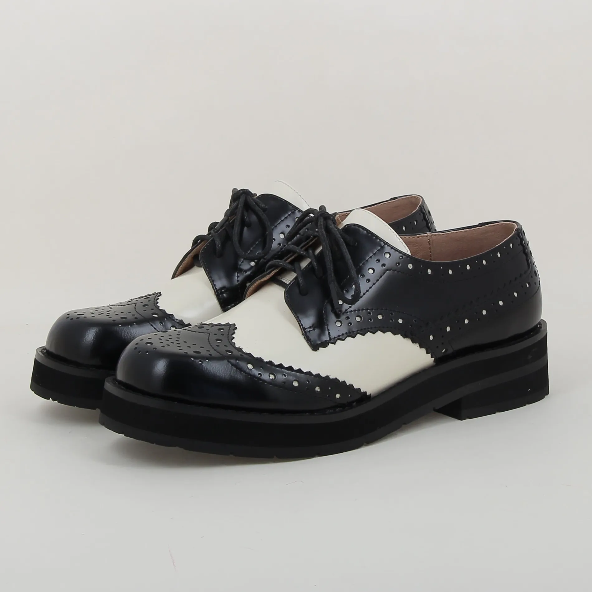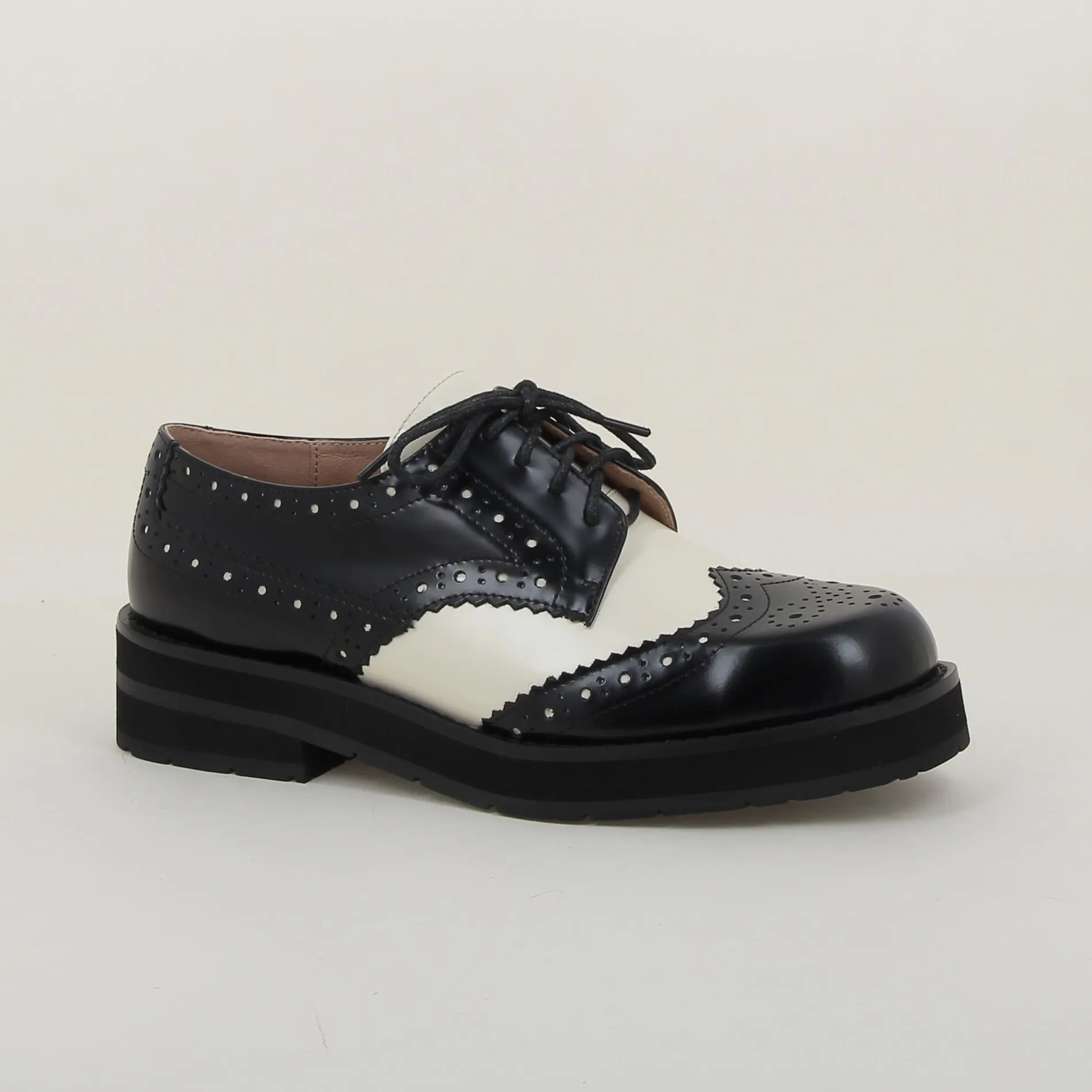 Ce Derby Bicolore en Cuir Noir et Blanc est idéal pour celles qui recherchent un modèle chic et confortable, parfait pour des occasions formelles ou pour apporter une touche d’élégance à une tenue décontractée.