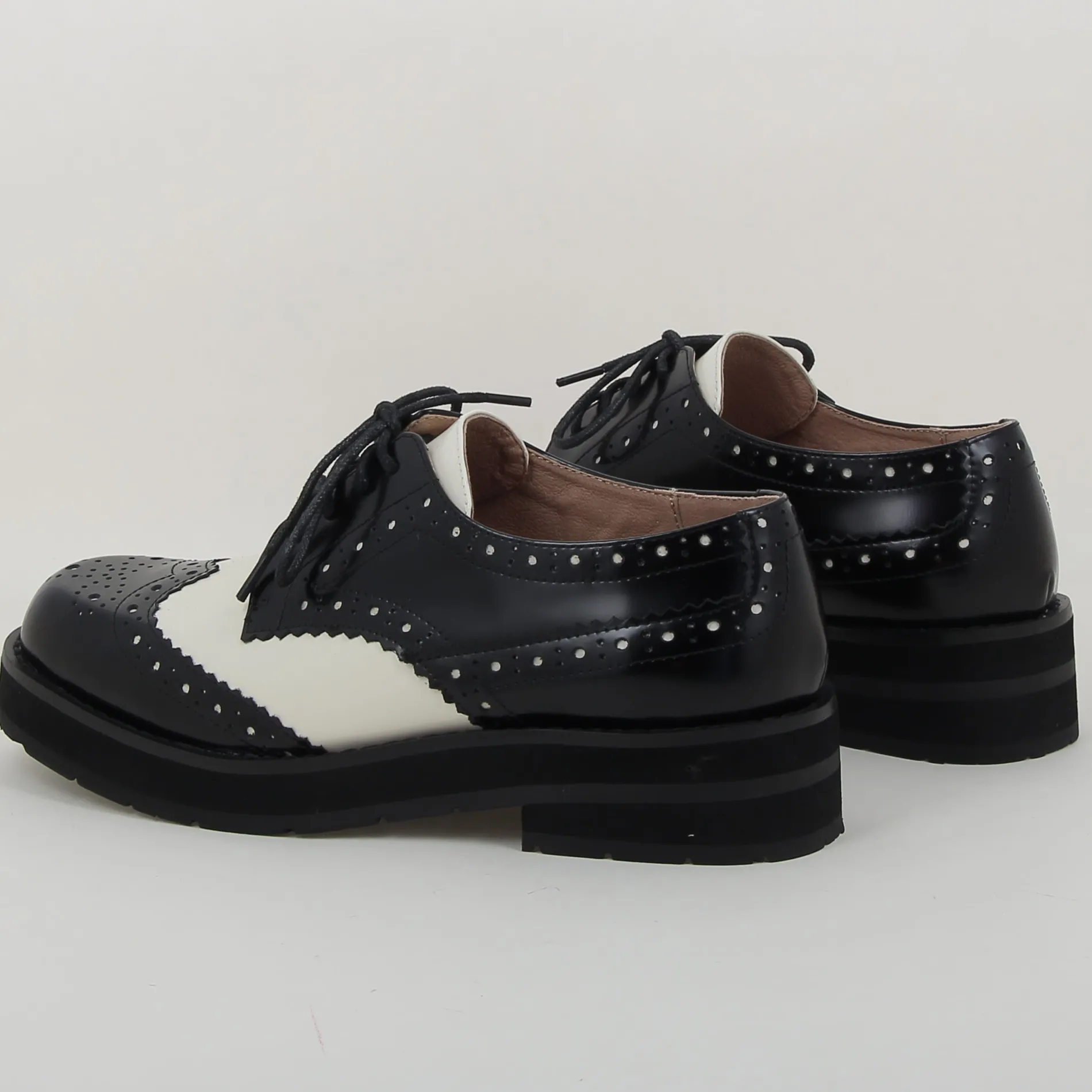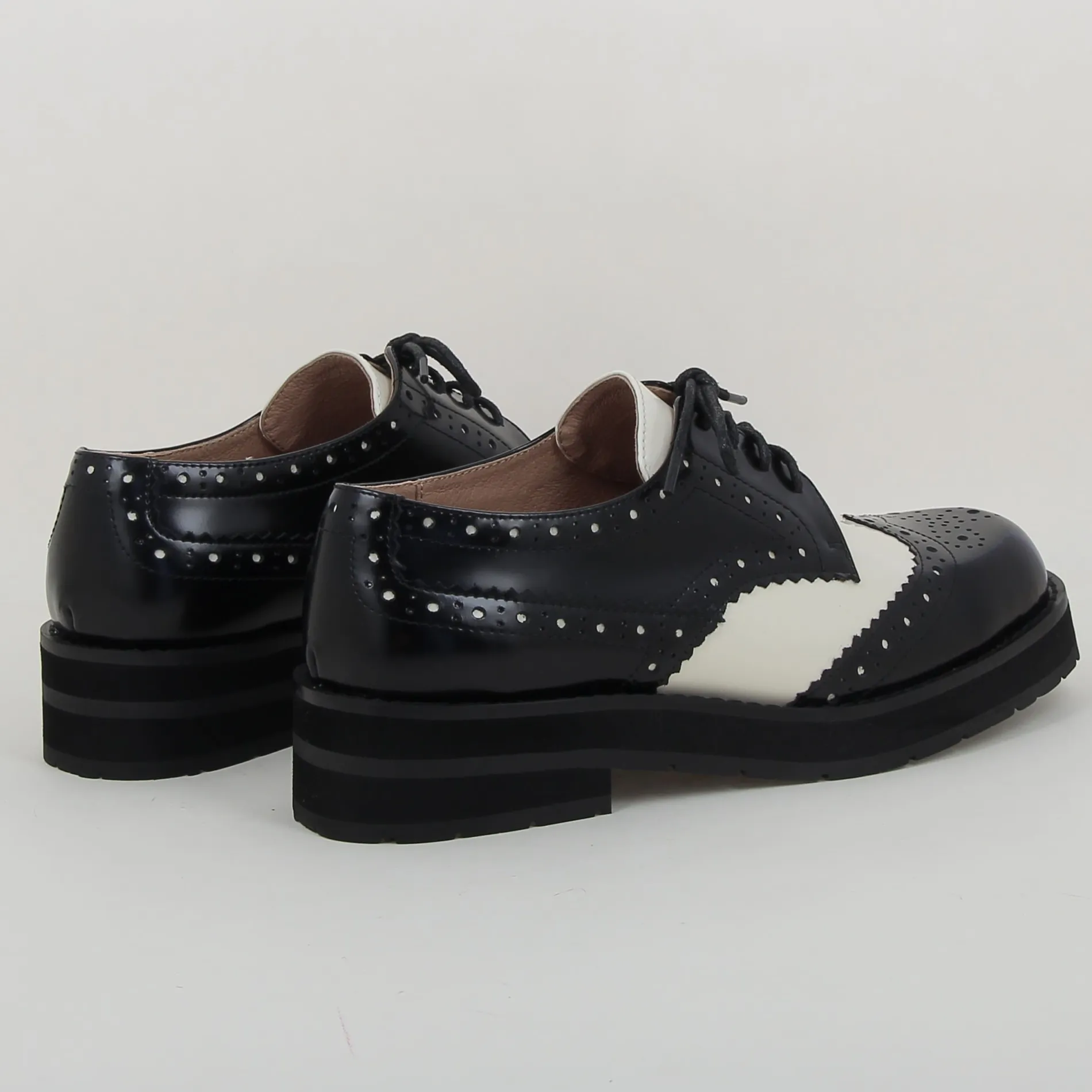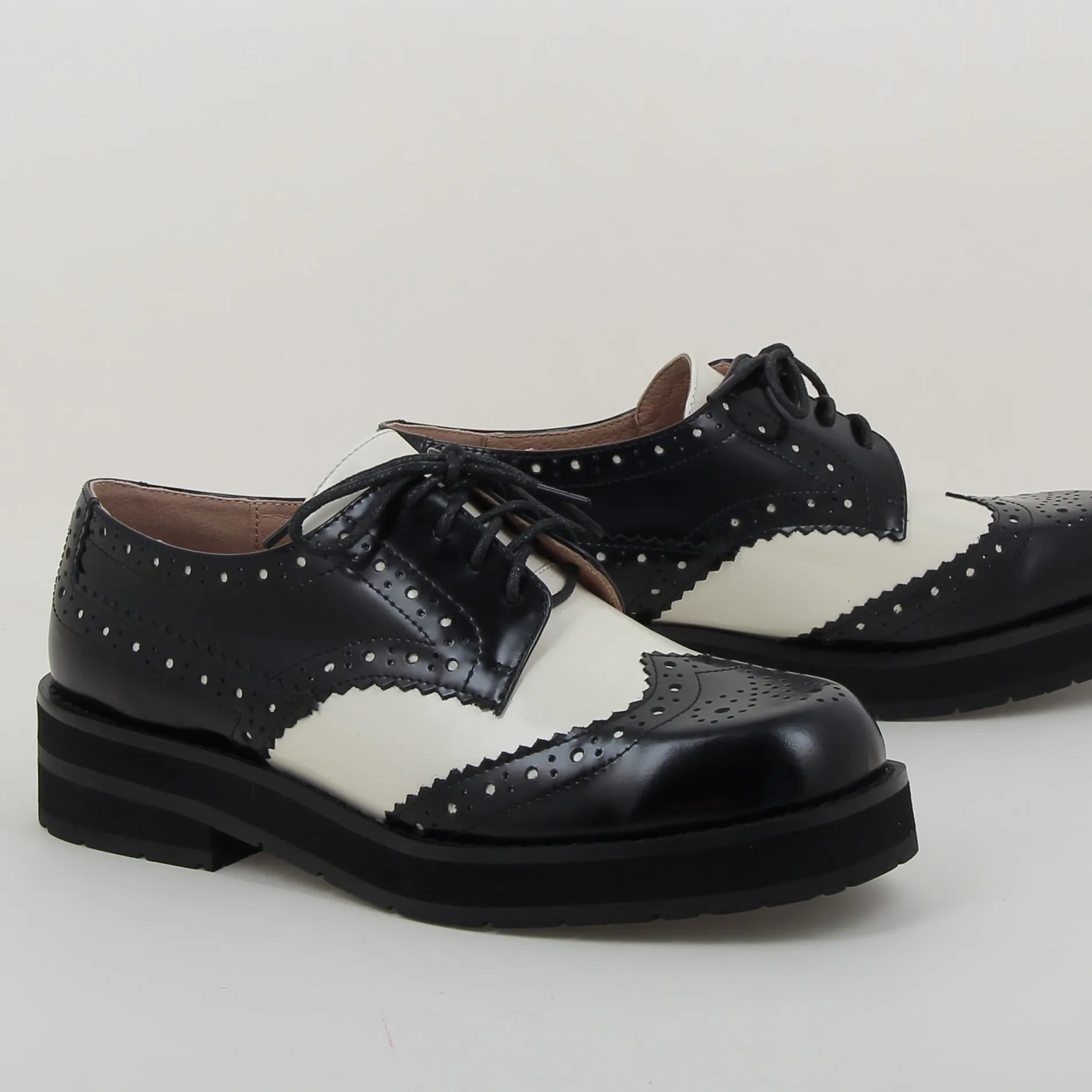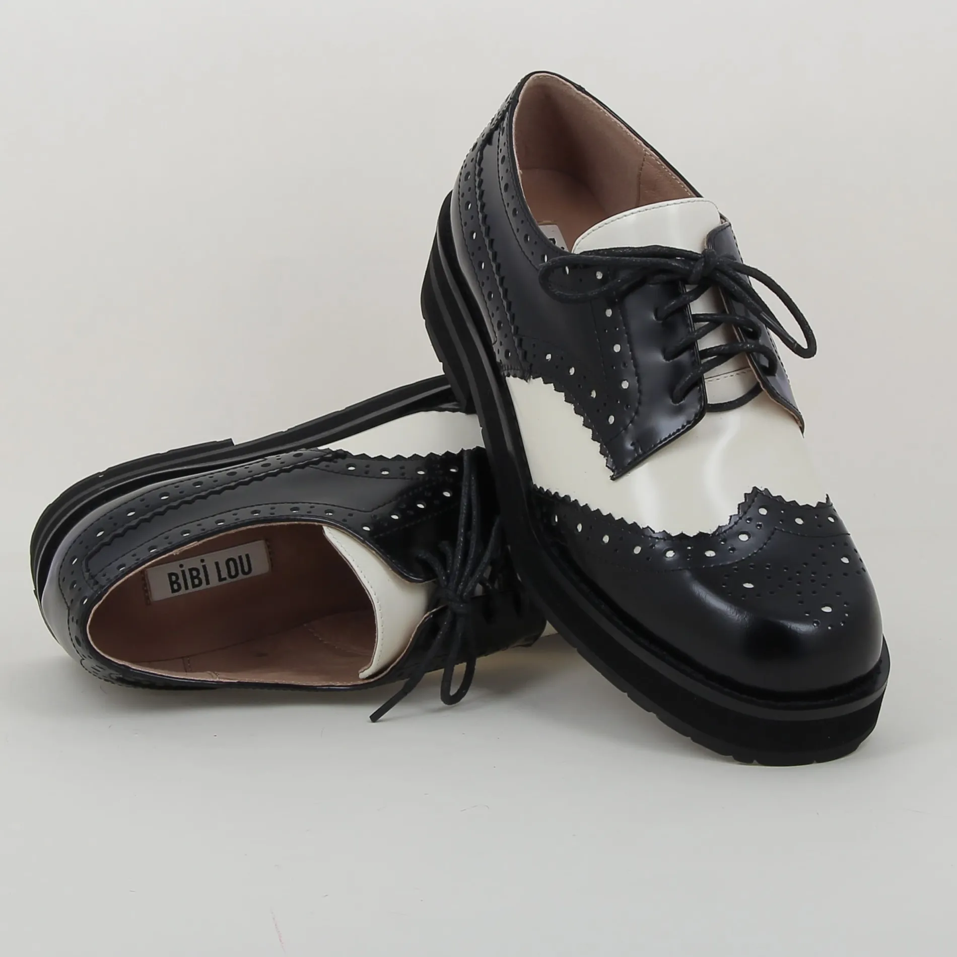 Derby LINA Bicolore BIBILOU en Cuir Noir et Blanc