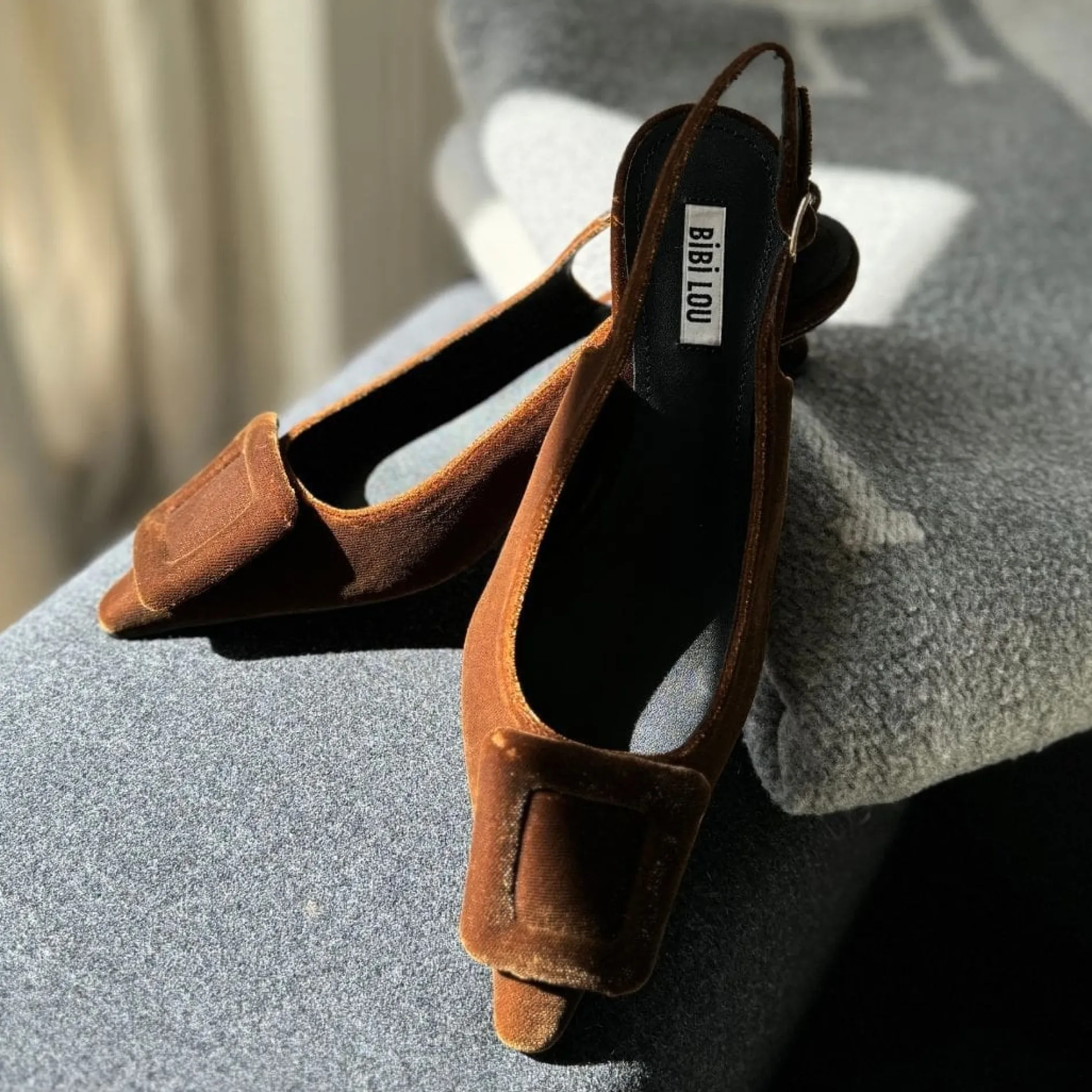 ★ Détail chic : La sandale est agrémentée d’une large boucle carrée en velours ton sur ton, placée sur le bout pointu, créant un effet subtil et sophistiqué. La boucle fondue dans la tige apporte une élégance discrète et moderne.
