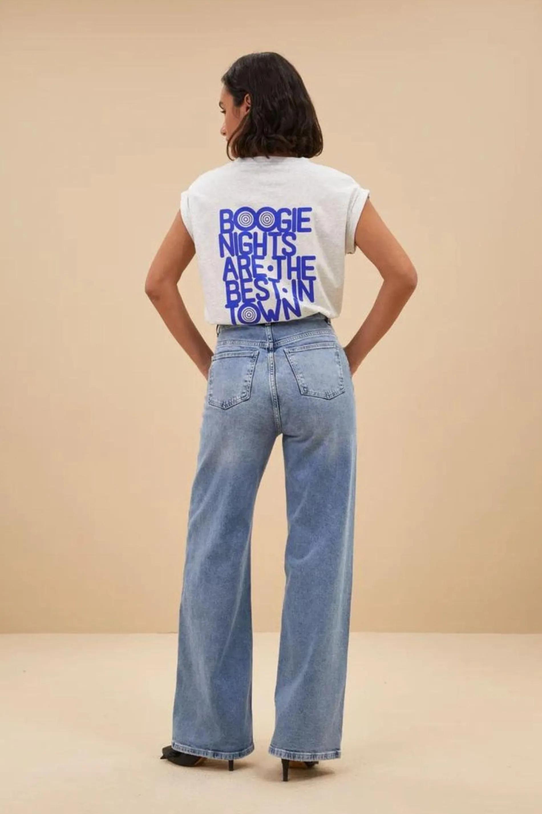 br />Marque : BY BARCouleur : Gris TOP thelma boogie nights by bar ★ Tee-shirt gris★ Inscription bleu electrique au …