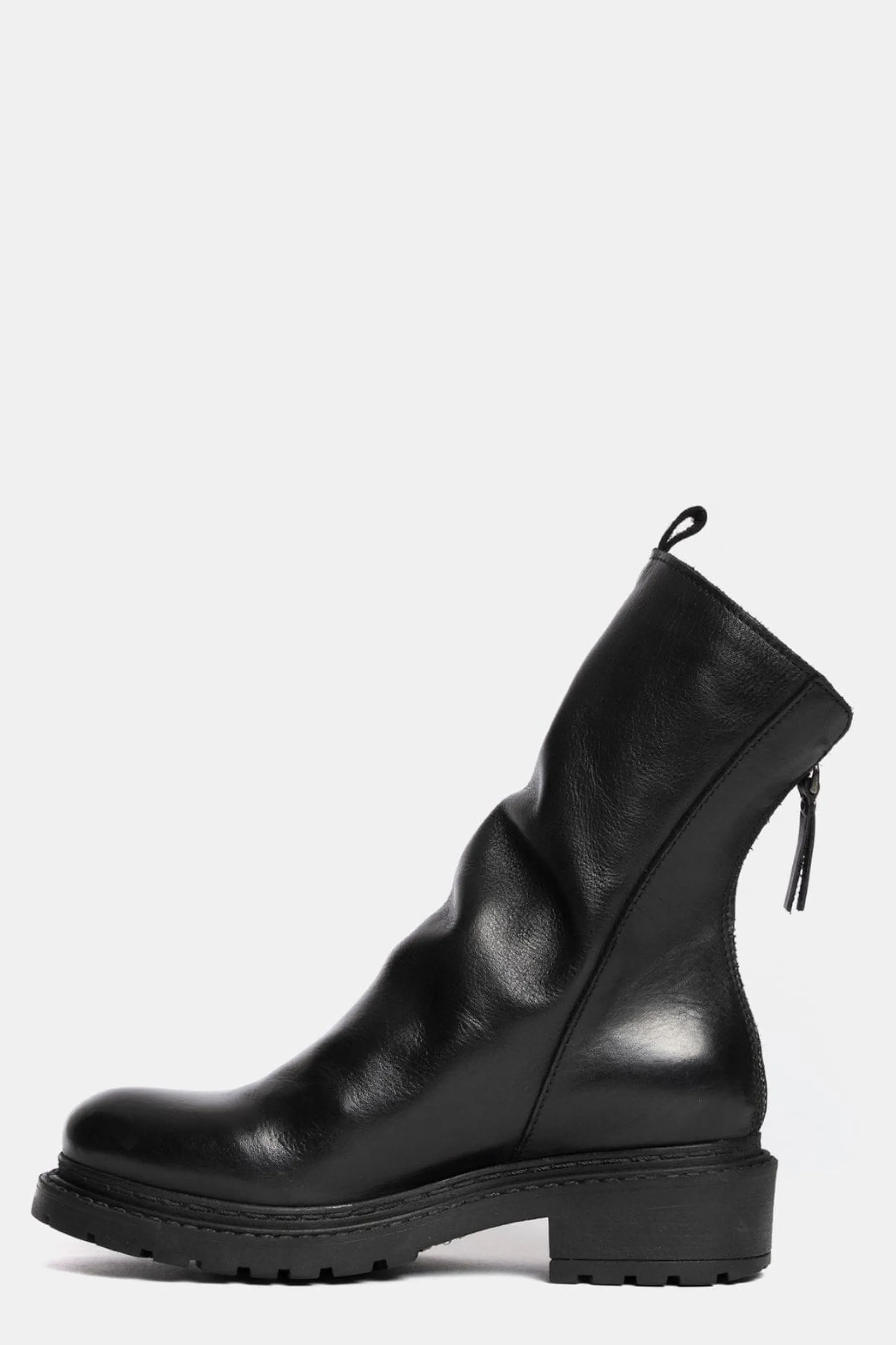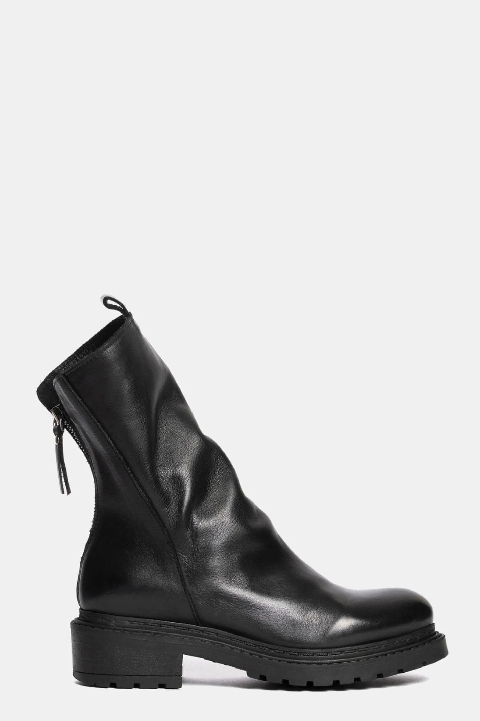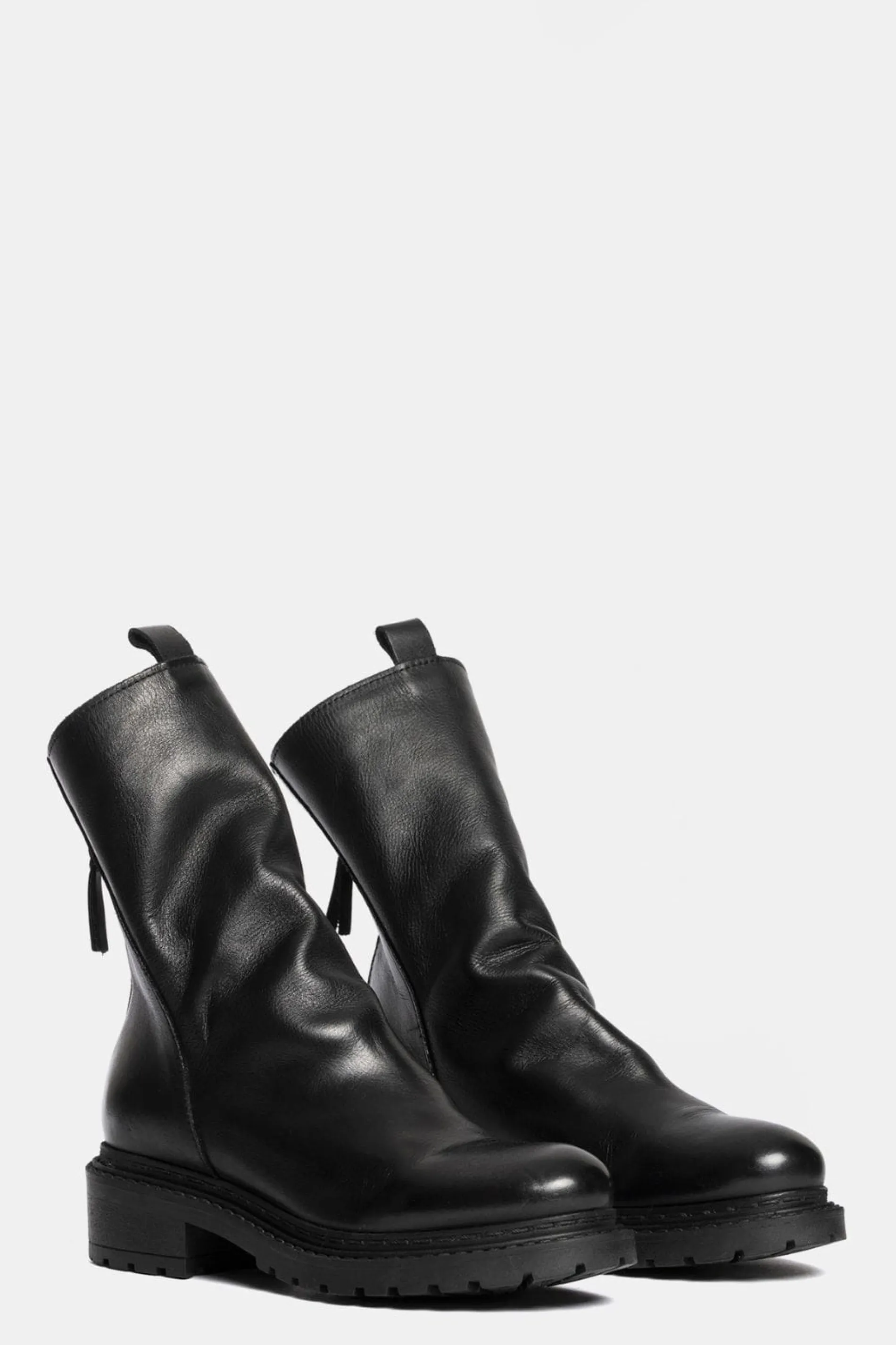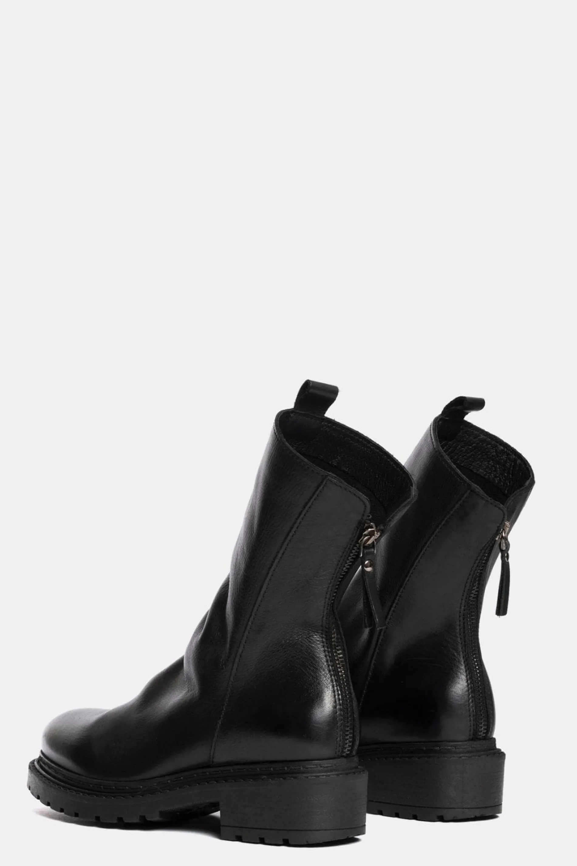 Boots esprit biker METISSE confectionnées en cuir de veau noir.