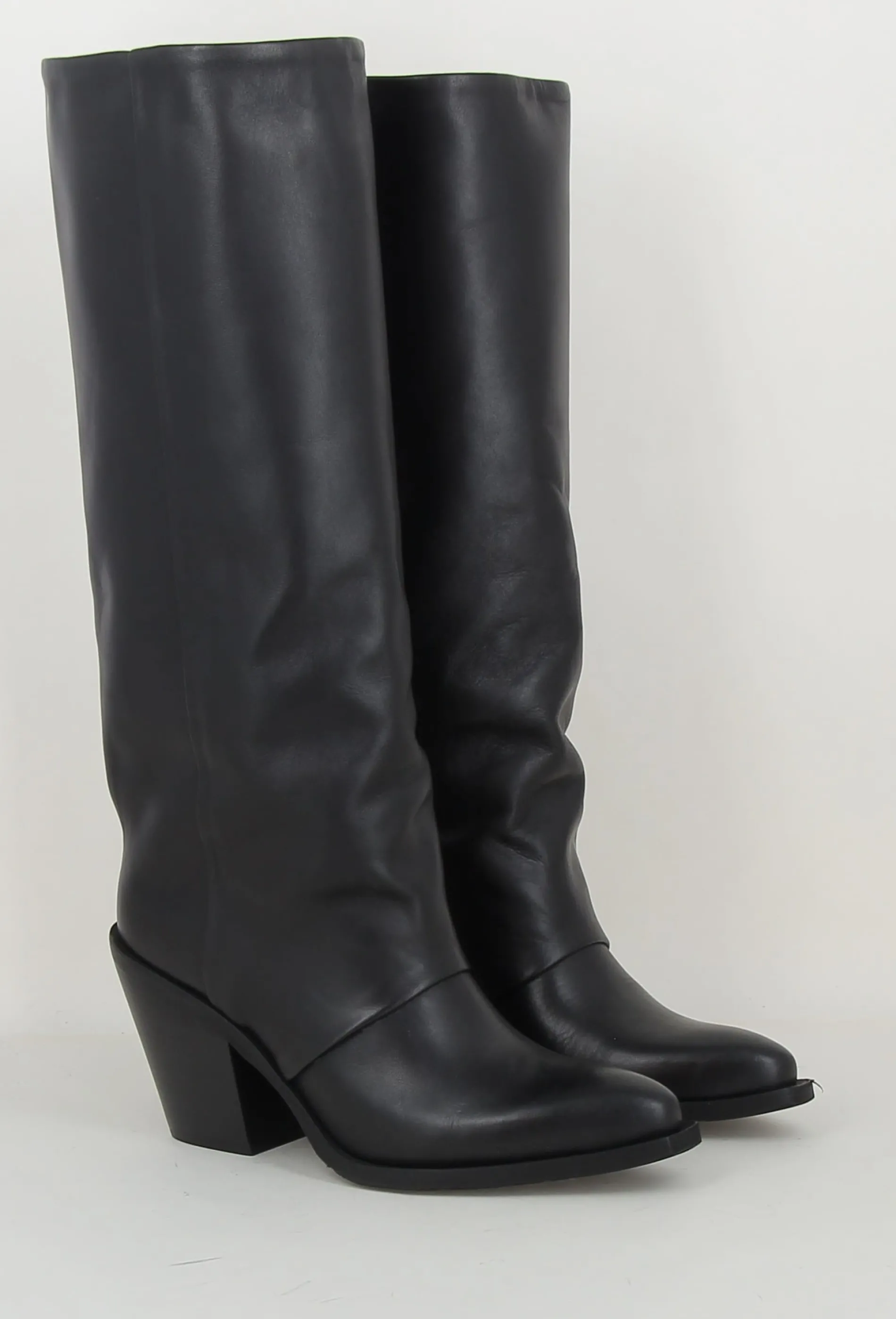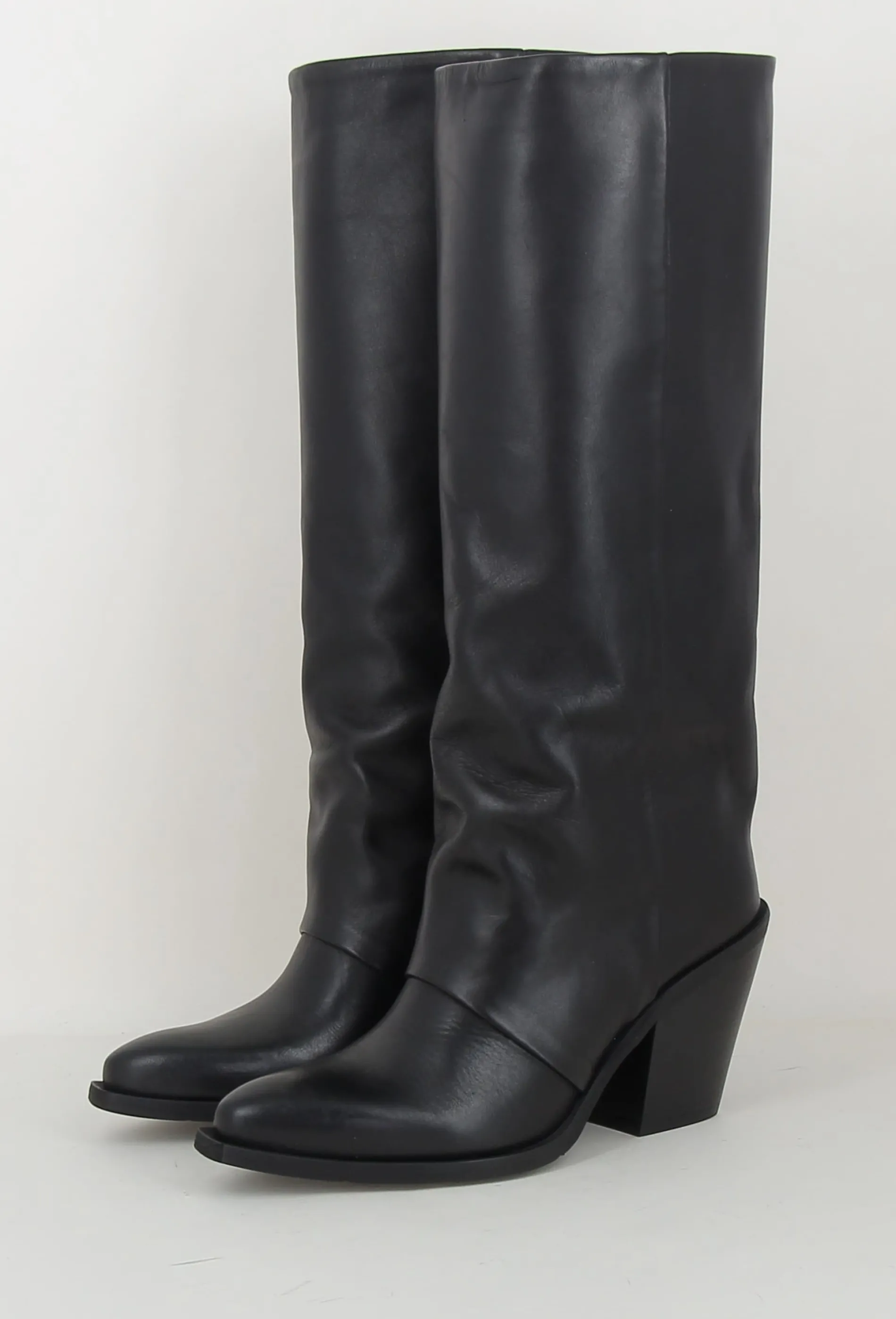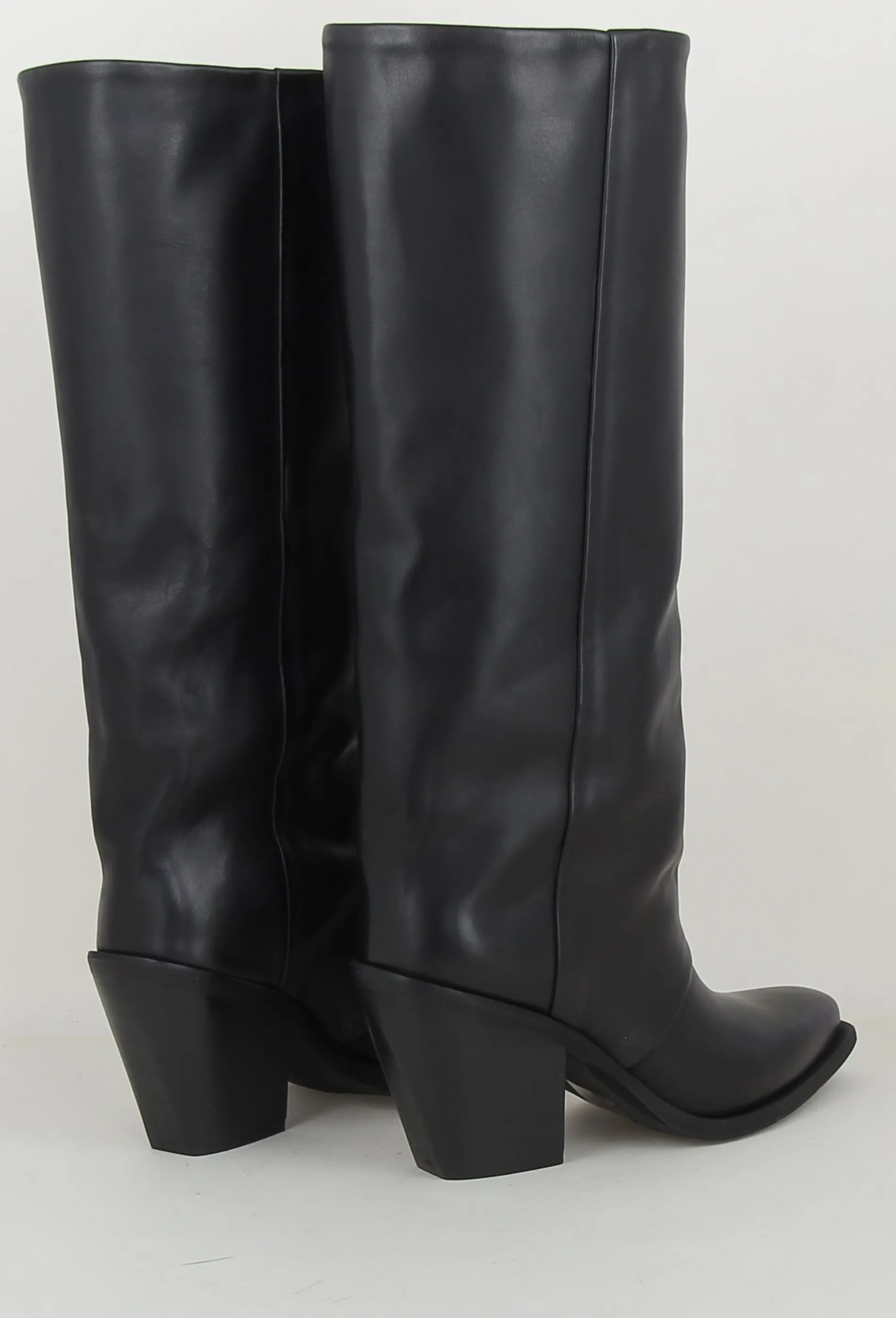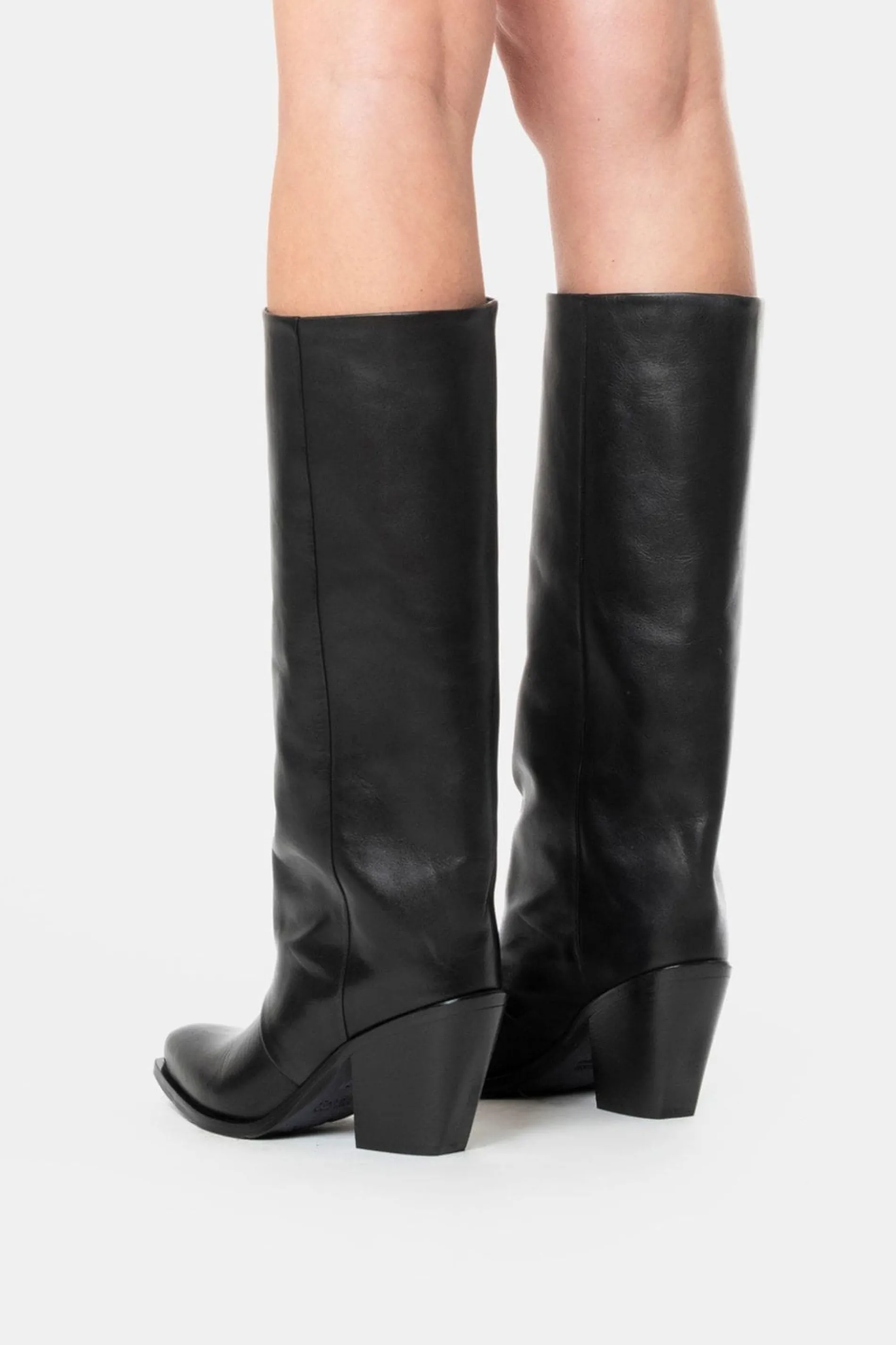 Des bottes tube esprit texanes signées METISSE réalisées avec des matériaux doux, brossés et fabriqués à la main.