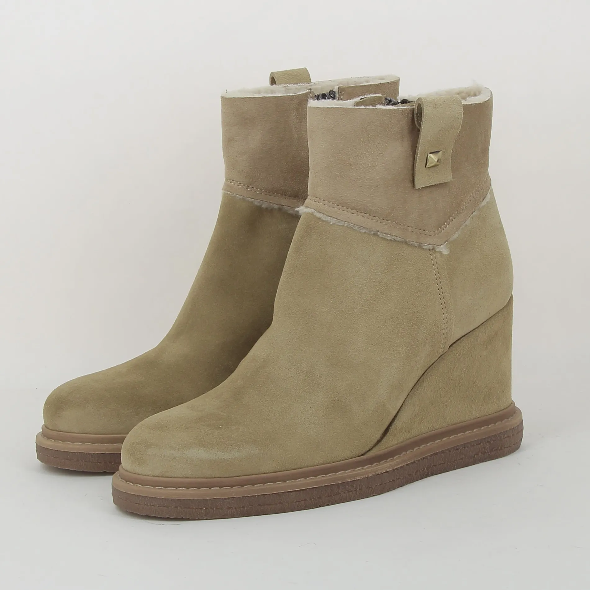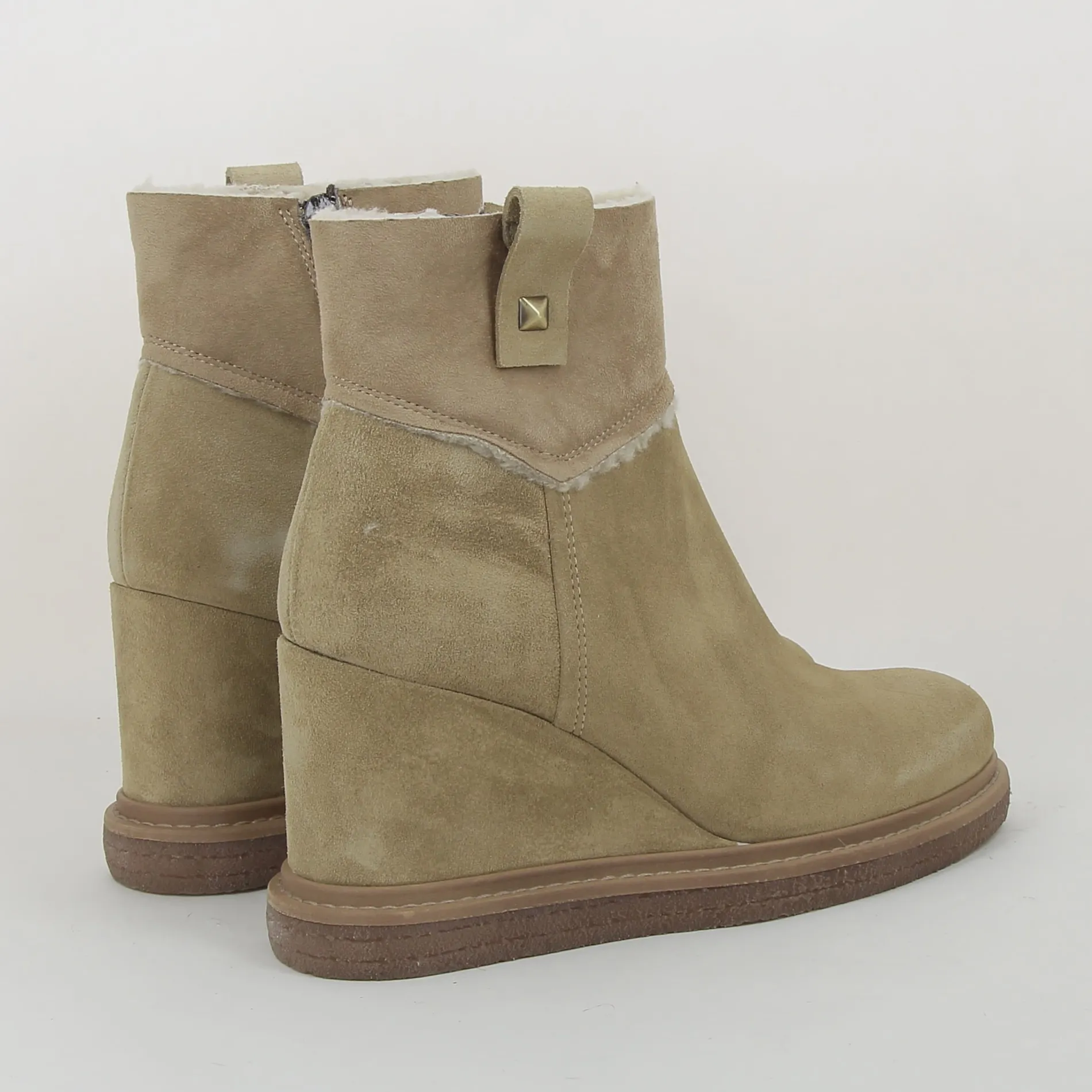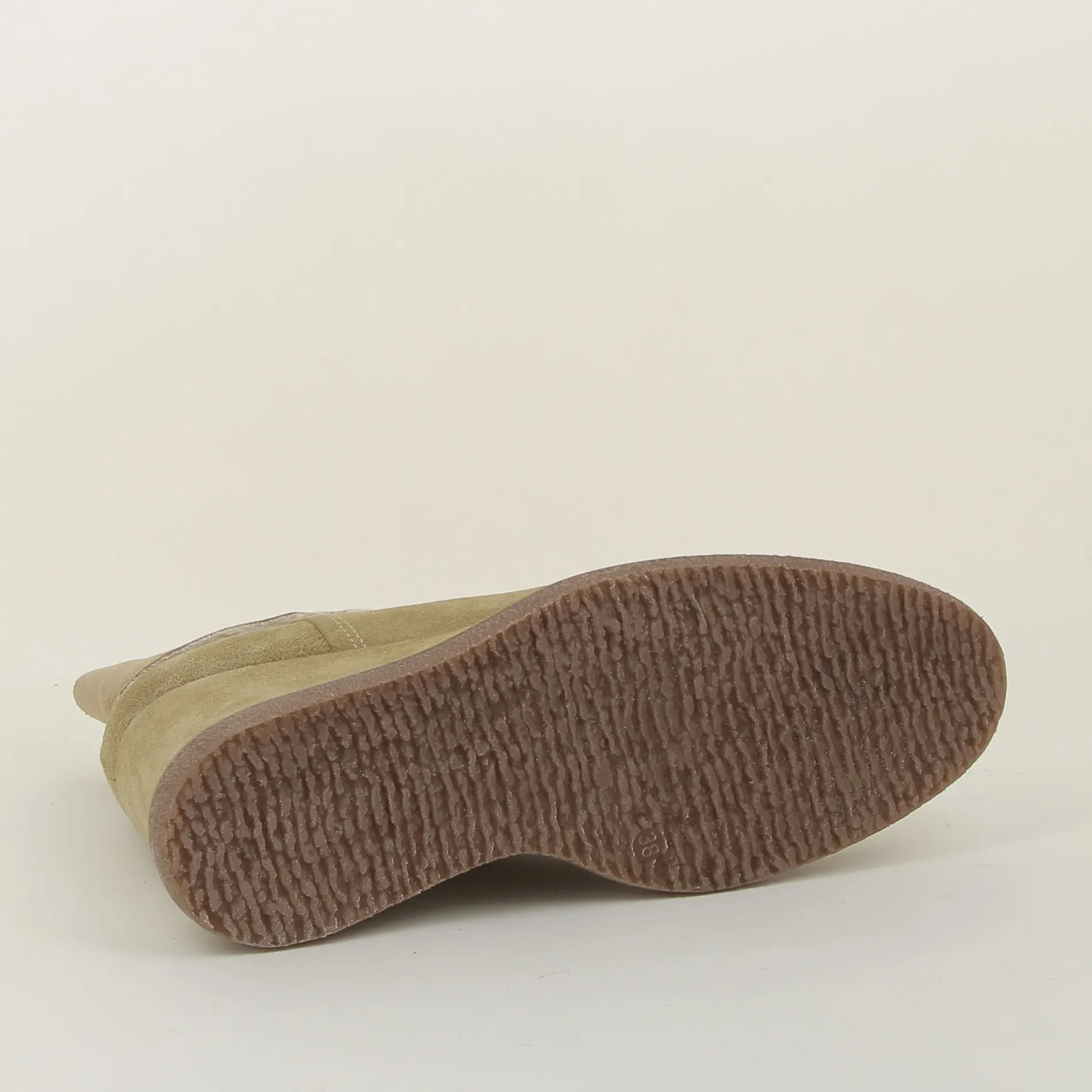 Ces boots en daim beige allient confort et élégance, avec des détails soigneusement pensés :
