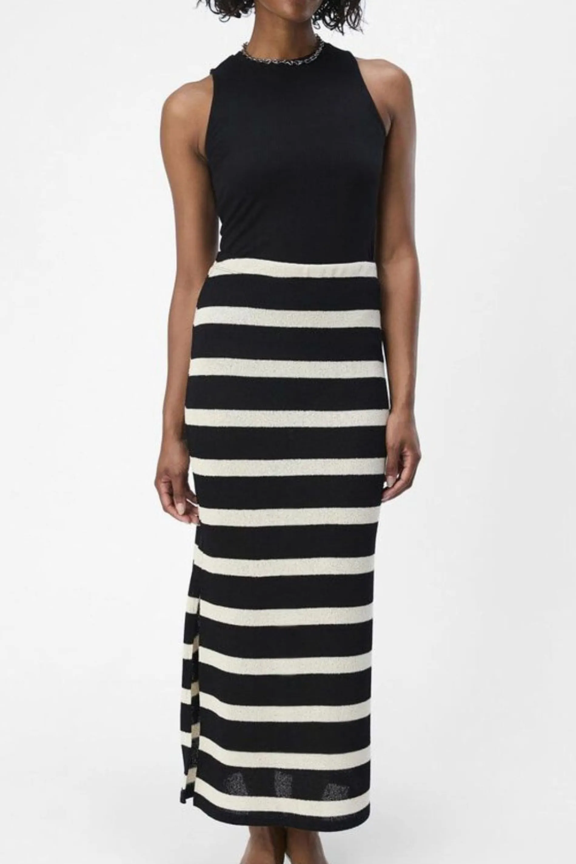 br />Marque : objectCouleur : Noir et ecru ★ Jupe longue en maille★ Taille haute★ Modèle à rayures★ Coupe clas…