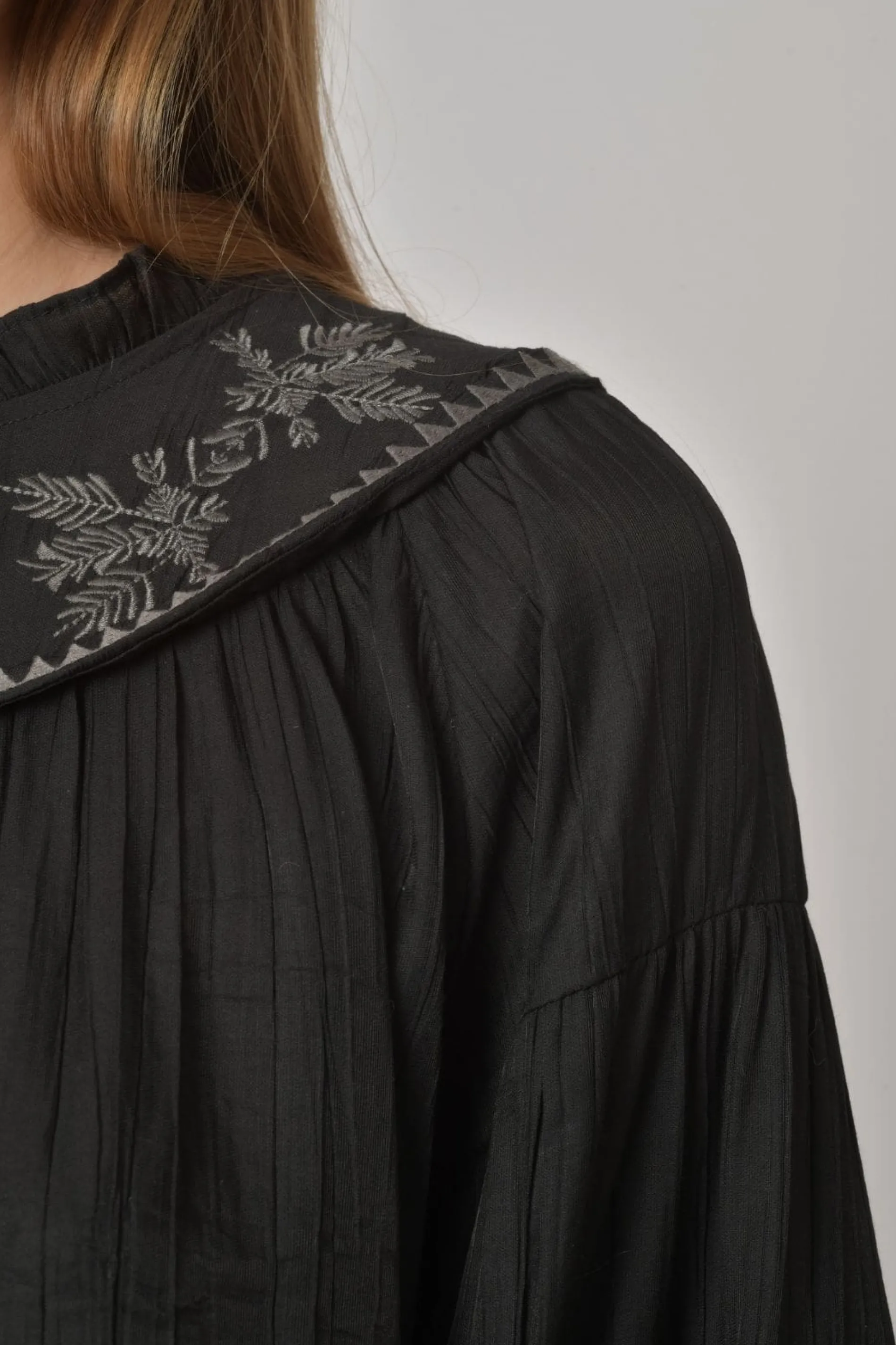 br />Marque : OrfeoCouleur : Noir ★ Chemise noire★ Manches longues★ Col V fermeture par boutons★ Broderies contr…
