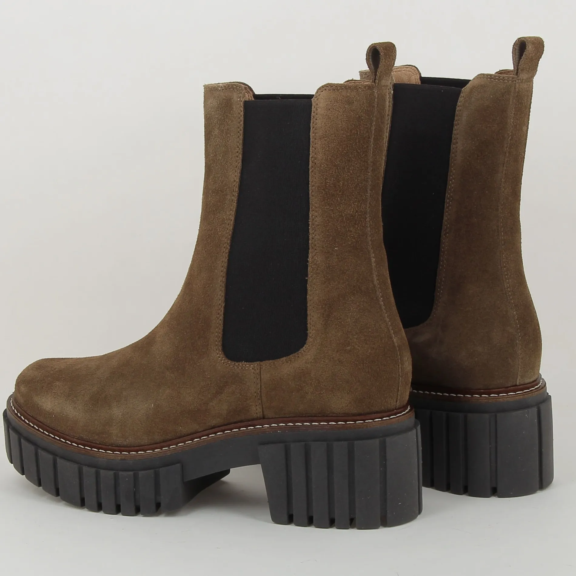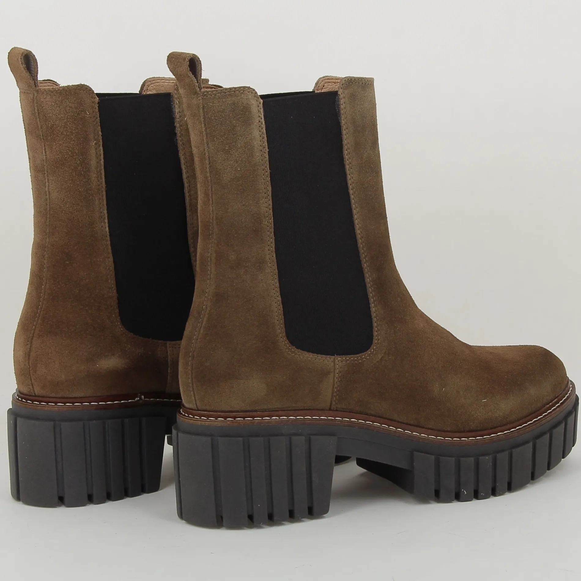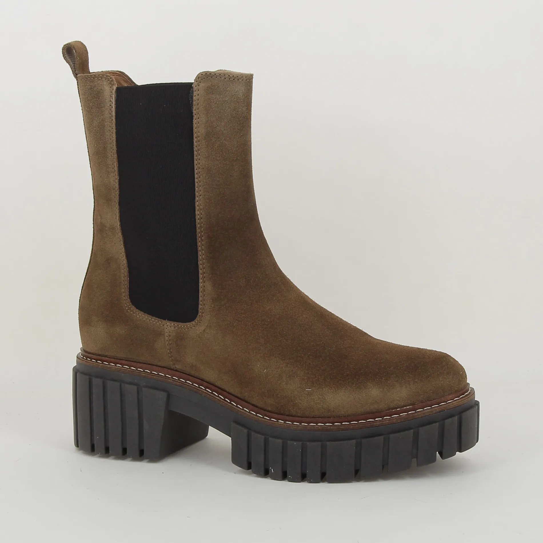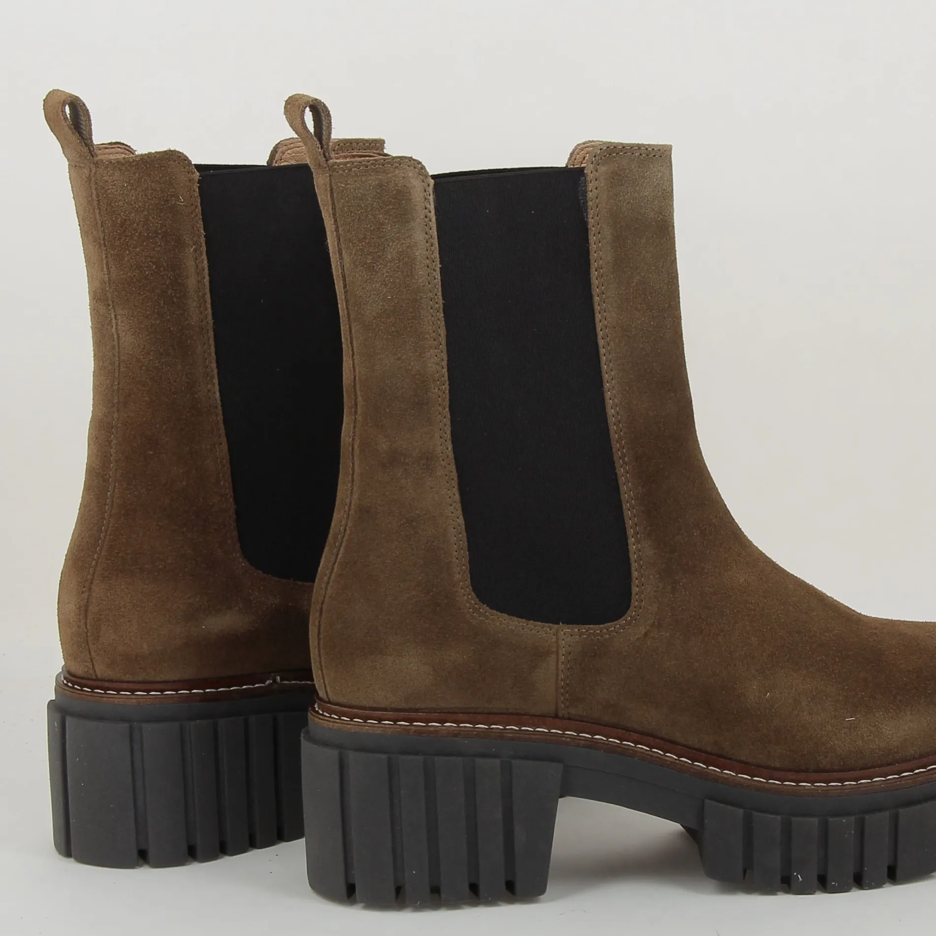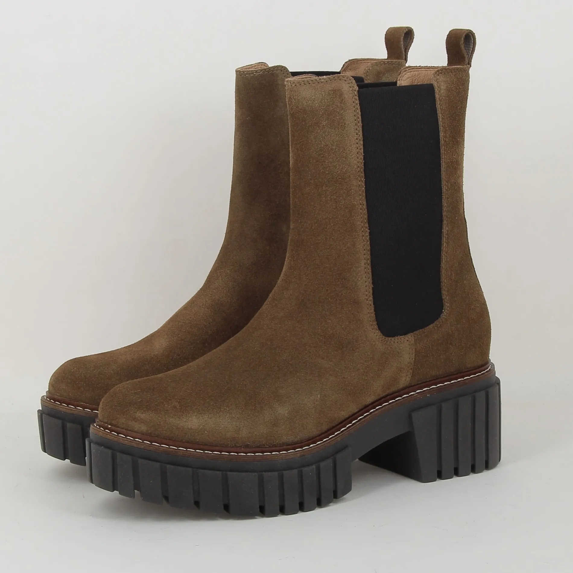 ★ Tige : En daim camel, conférant à la botte un aspect texturé et résistant, parfait pour un look audacieux.