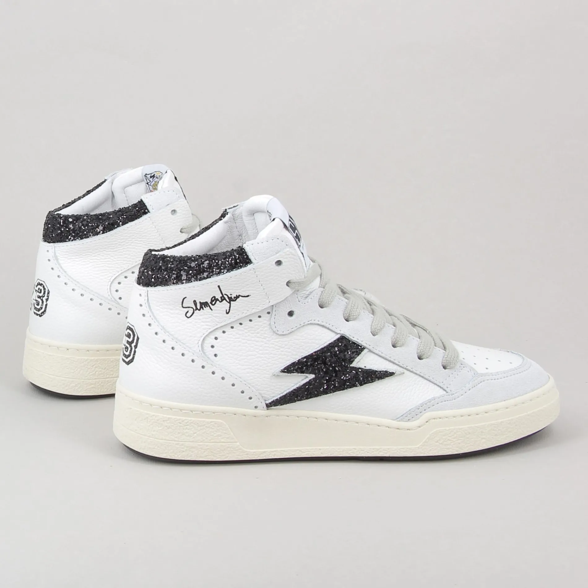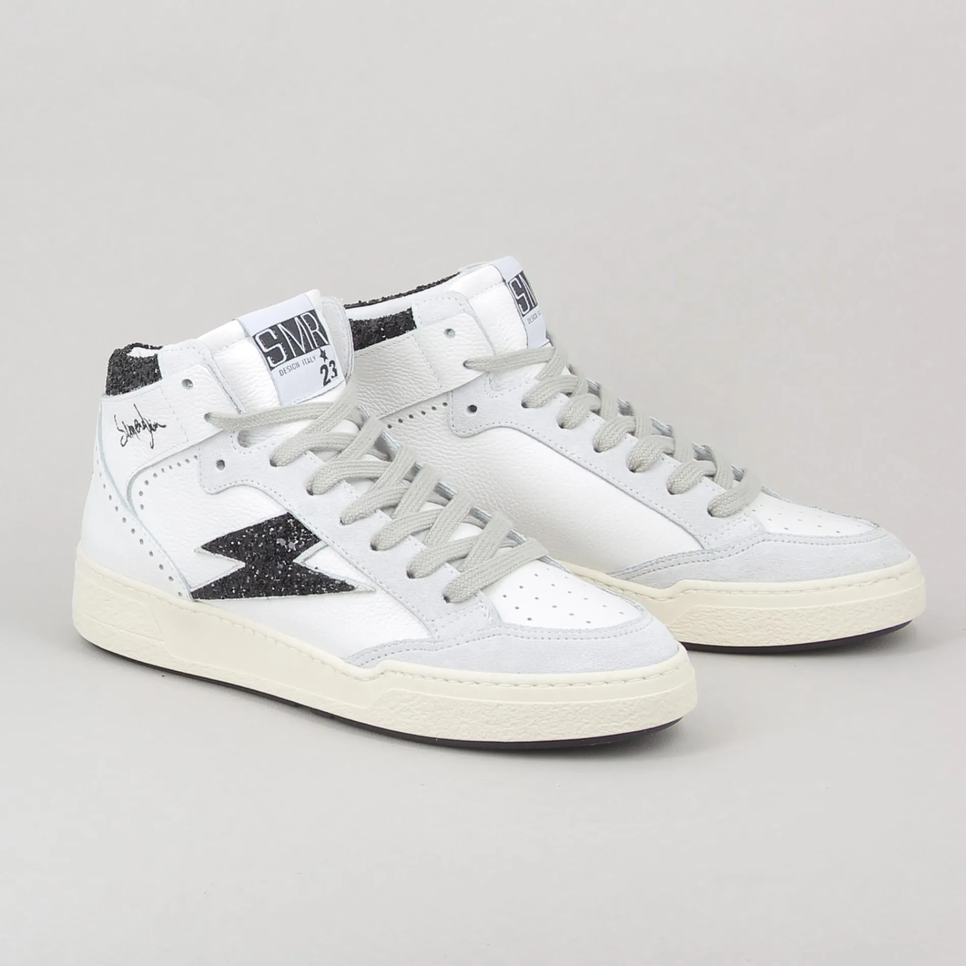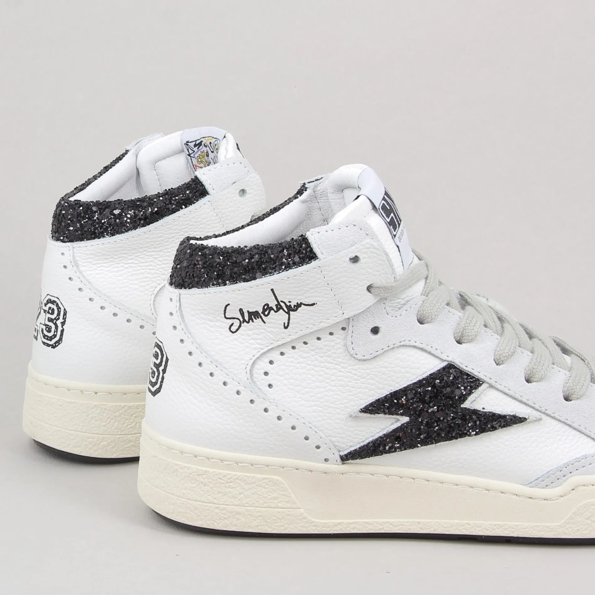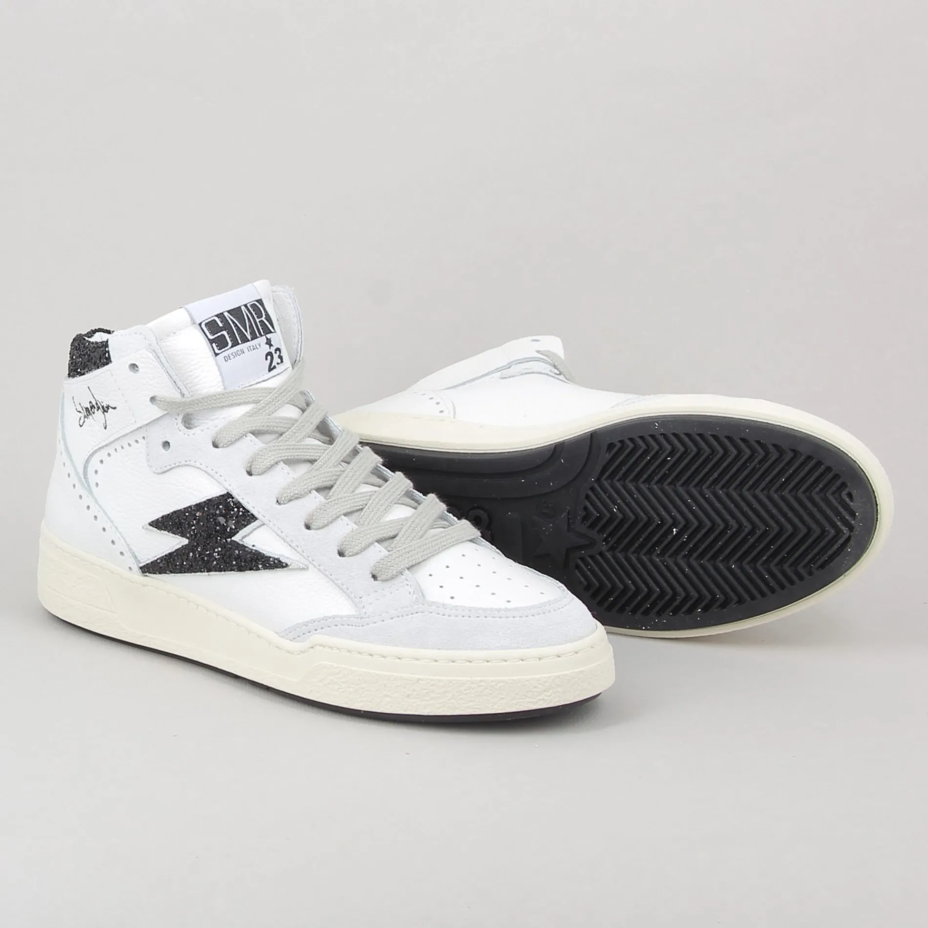 Les baskets montantes BRAGA de chez Semerdjian deviendront votre nouvelle paire de chaussures de prédilection. Si elles sont si incontournables, c’est parce qu’elles sont aussi tendance que faciles à marier. Réalisées en cuir blanc, elles affichent des empiècements en daim gris et un éclair signature en glitter noir. Cette paire est relevée du chiffre 23 sur l’arrière de la paire, clin d’oeil à la marque.