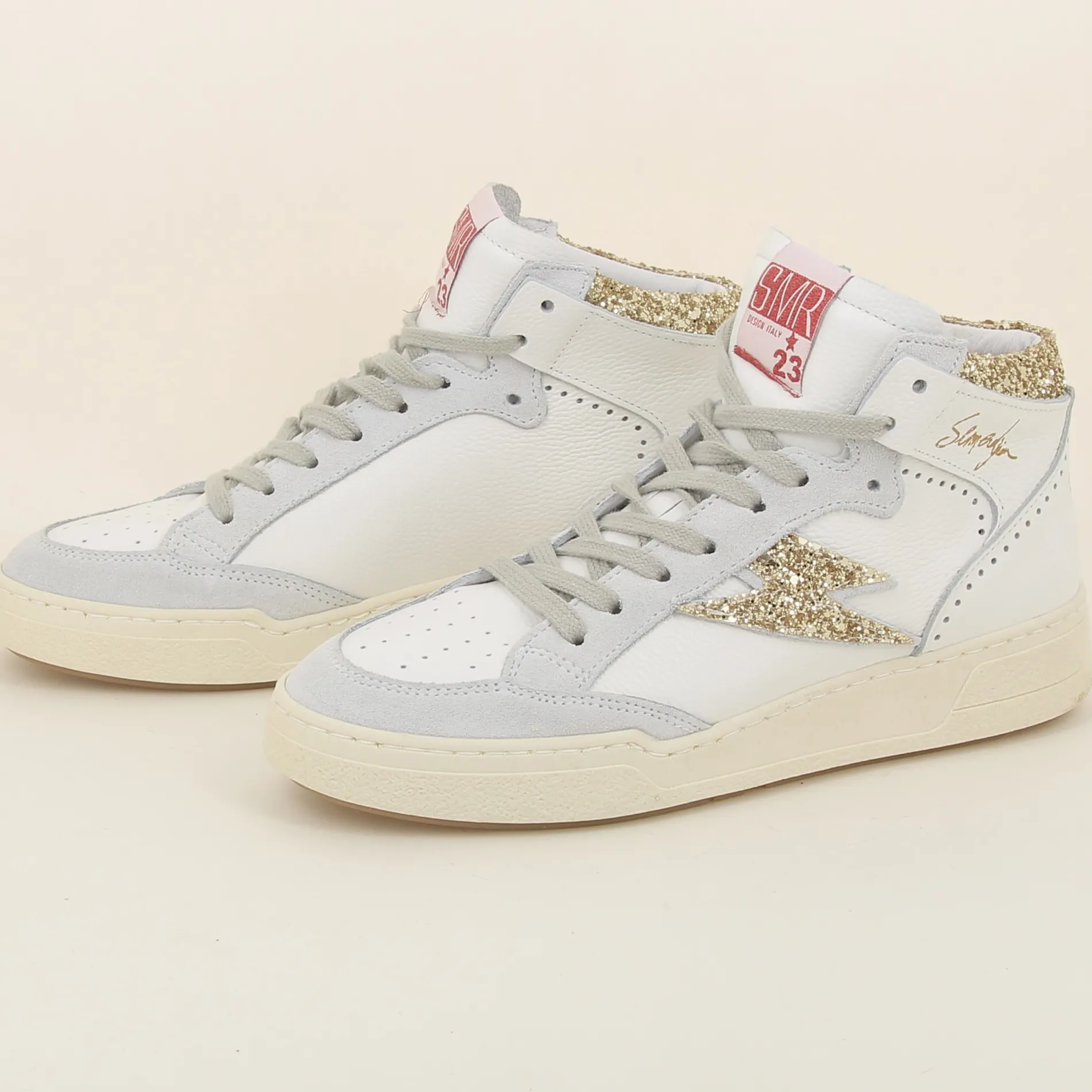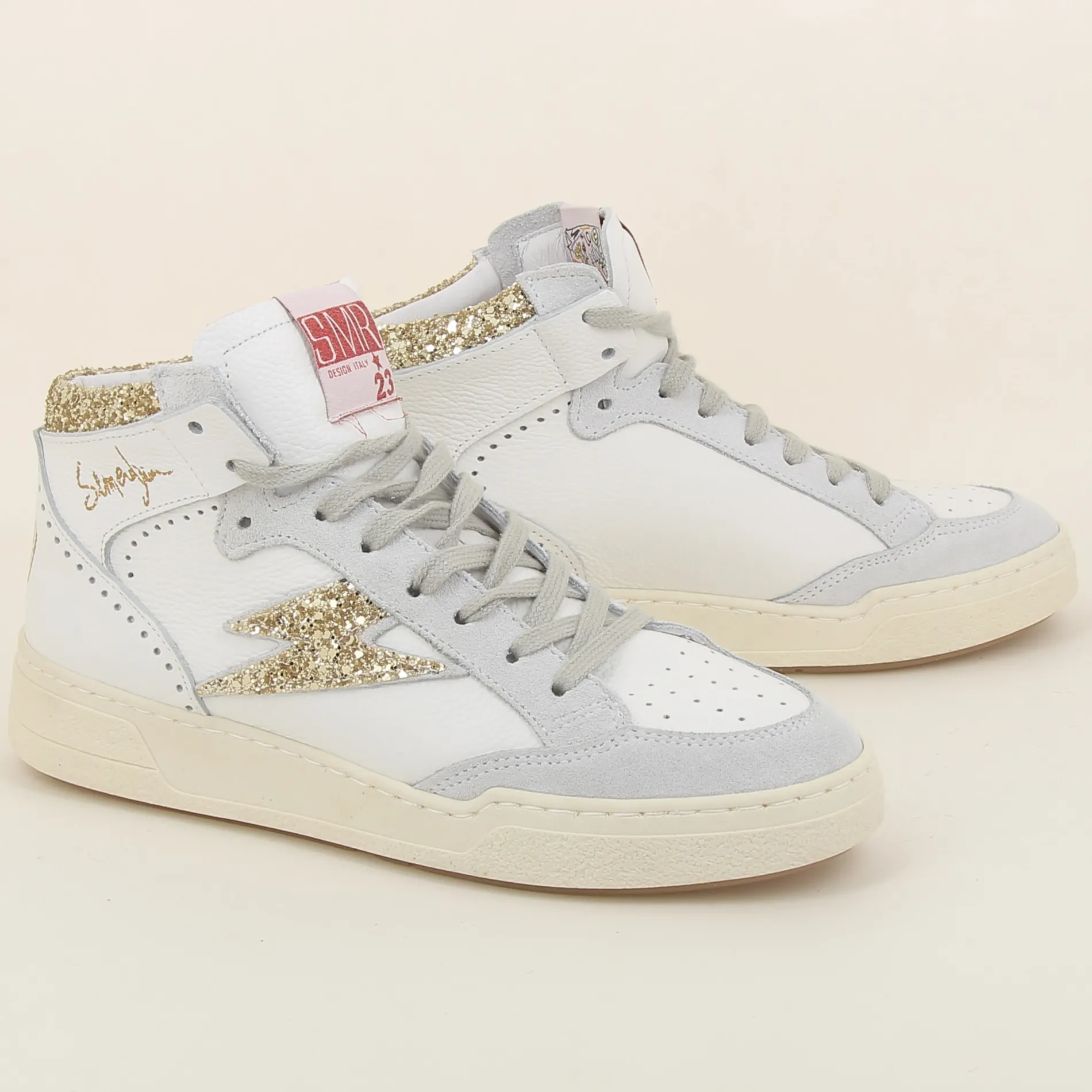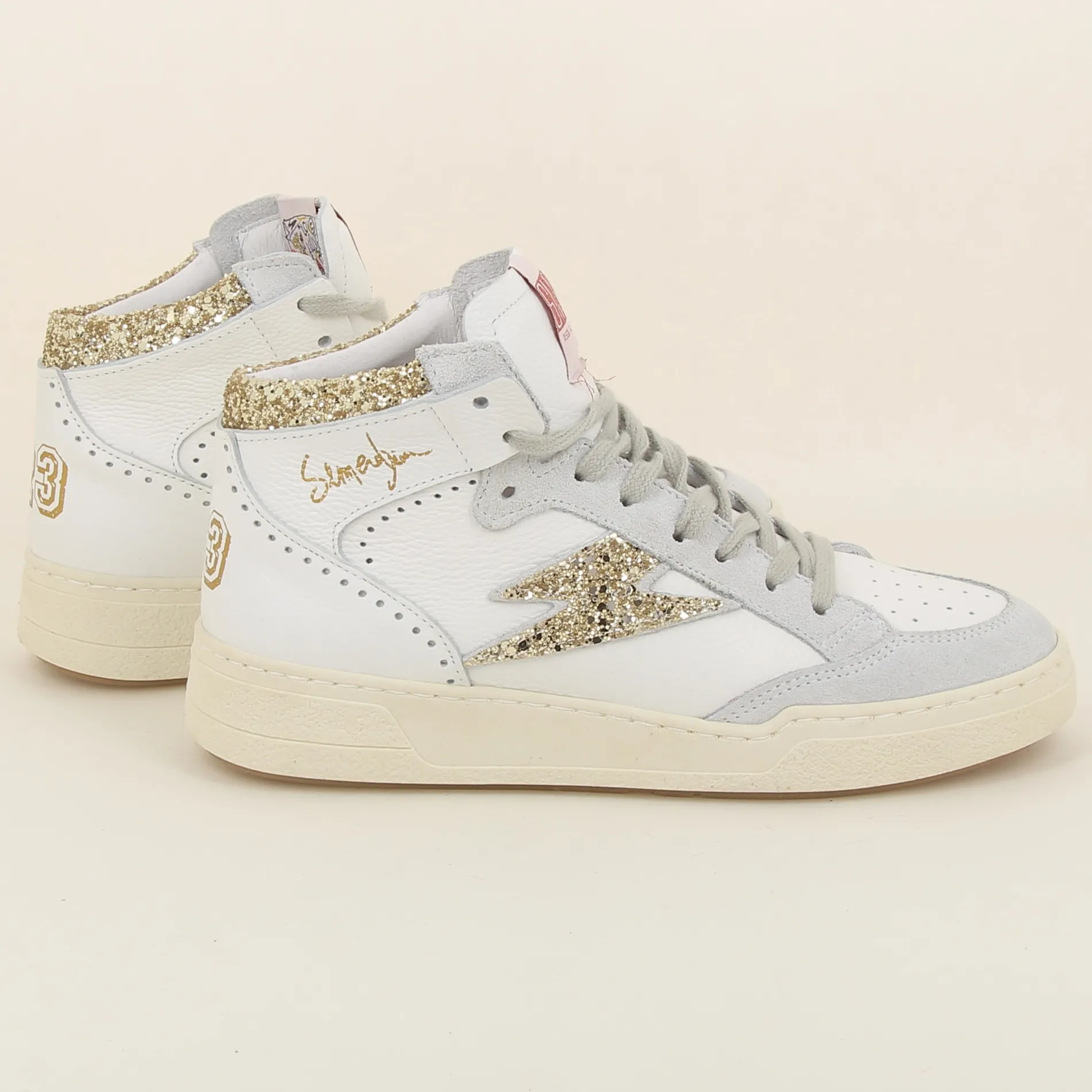 Adoptez un style moderne et raffiné avec les baskets montantes BRAGA blanches de Semerdjian. Fabriquées en cuir de haute qualité et ornées d’empiècements en daim vert clair, elles offrent une combinaison de matériaux luxueux et de design contemporain. L’éclair latéral doré ajoute une touche d’éclat. Pour un look tendance, associez ces baskets à un jean skinny et à un top blanc pour une tenue chic et décontractée. Exprimez votre style avec ces baskets montantes blanches Semerdjian et démarquez-vous avec élégance à chaque pas