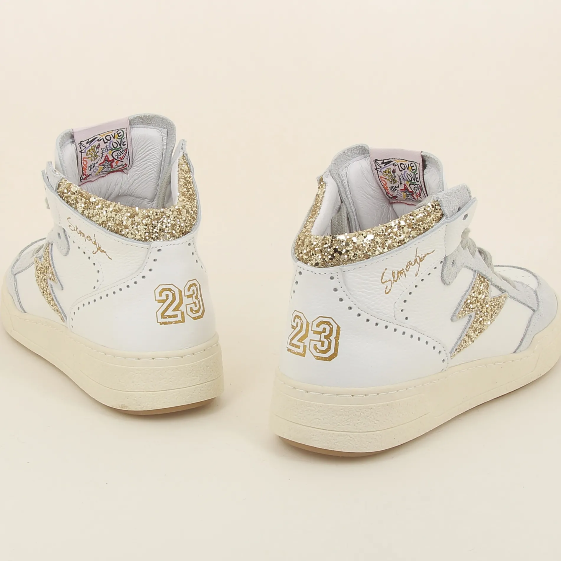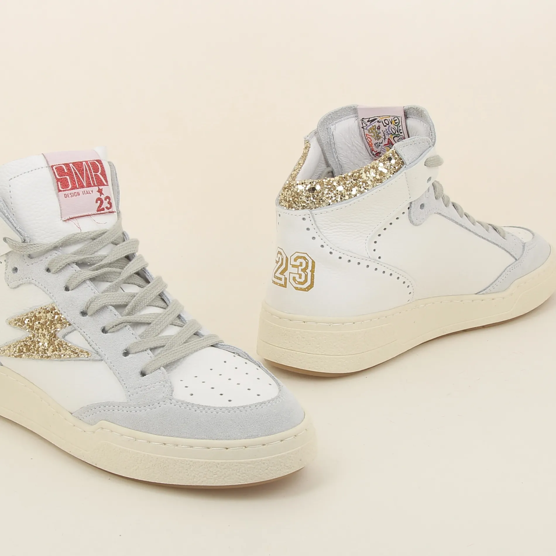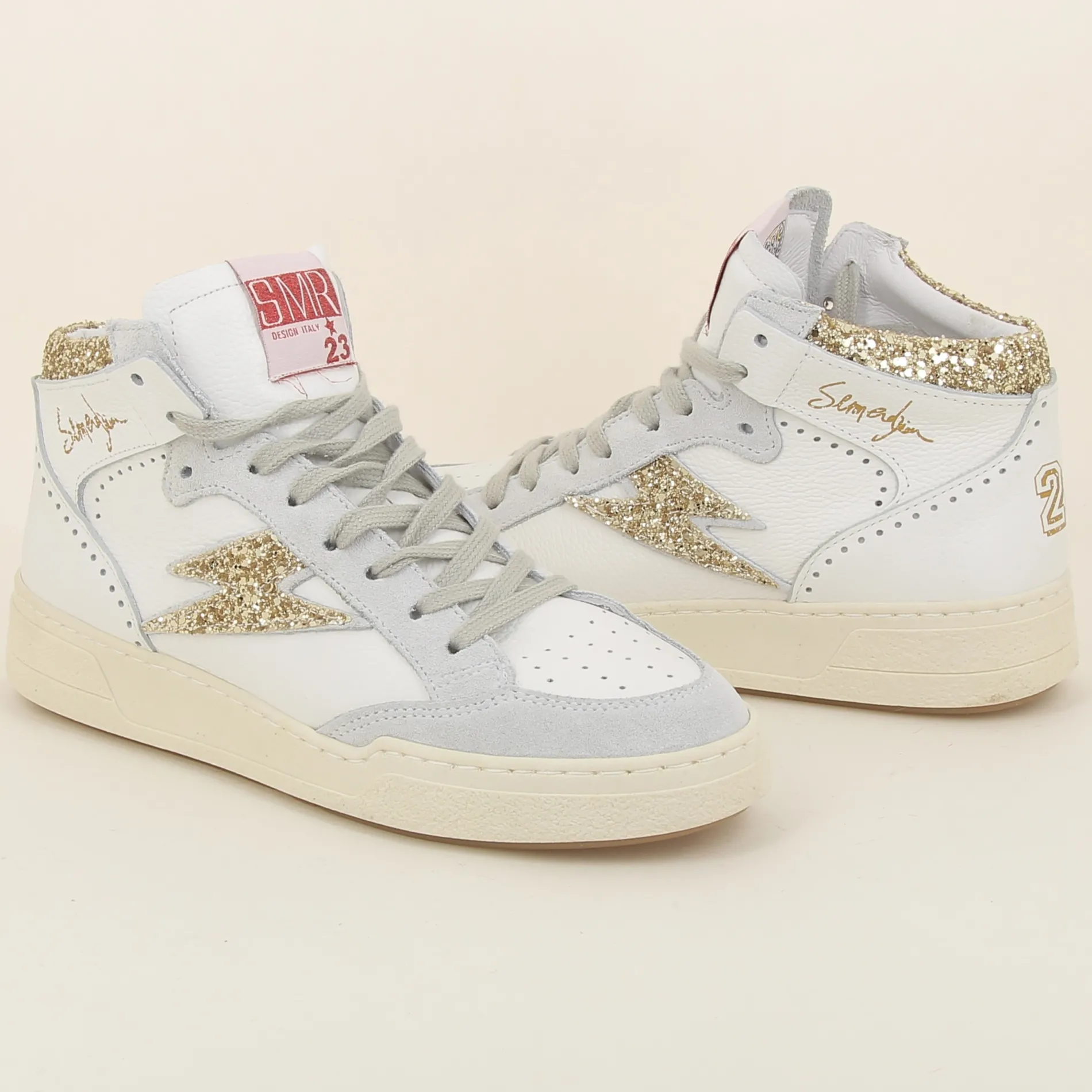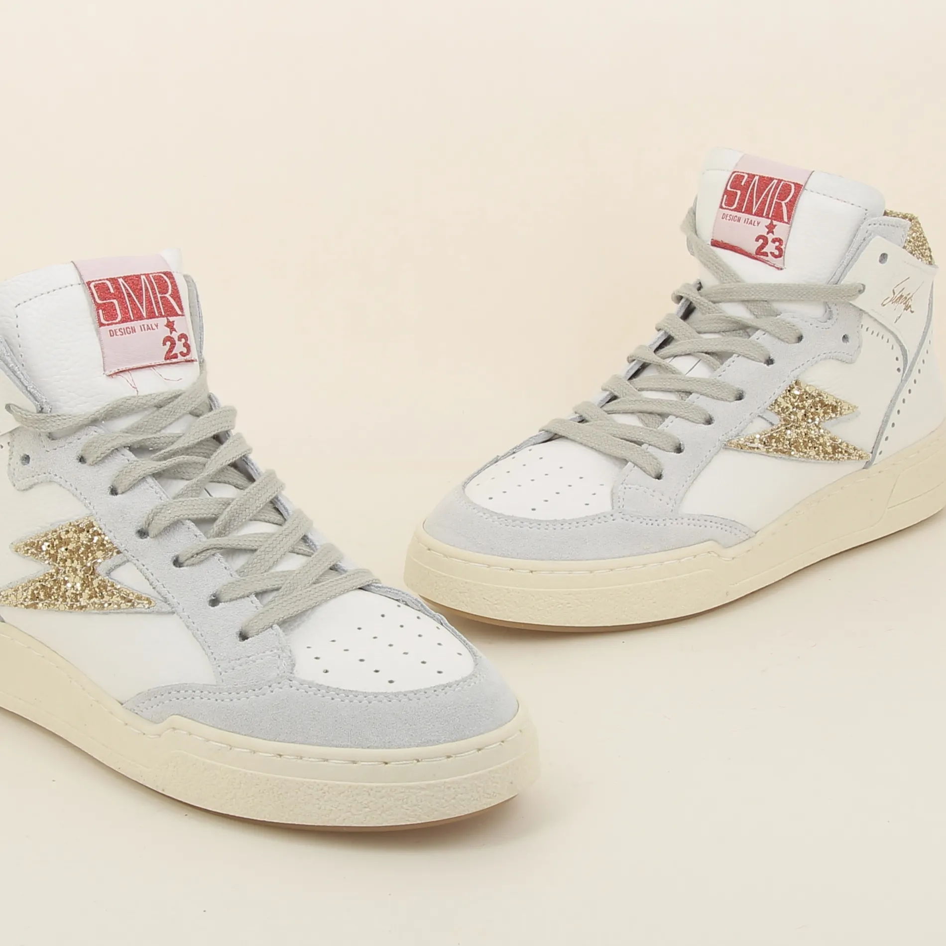 Adoptez un style moderne et raffiné avec les baskets montantes BRAGA blanches de Semerdjian. Fabriquées en cuir de haute qualité et ornées d’empiècements en daim vert clair, elles offrent une combinaison de matériaux luxueux et de design contemporain. L’éclair latéral doré ajoute une touche d’éclat. Pour un look tendance, associez ces baskets à un jean skinny et à un top blanc pour une tenue chic et décontractée. Exprimez votre style avec ces baskets montantes blanches Semerdjian et démarquez-vous avec élégance à chaque pas