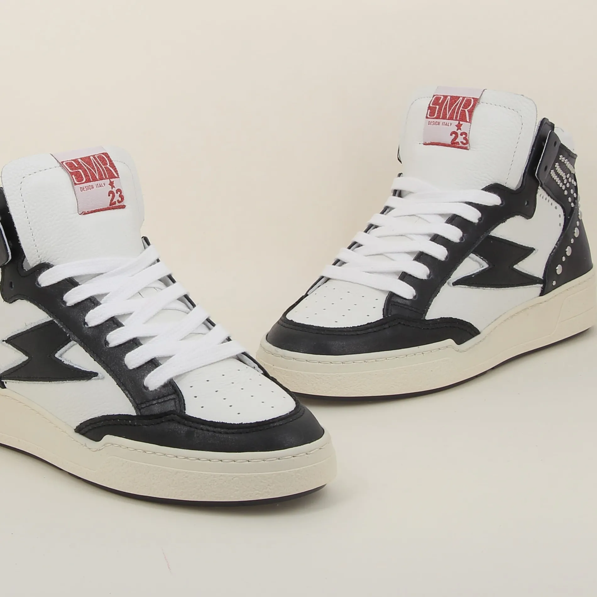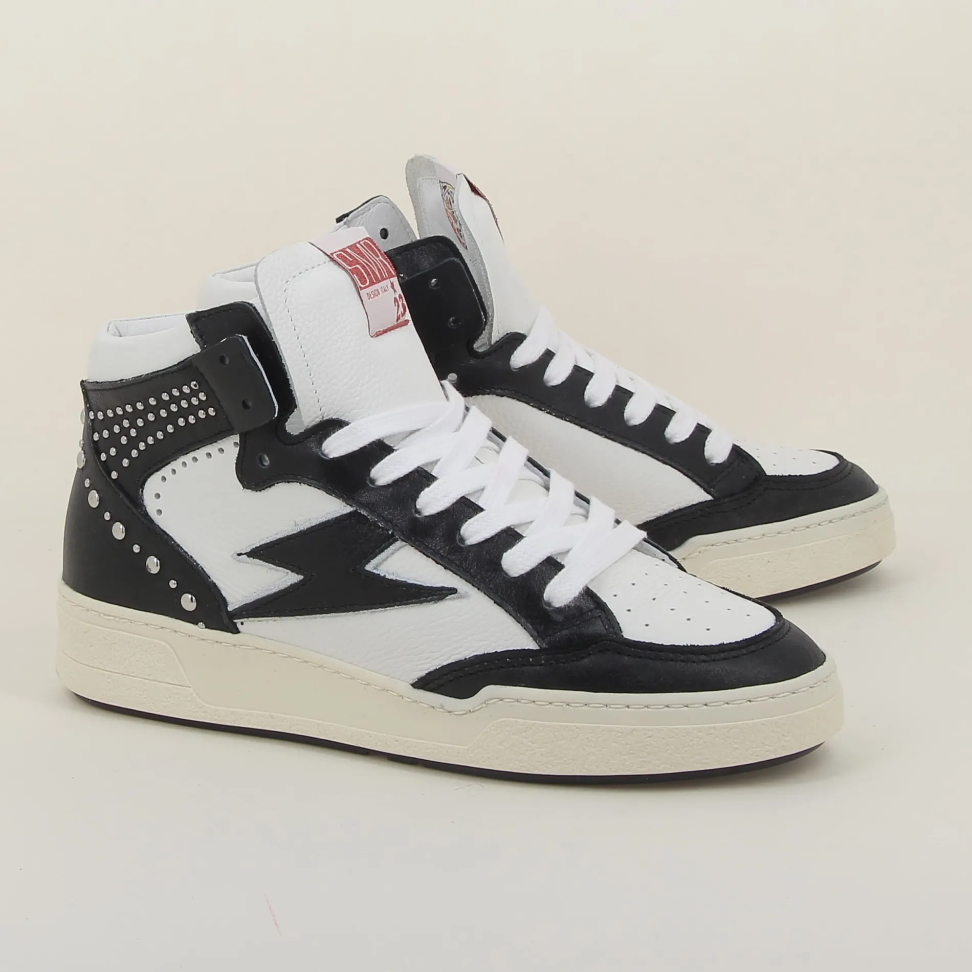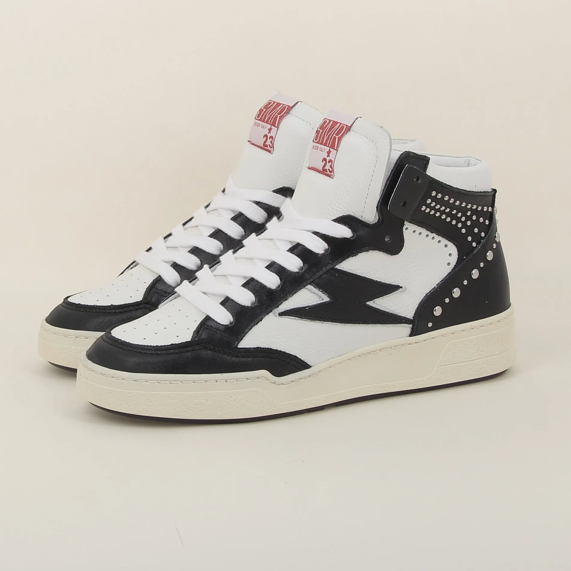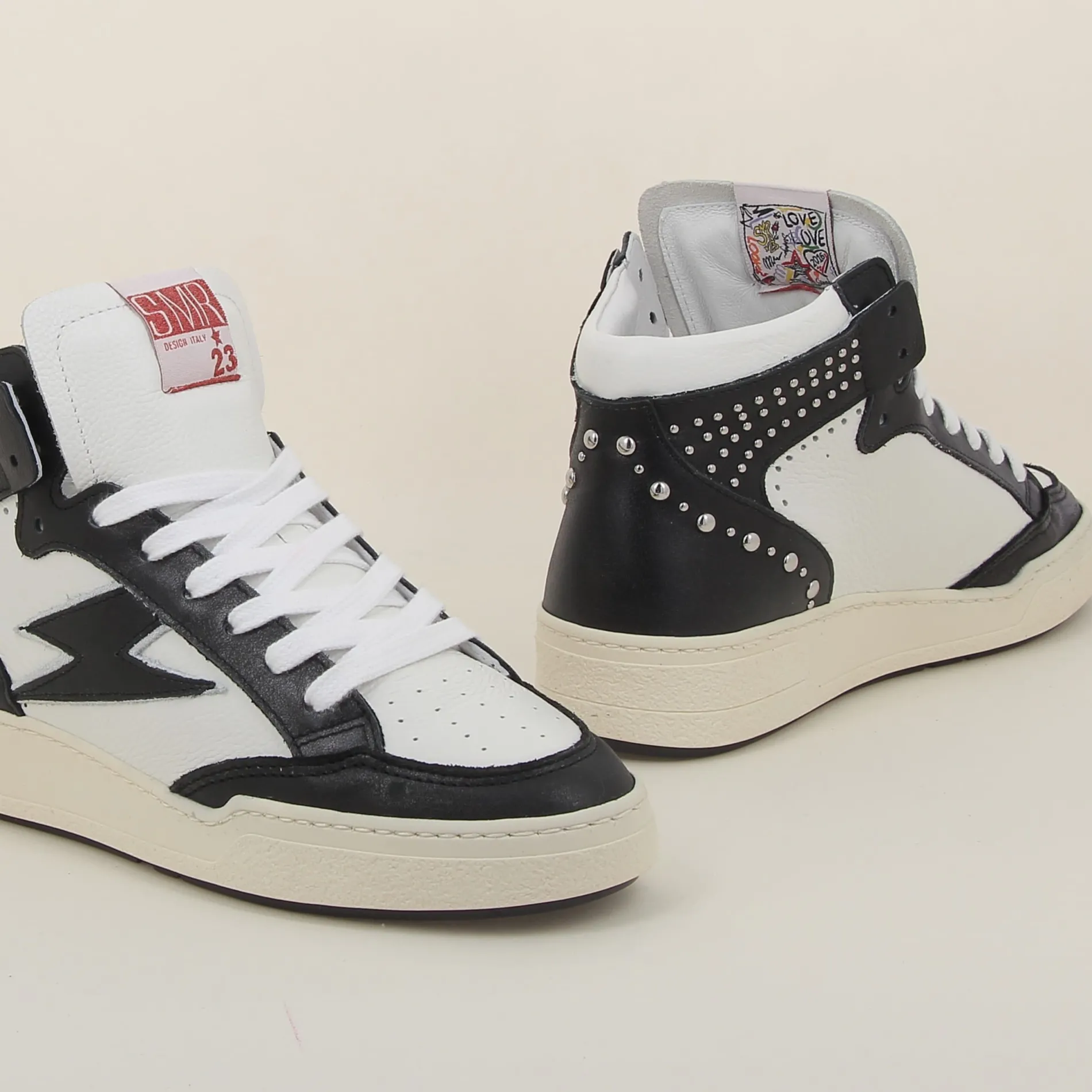 Les baskets BRAGA de chez Semerdjian en cuir blanc et noir incarnent le summum du style ! Chaque détail a été soigneusement pensé pour vous offrir une chaussure unique. Adoptez ces baskets SMJ et marchez avec confiance pour un look rock et dégaine.