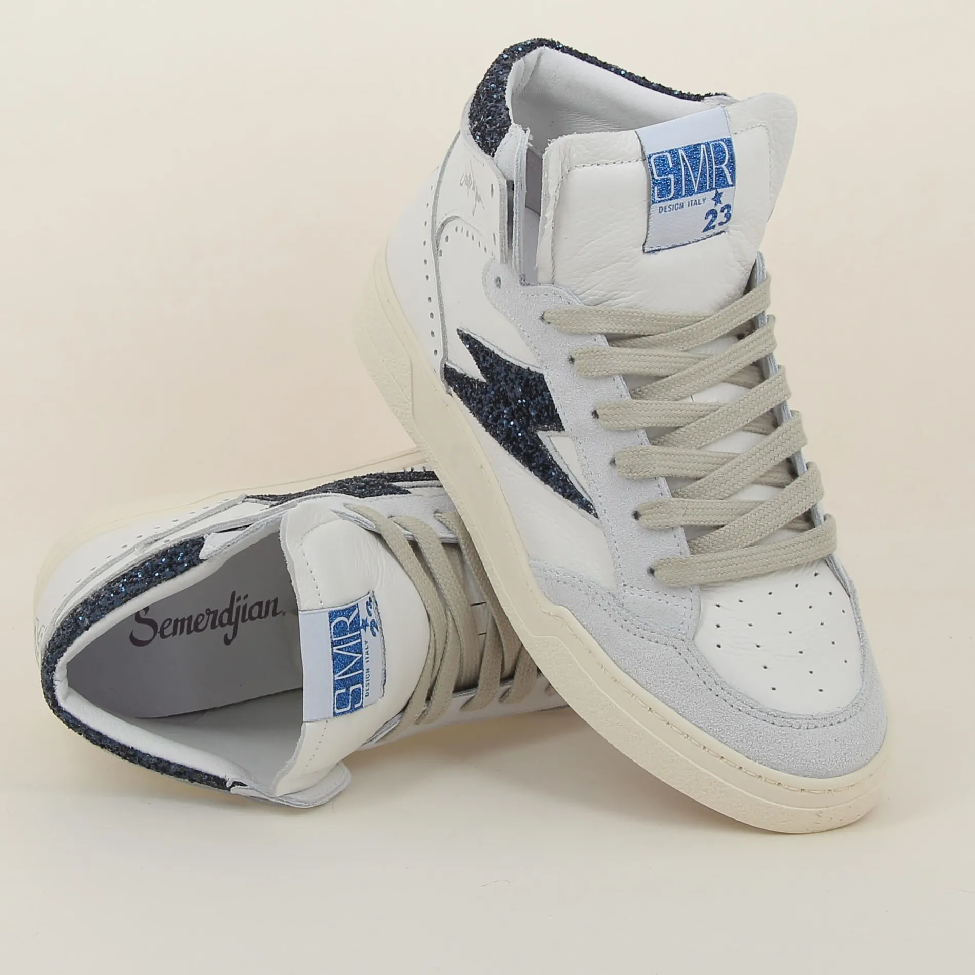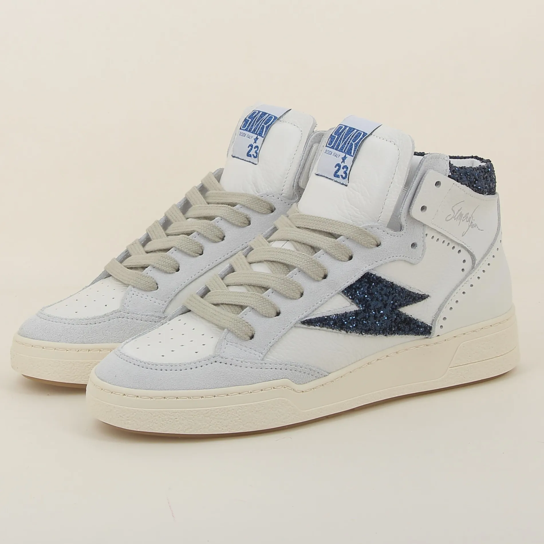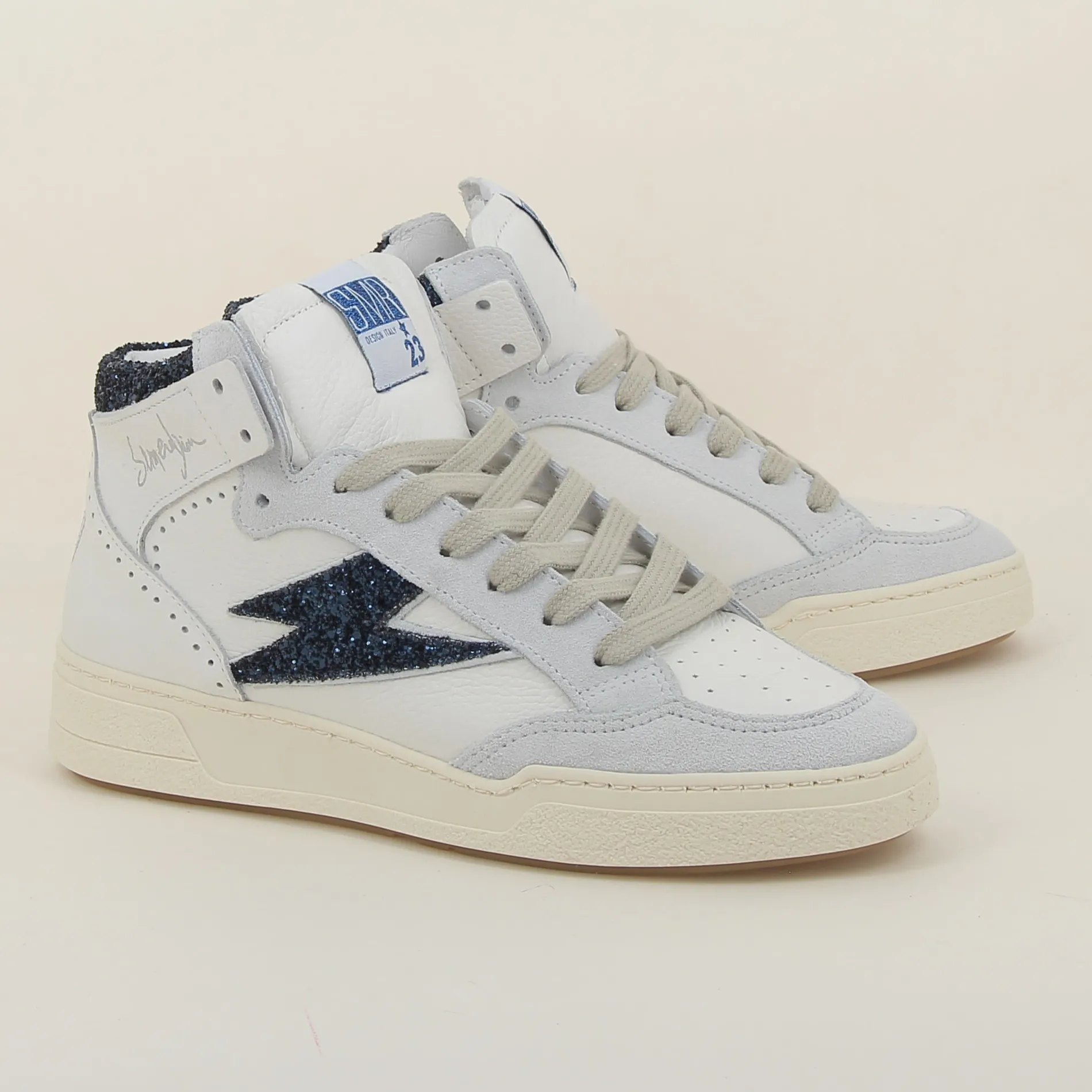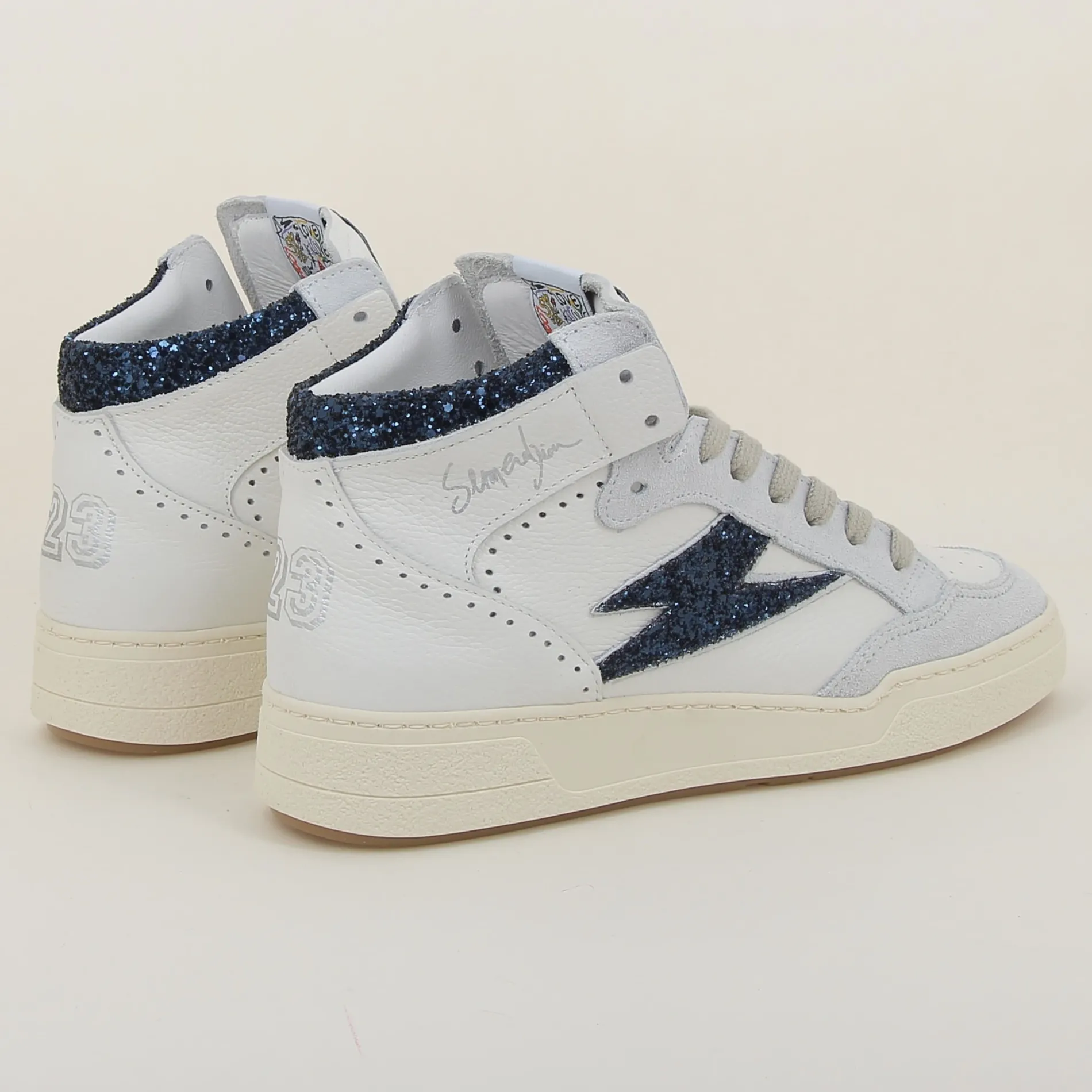 ★ Détail latéral : Éclair signature en glitter bleu marine, ajoutant une touche distinctive et texturée.