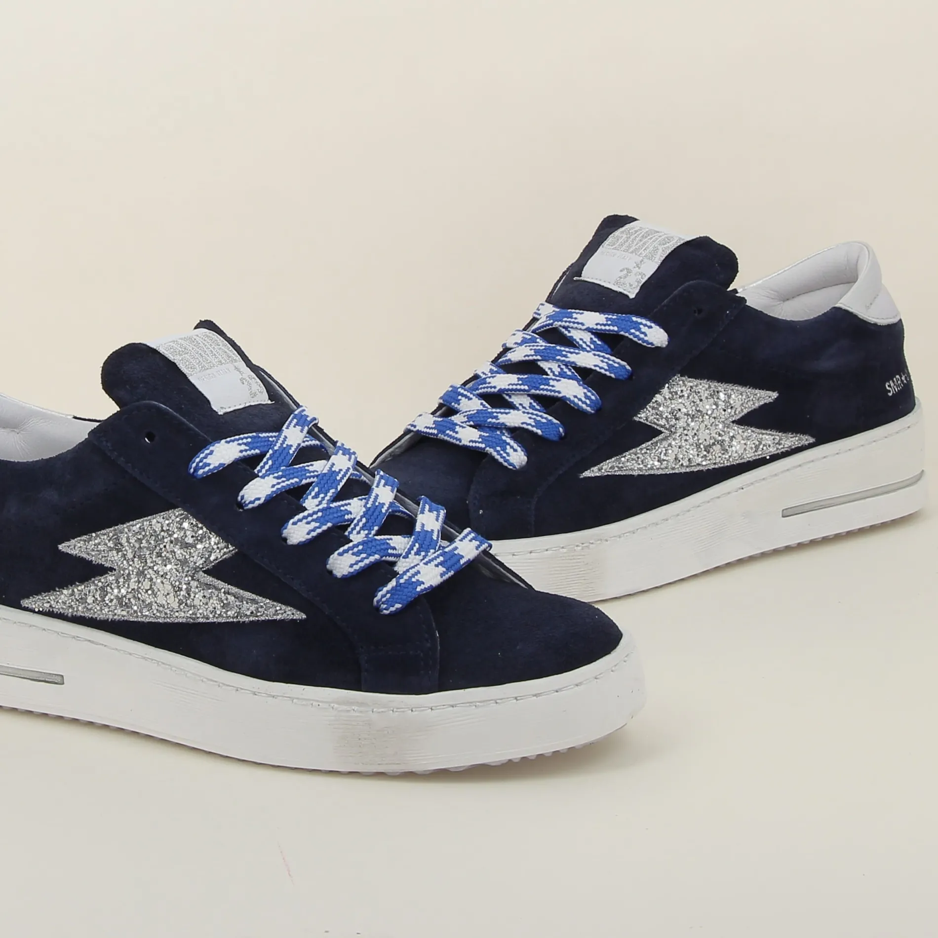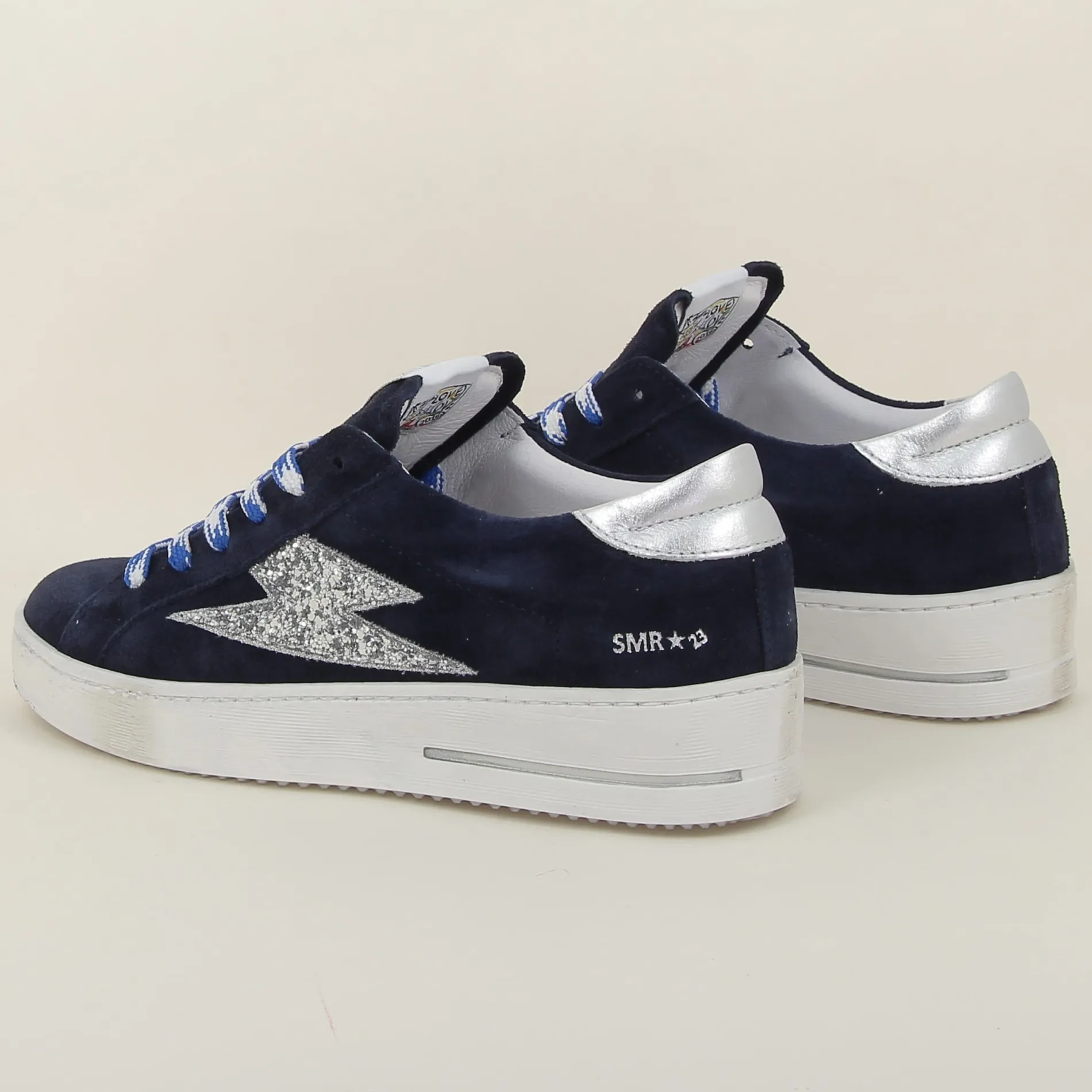 ★ Détail latéral : Une éclair en glitter argenté, apportant une touche de brillance et de modernité.