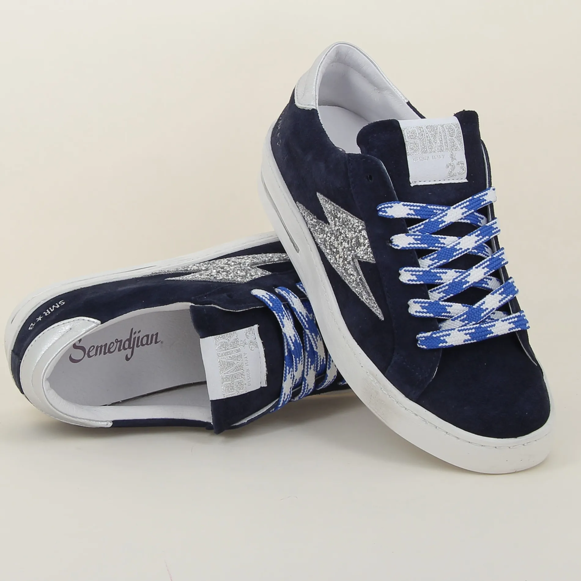 Les baskets Maya en daim bleu marine de la marque Semerdjian se démarquent par leur style audacieux et leurs finitions méticuleuses.