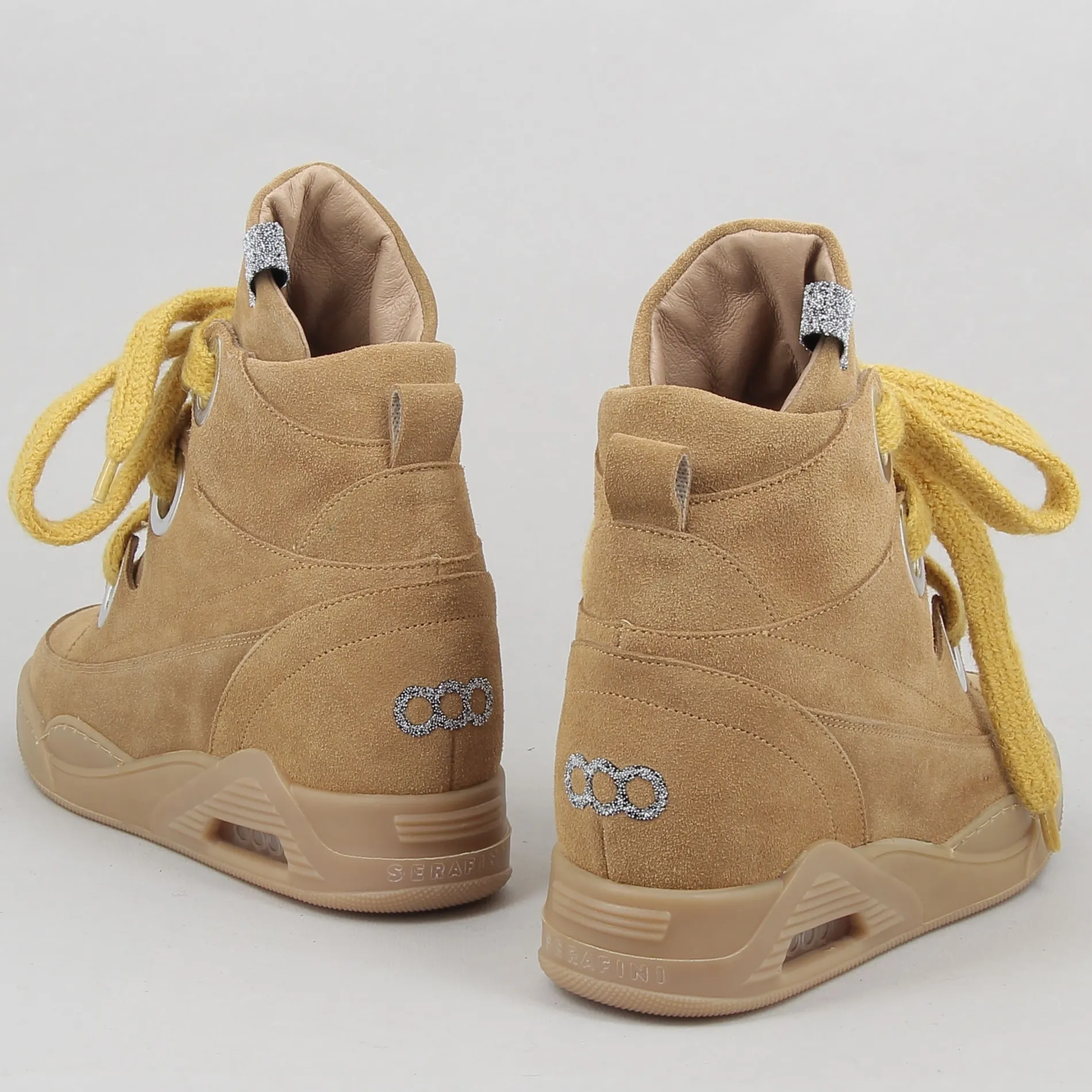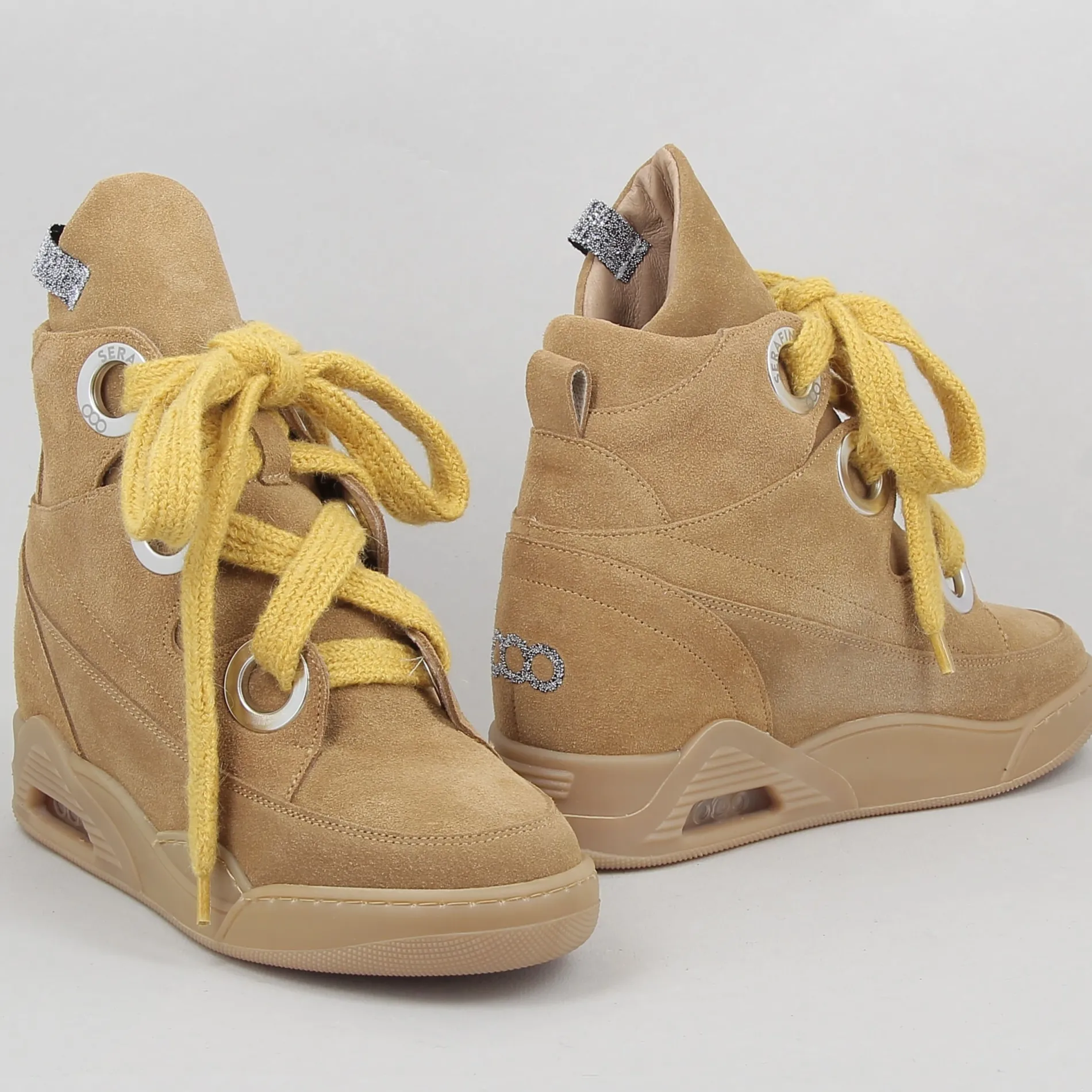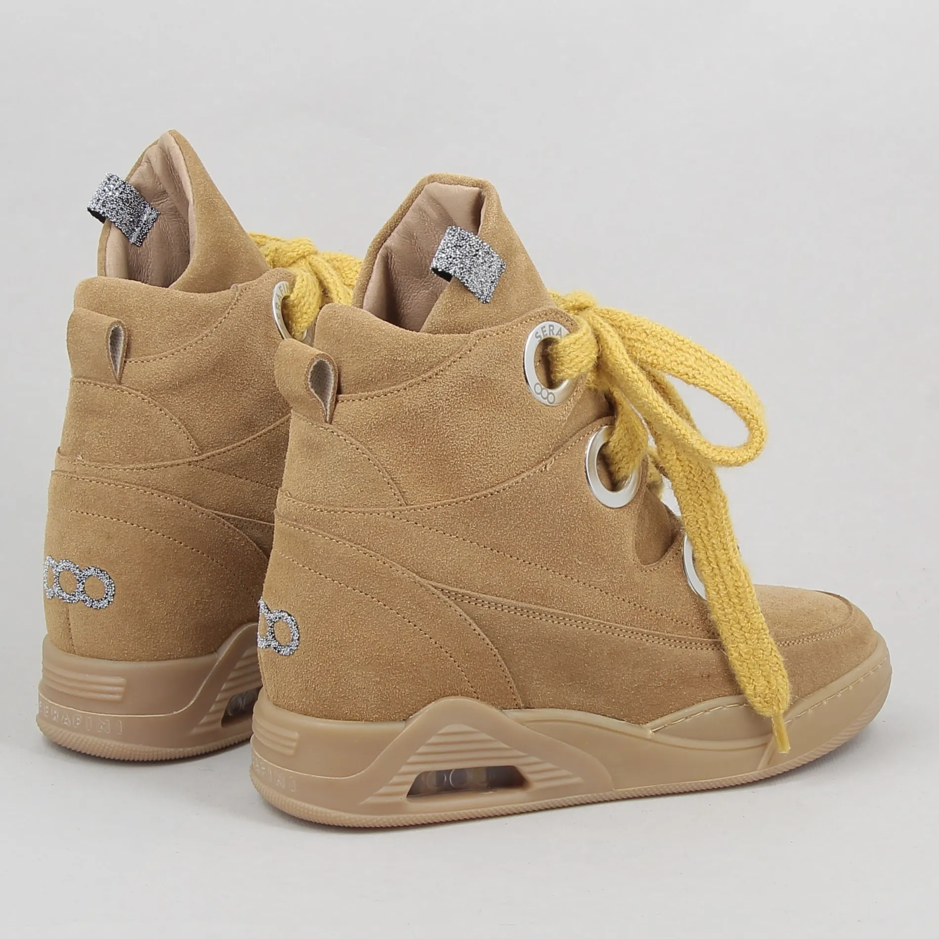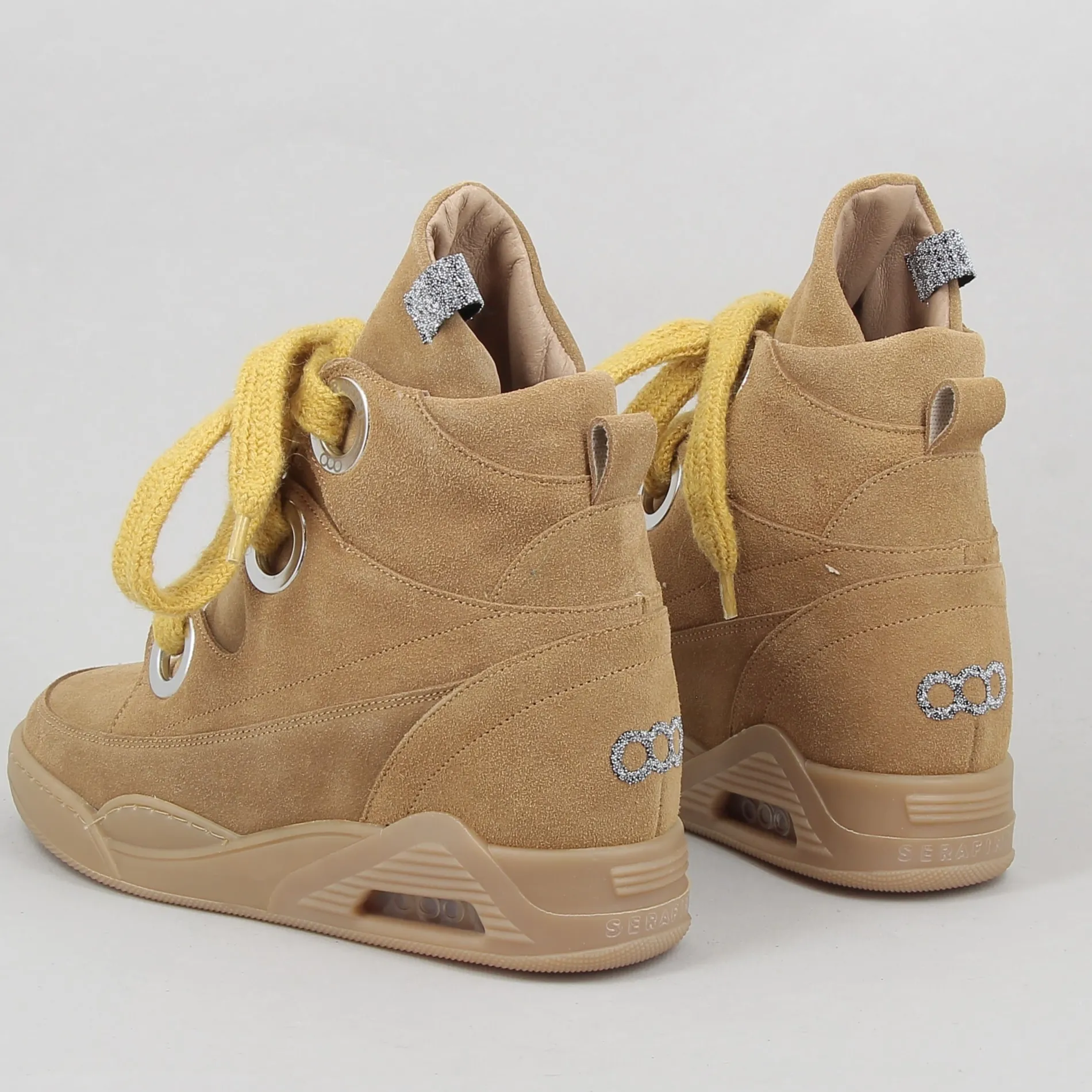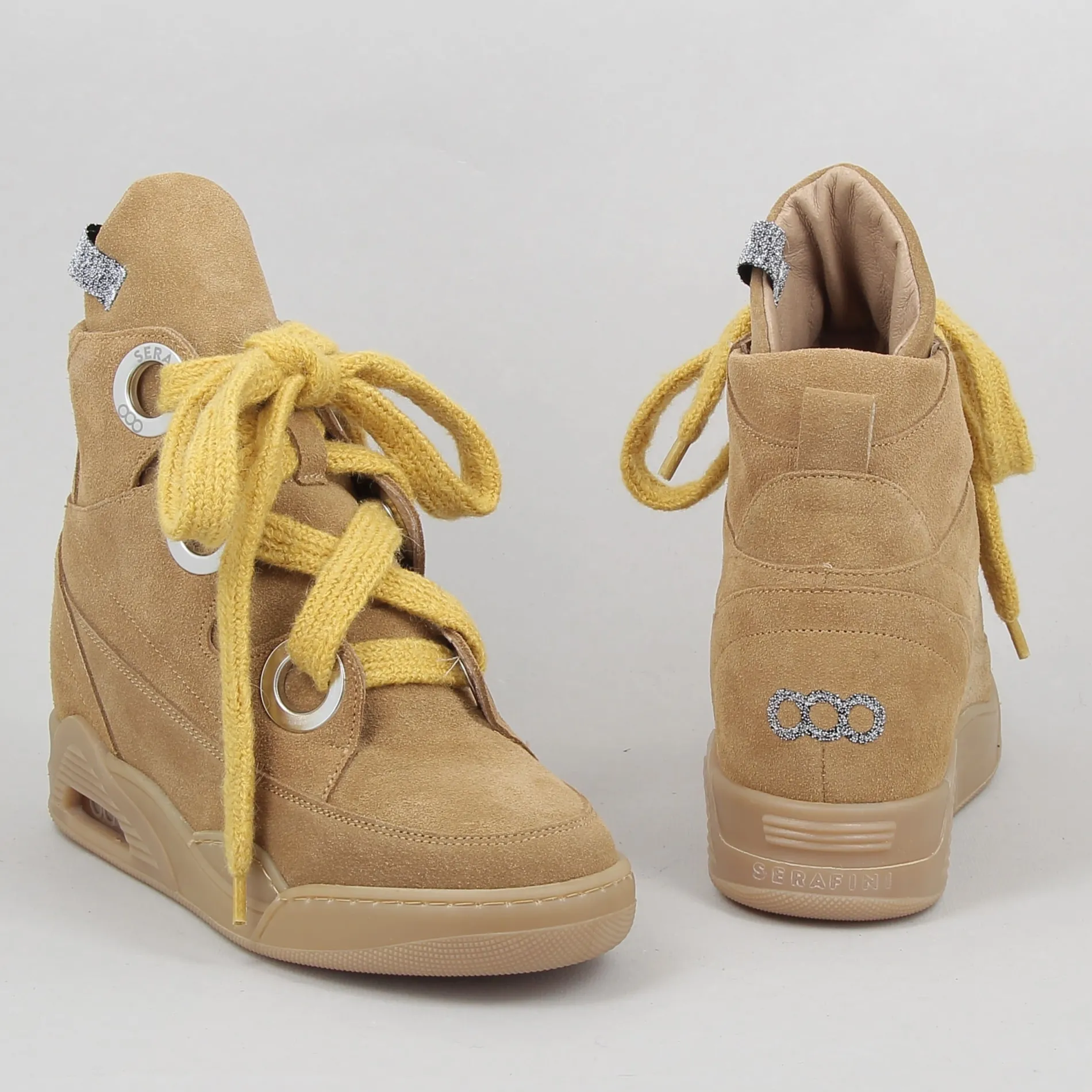 Les lignes de ces baskets à semelle compensée signées SERAFINI sont parfaites pour un look alternatif lady-chic qui combine l’innovation de la forme entièrement Made in Italy au style unique de la marque.