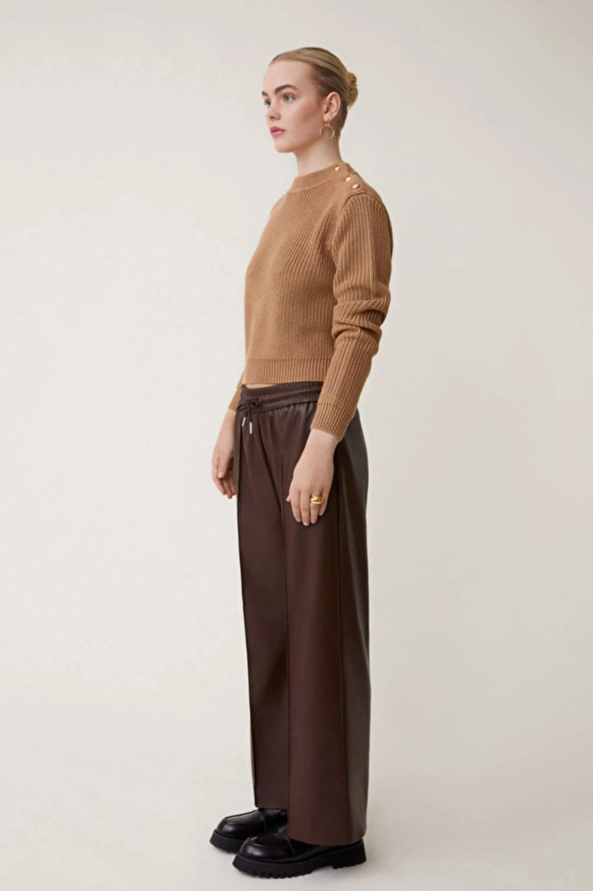 br />Marque : SuncooCouleur : Chocolat PANTALON JOHAN SUNCOO★ Pantalon large en simili cuir choco★ Cordon serrage à…