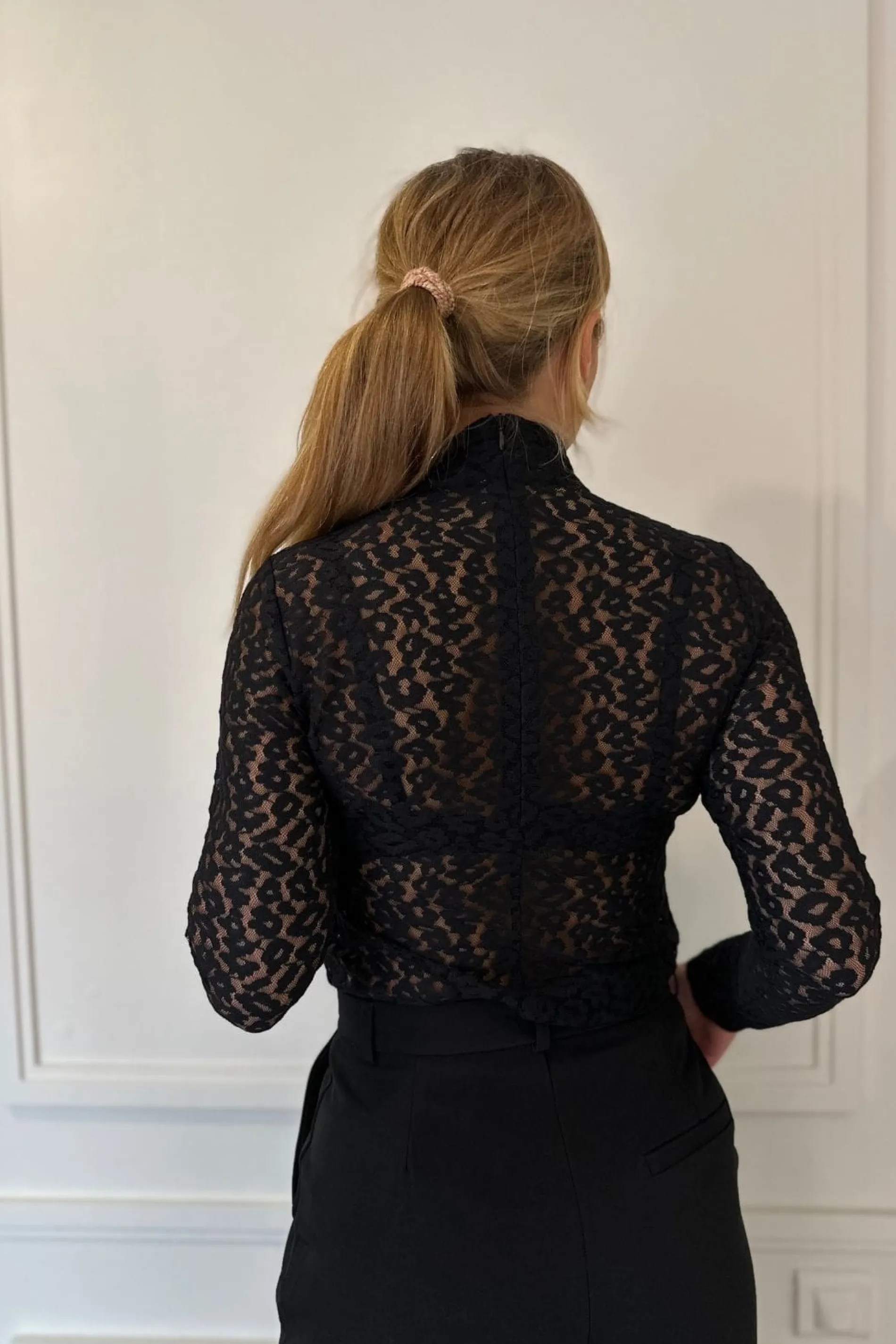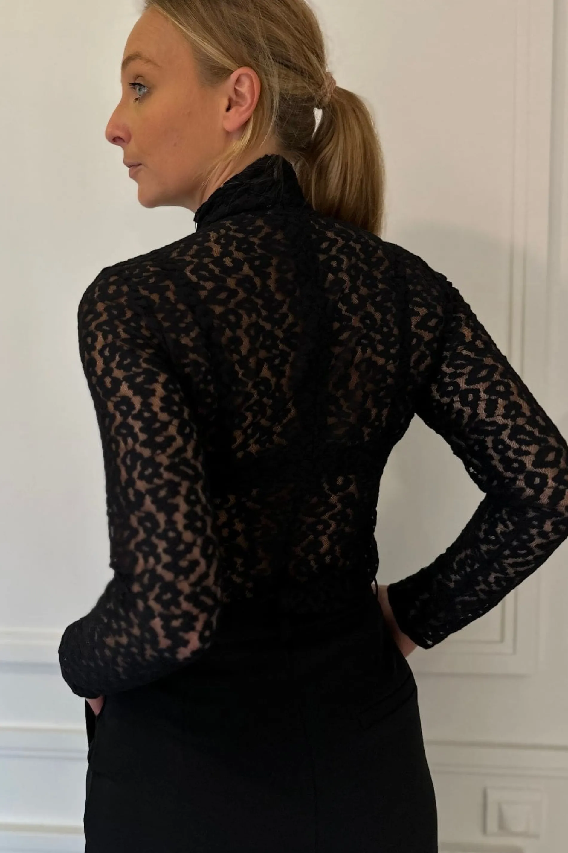 br />Marque : SUNCOOCouleur : NoirTOP LORENA SUNCOO★ Top transparent★ Manches longues★ Imprimé fleurs★ Col chem…