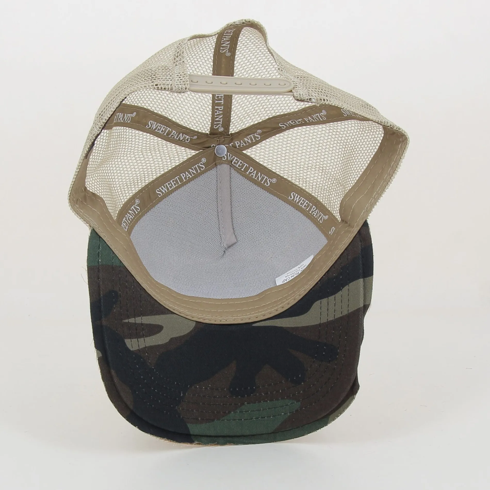 Cette casquette Sweat Pants bi-matière avec un effet destroy. Elle est de taille unique et ajustable, convenant donc à différents tours de tête. La casquette est conçue pour être portée par les hommes et les femmes. Elle est fabriquée à partir d’un mélange de polyester et de coton. Patch logo sweet pants à l’avant. Imprimé militaire sous la visière.
