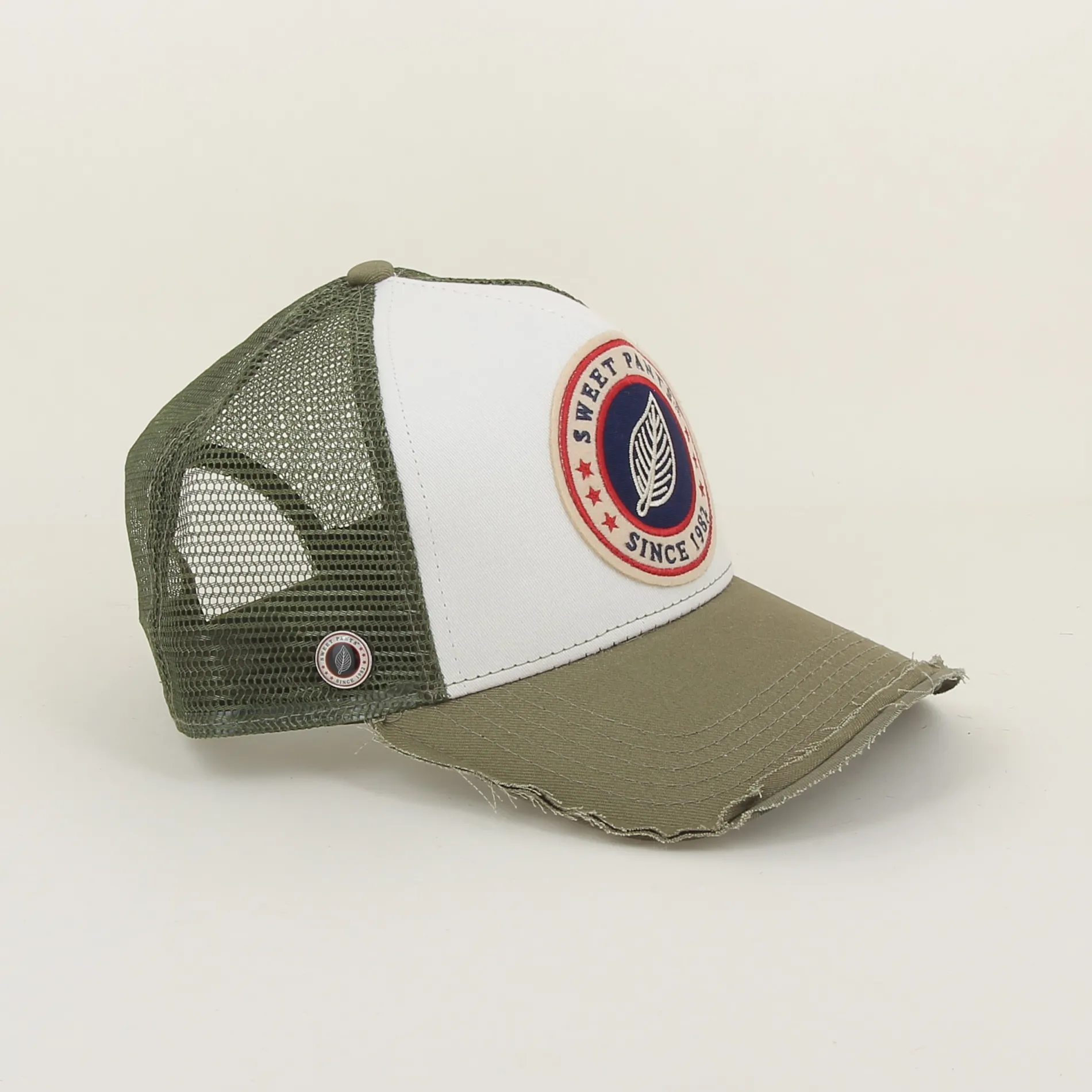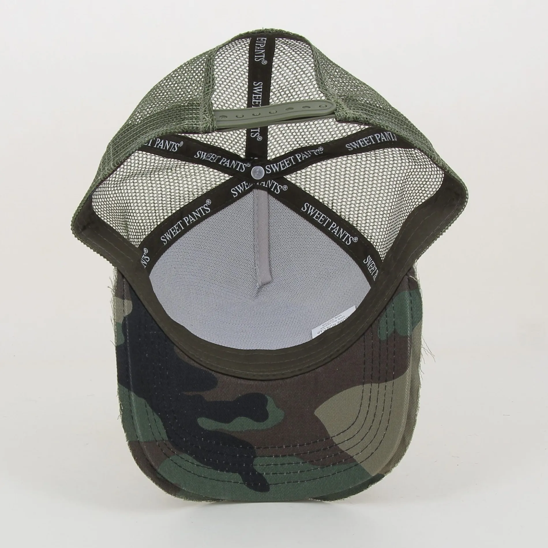 Cette casquette Sweat Pants bi-matière avec un effet destroy. Elle est de taille unique et ajustable, convenant donc à différents tours de tête. La casquette est conçue pour être portée par les hommes et les femmes. Elle est fabriquée à partir d’un mélange de polyester et de coton. Patch logo sweet pants à l’avant. Imprimé militaire sous la visière.