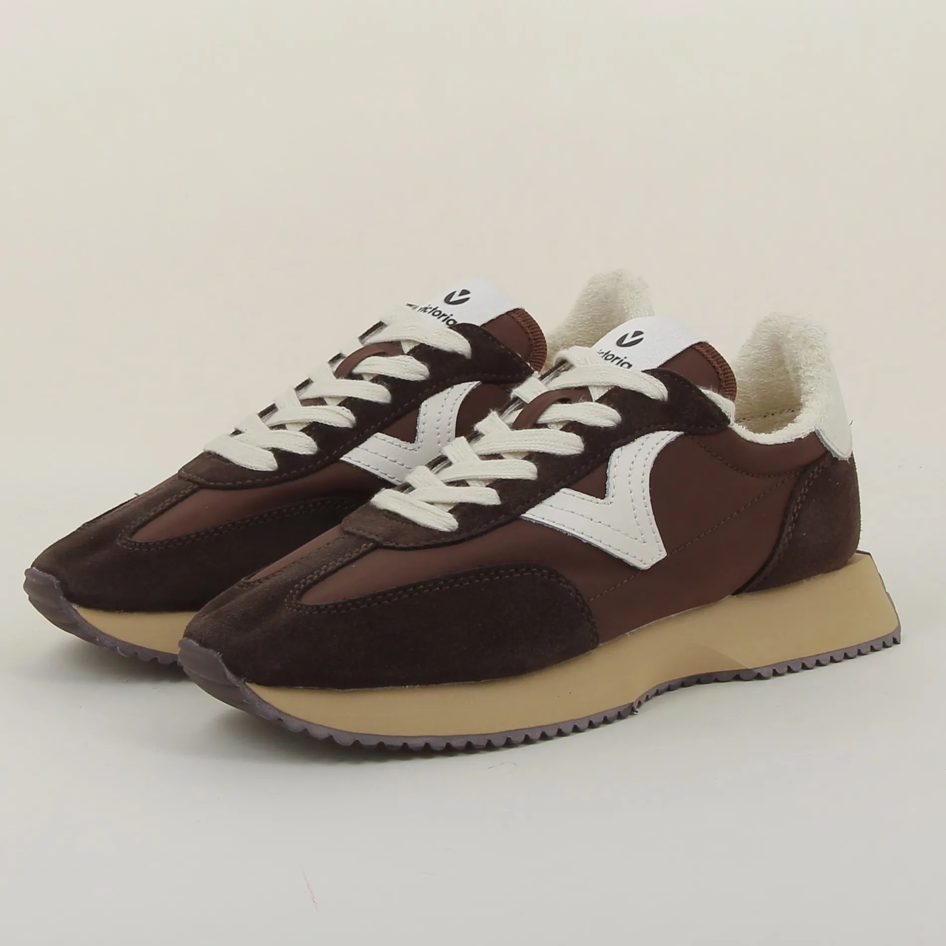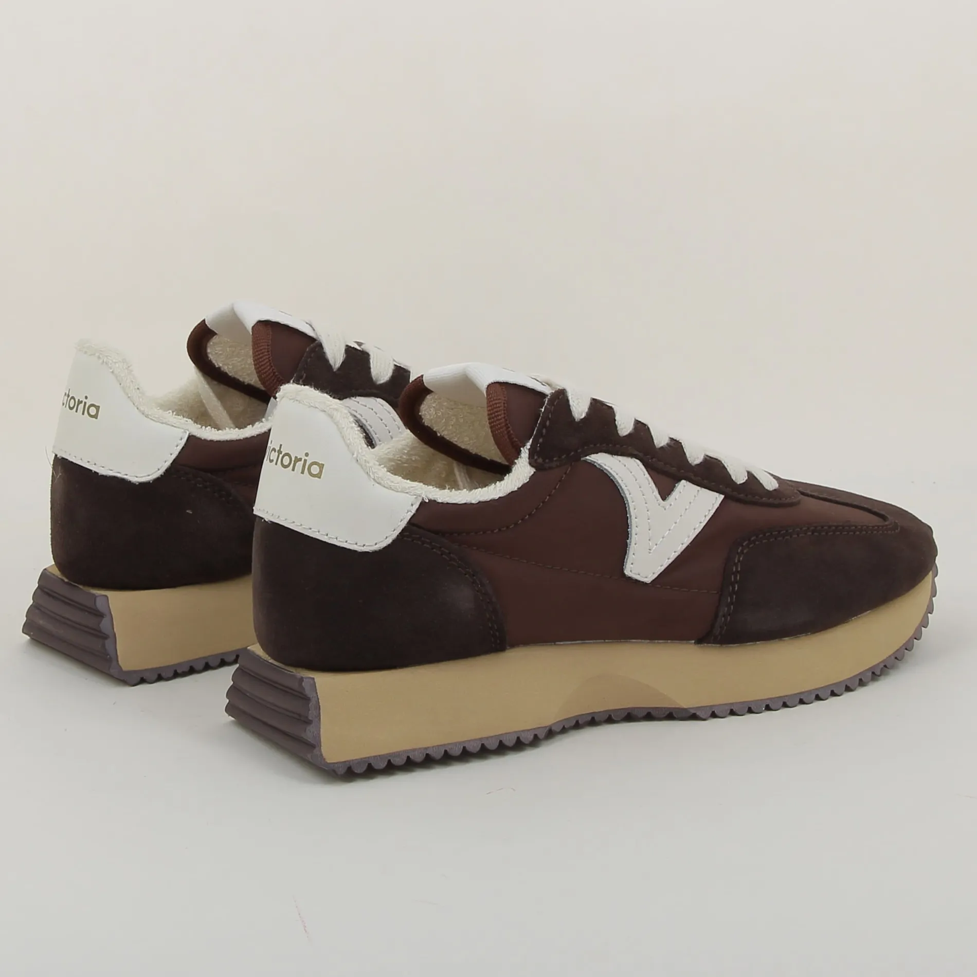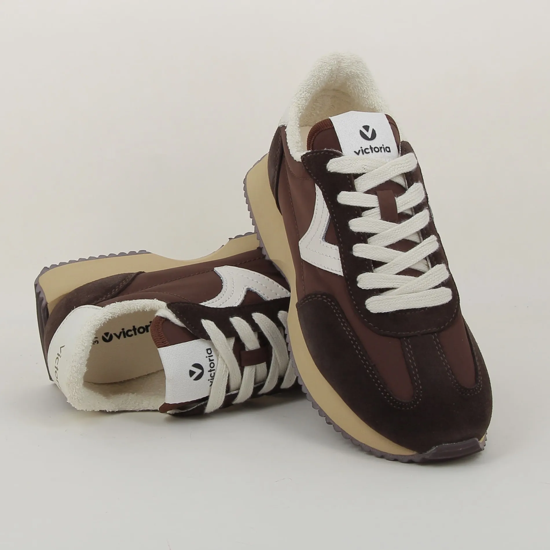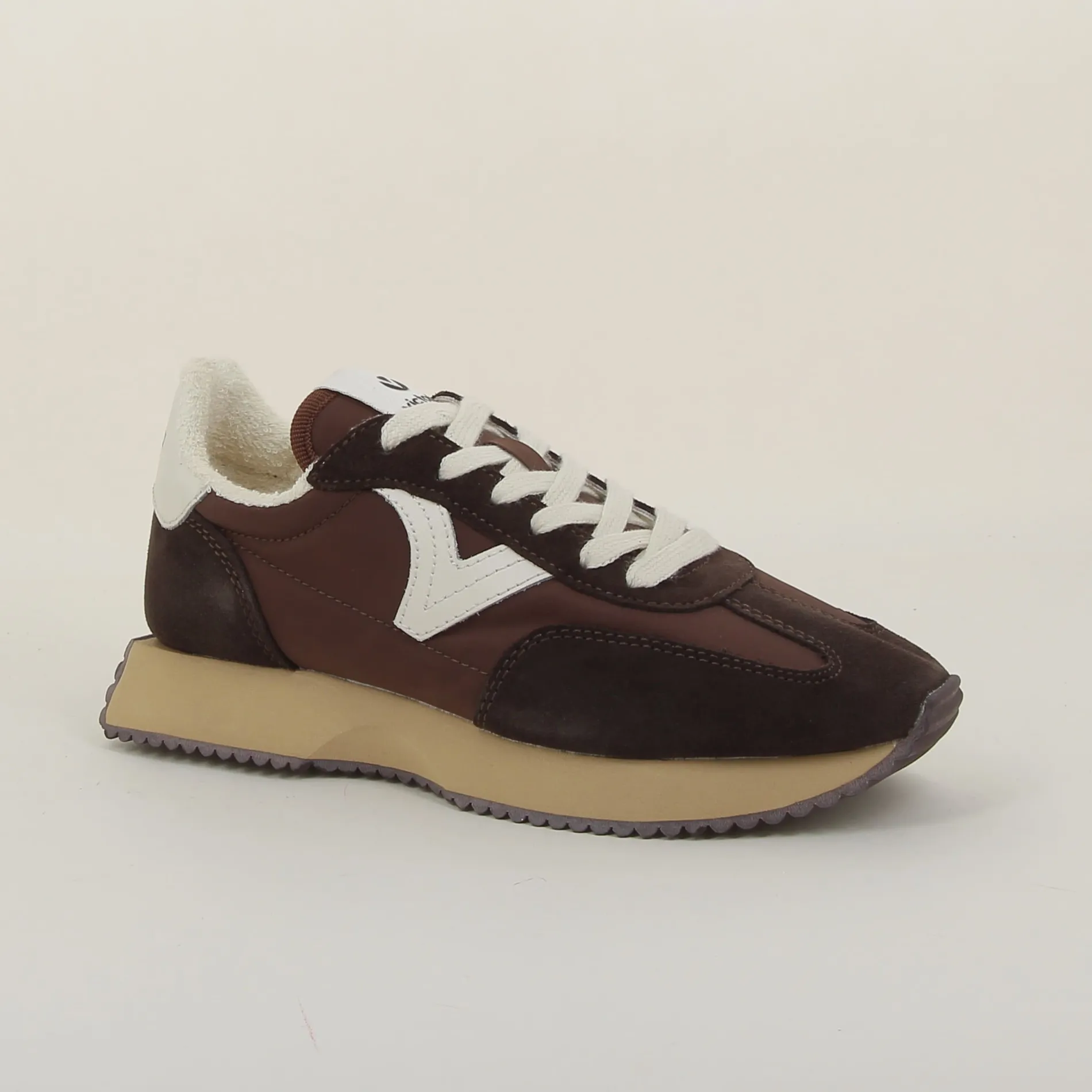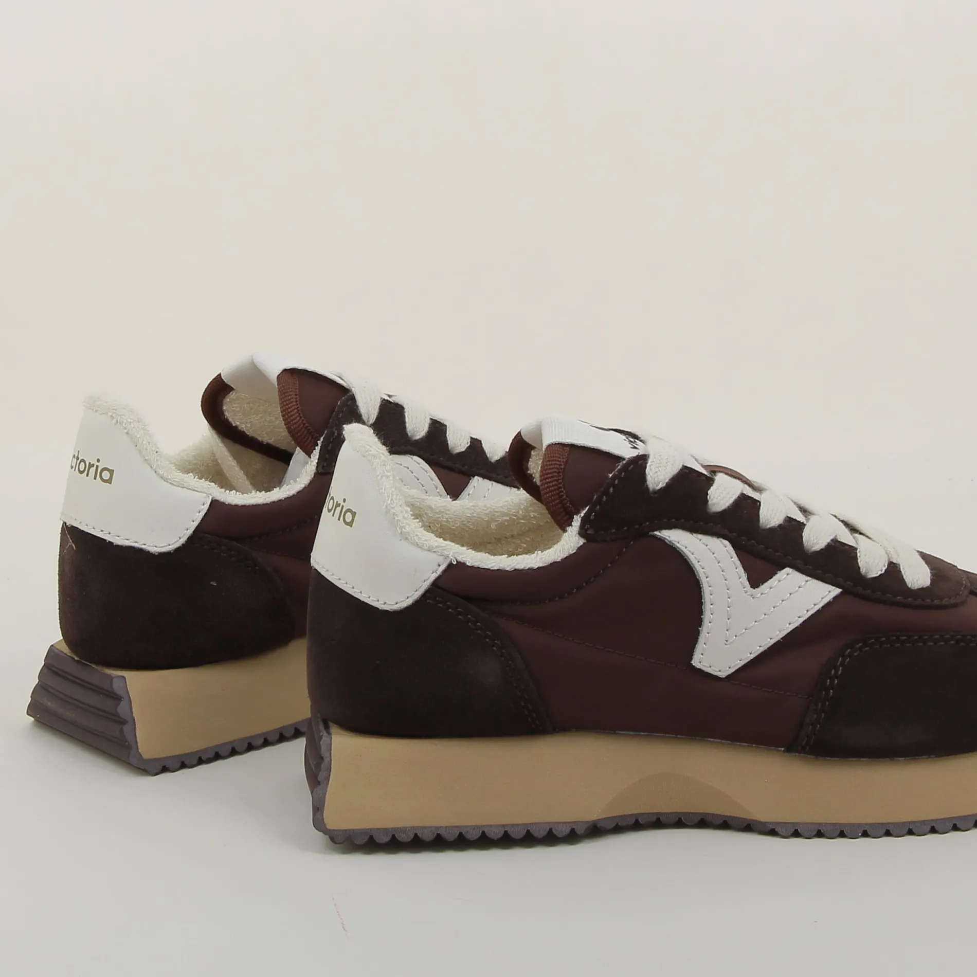 ★ Languette en nylon marron ornée d’un patch Victoria écru et de lacets plats écrus pour une touche subtile.