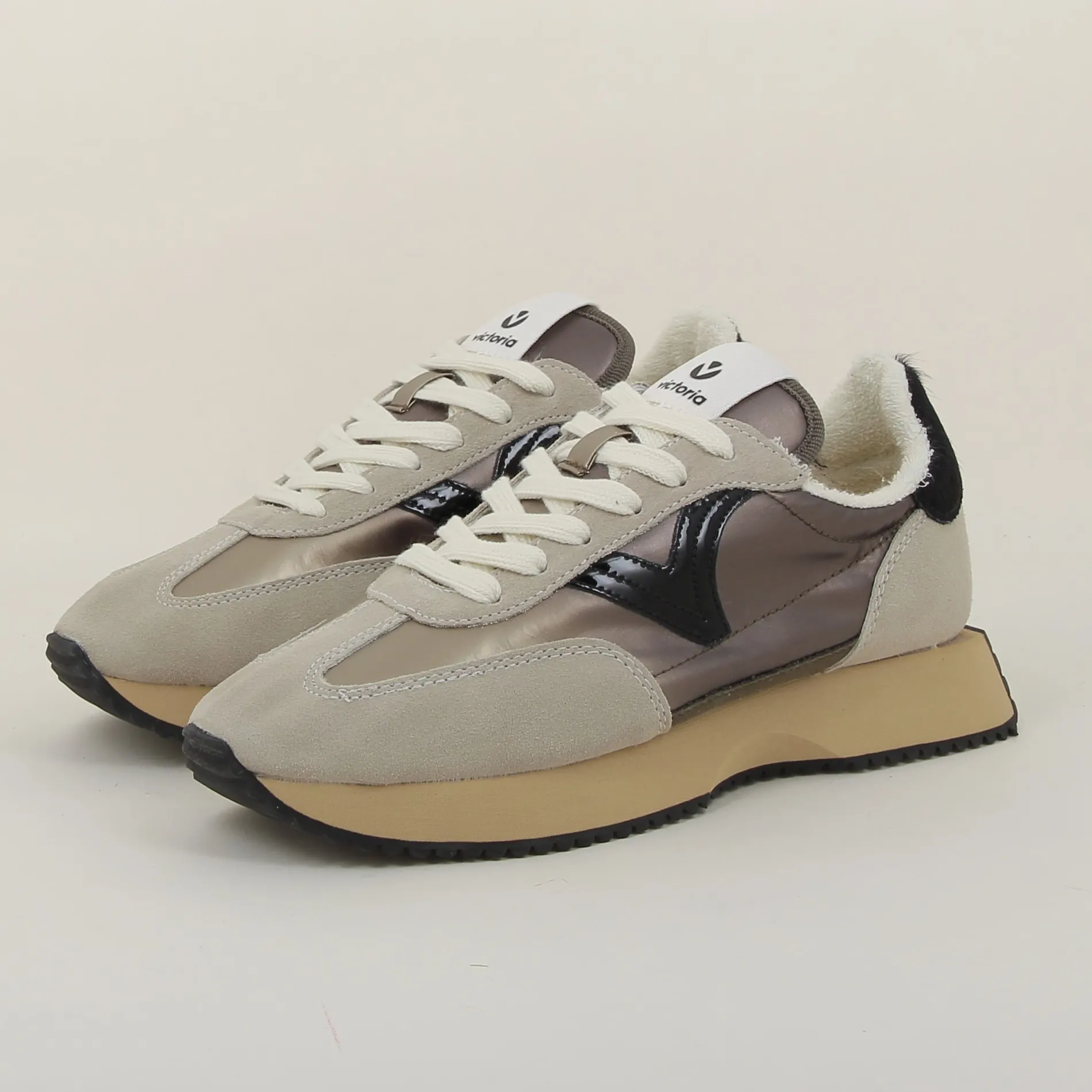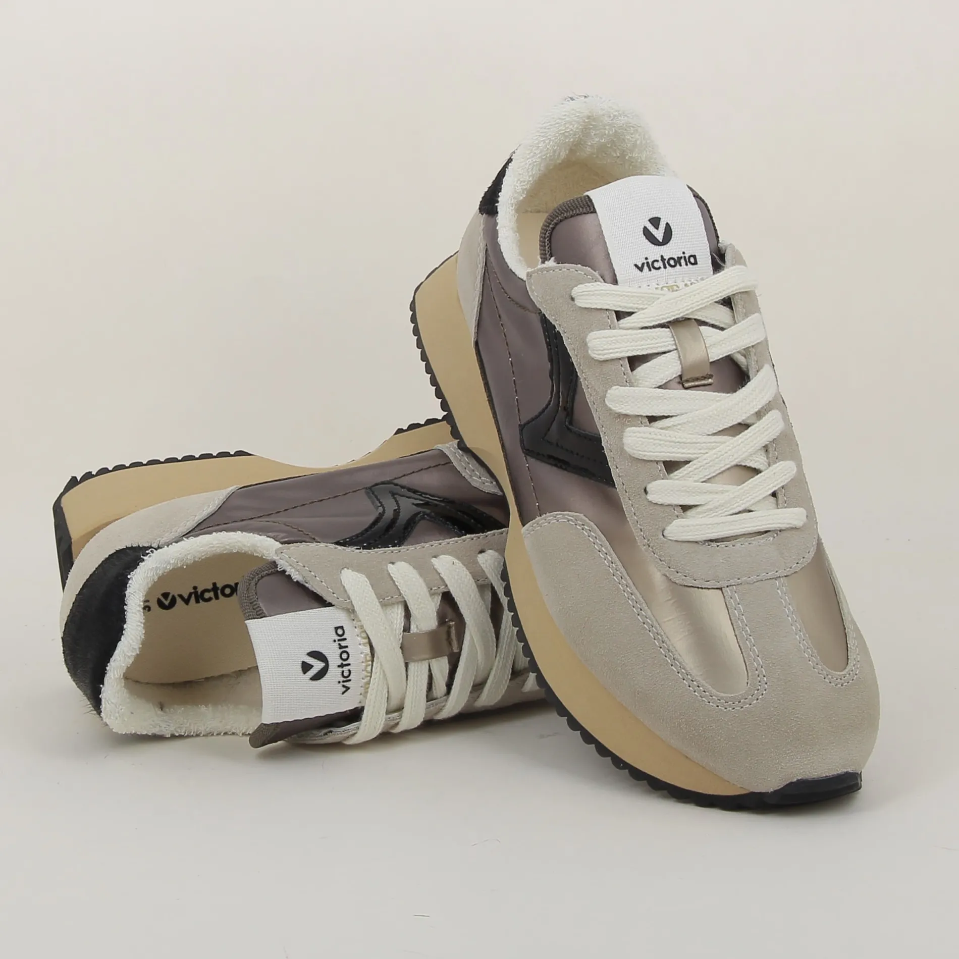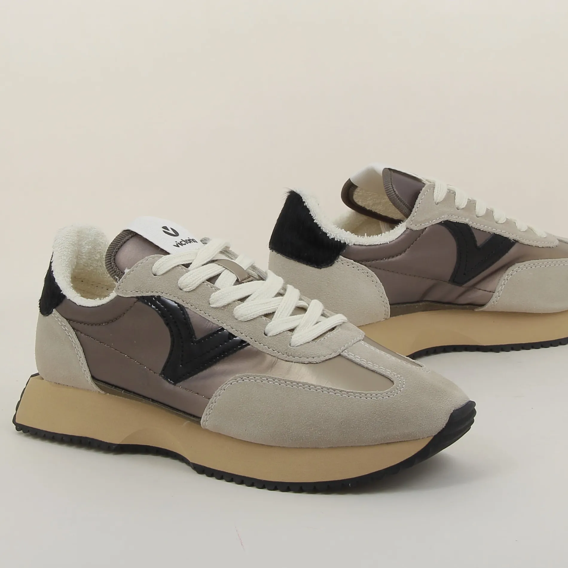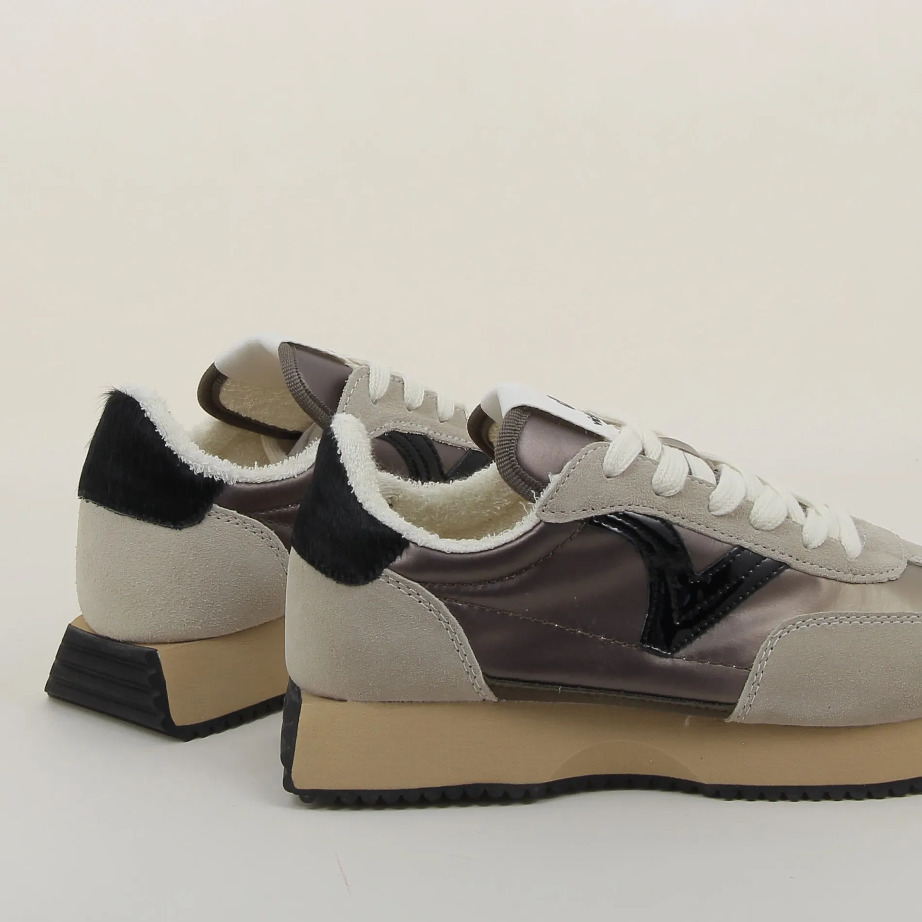 ★ Tige en nylon laminé bronze avec des empiècements en daim contrastants, pour un look à la fois élégant et décontracté.