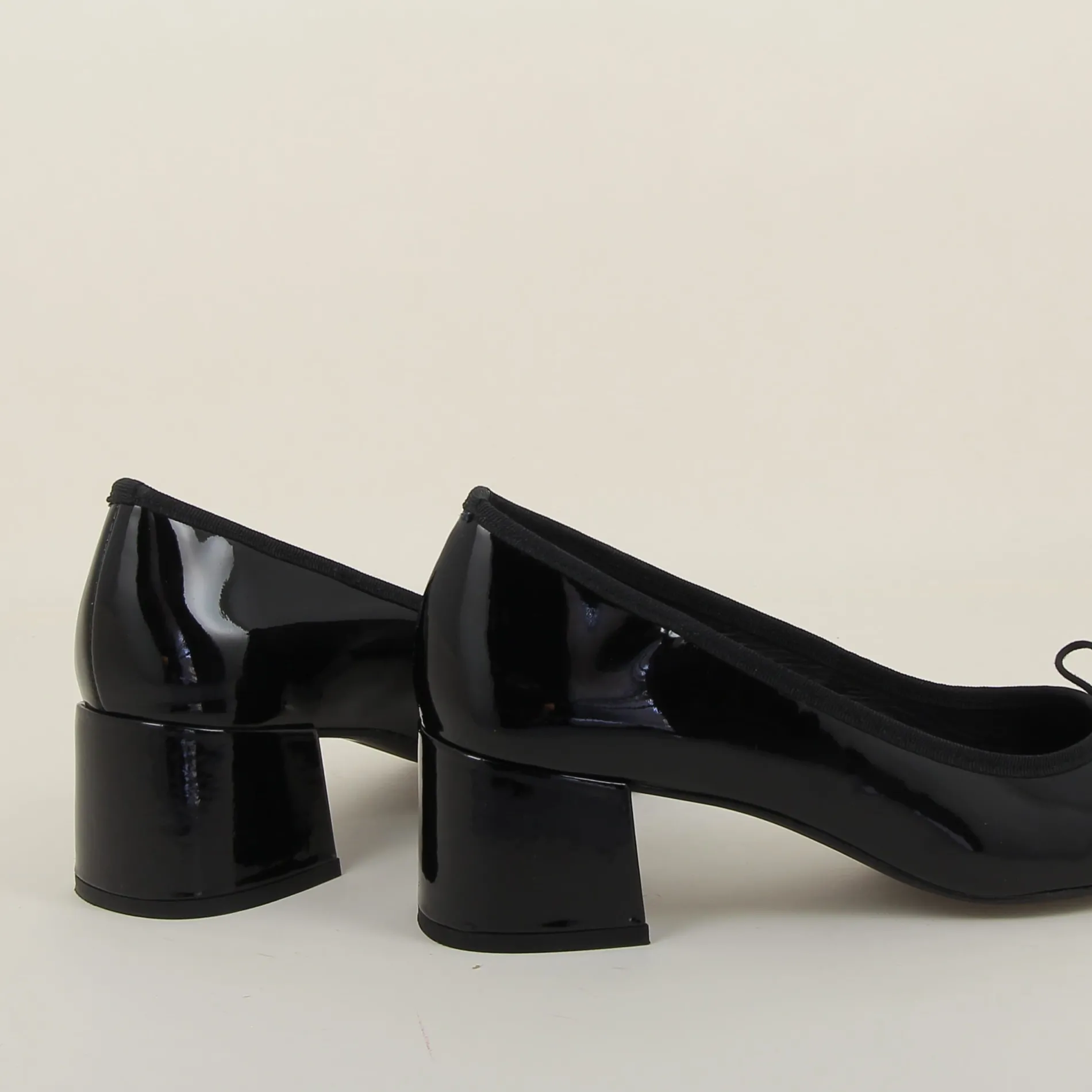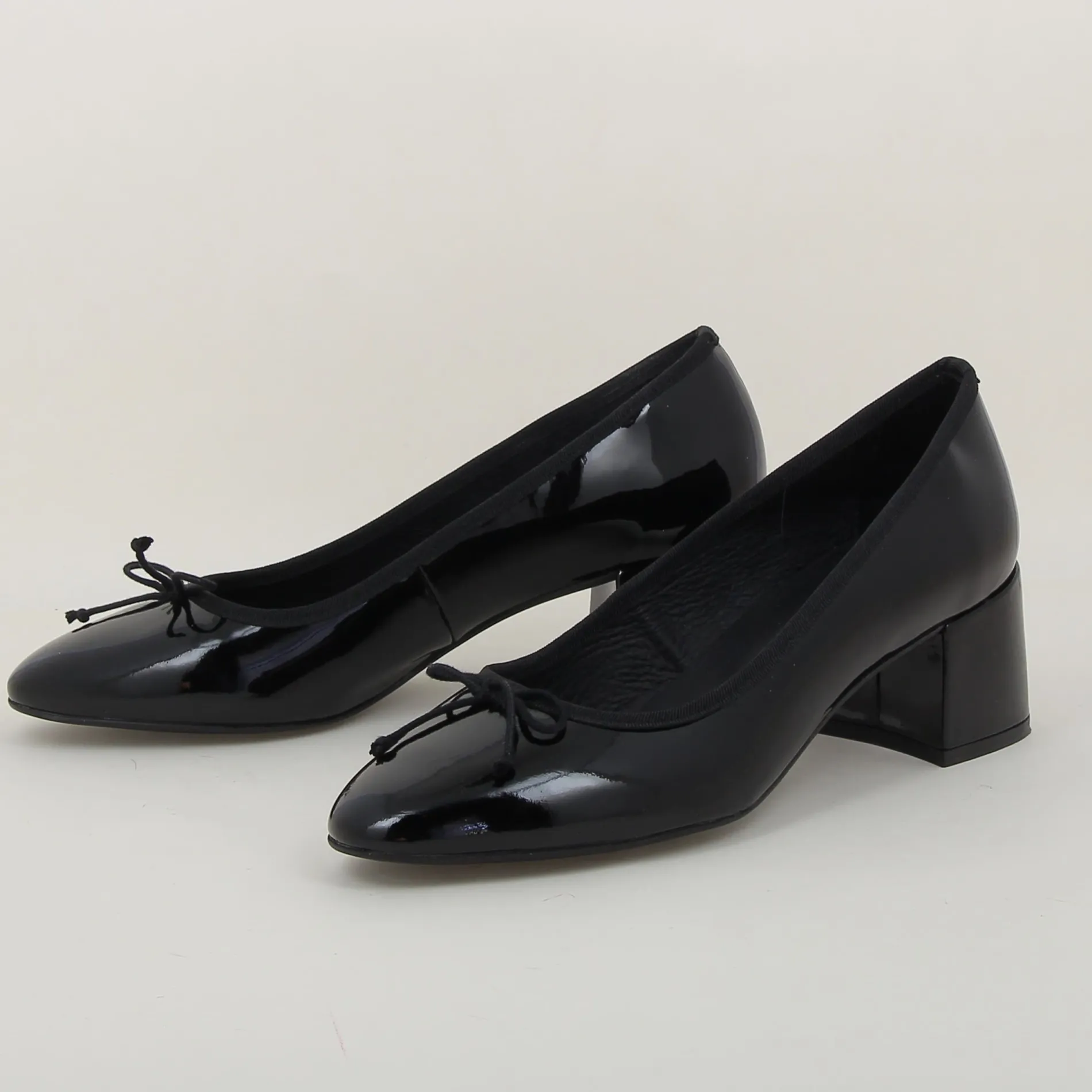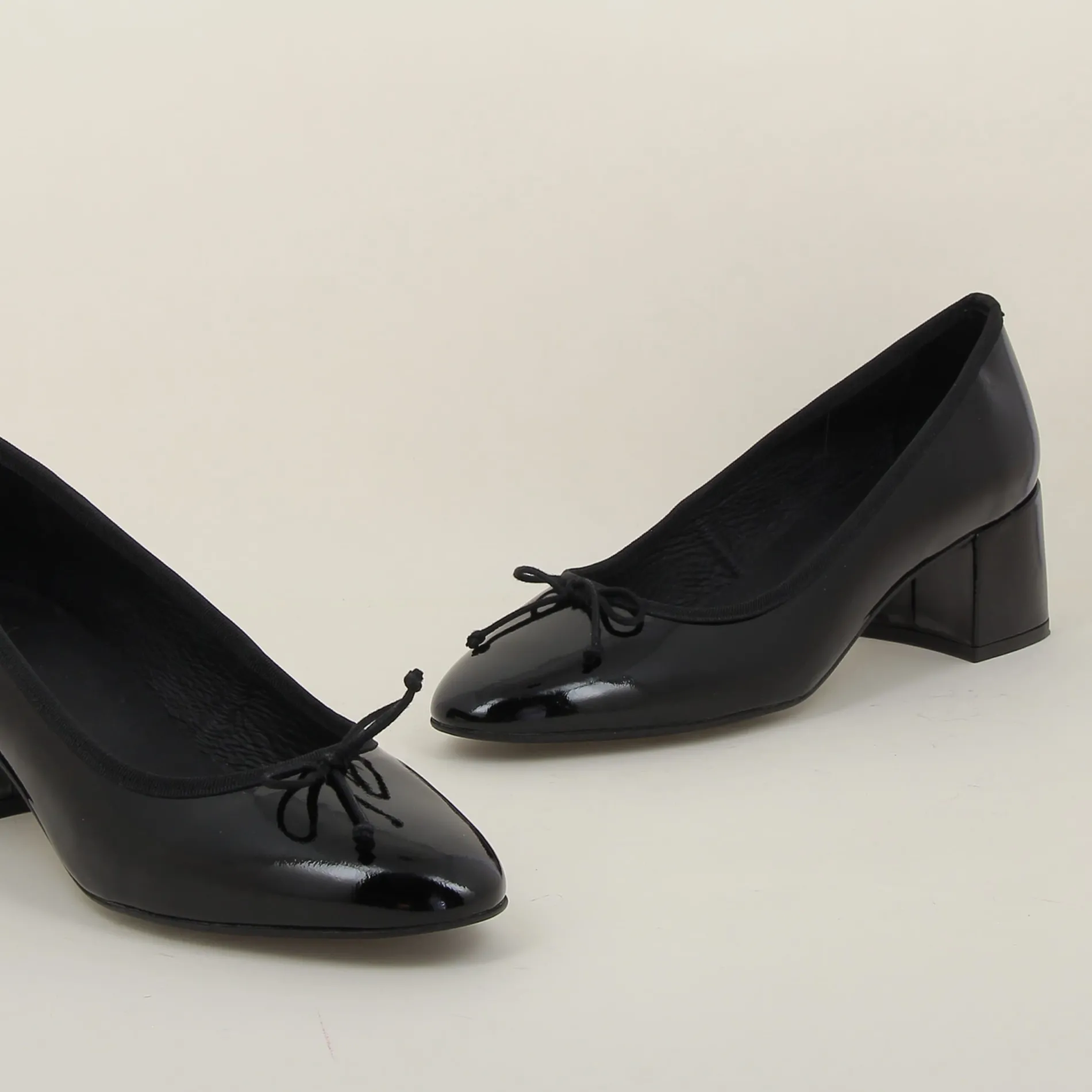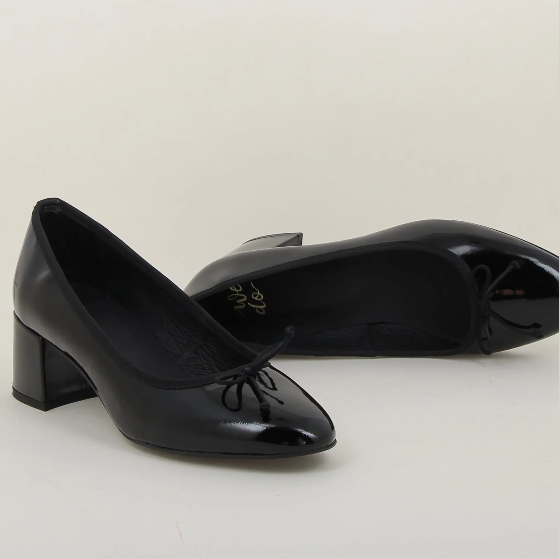 ★ Talons : Talons blocs, d’une hauteur de 5 cm, recouverts de cuir vernis noir pour une élégance uniforme tout en assurant stabilité et confort.
