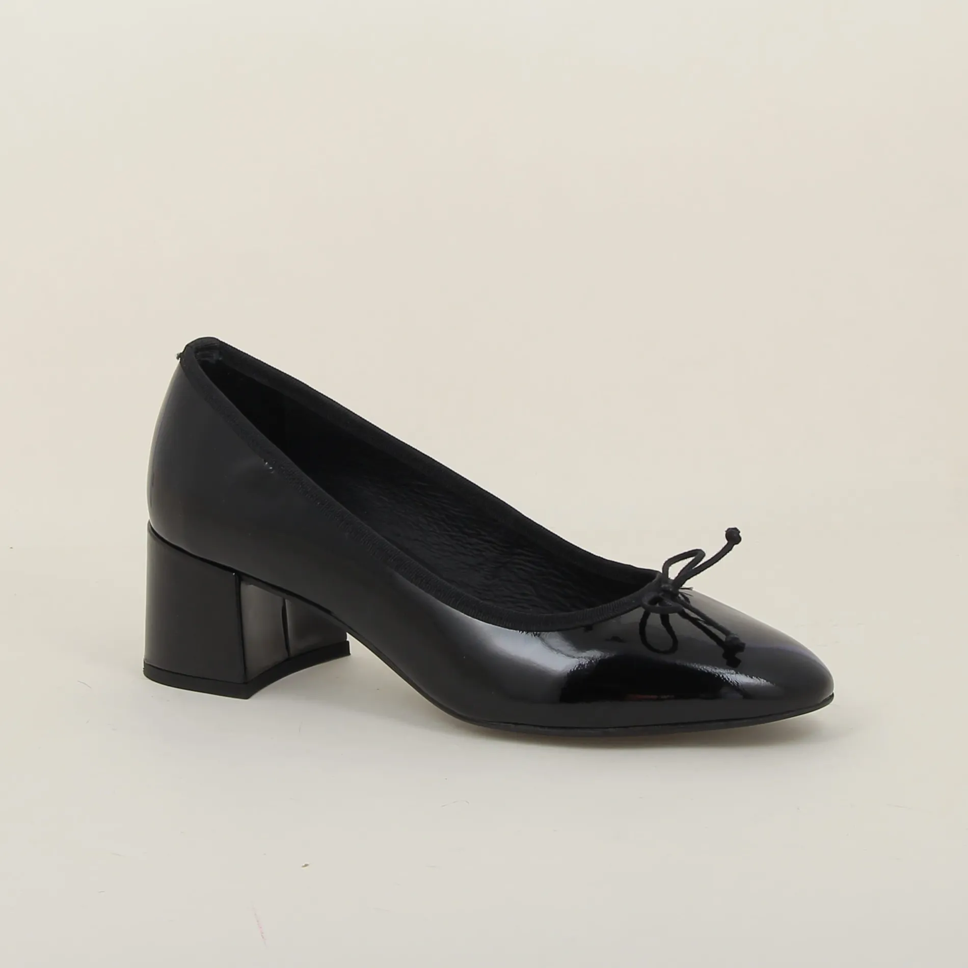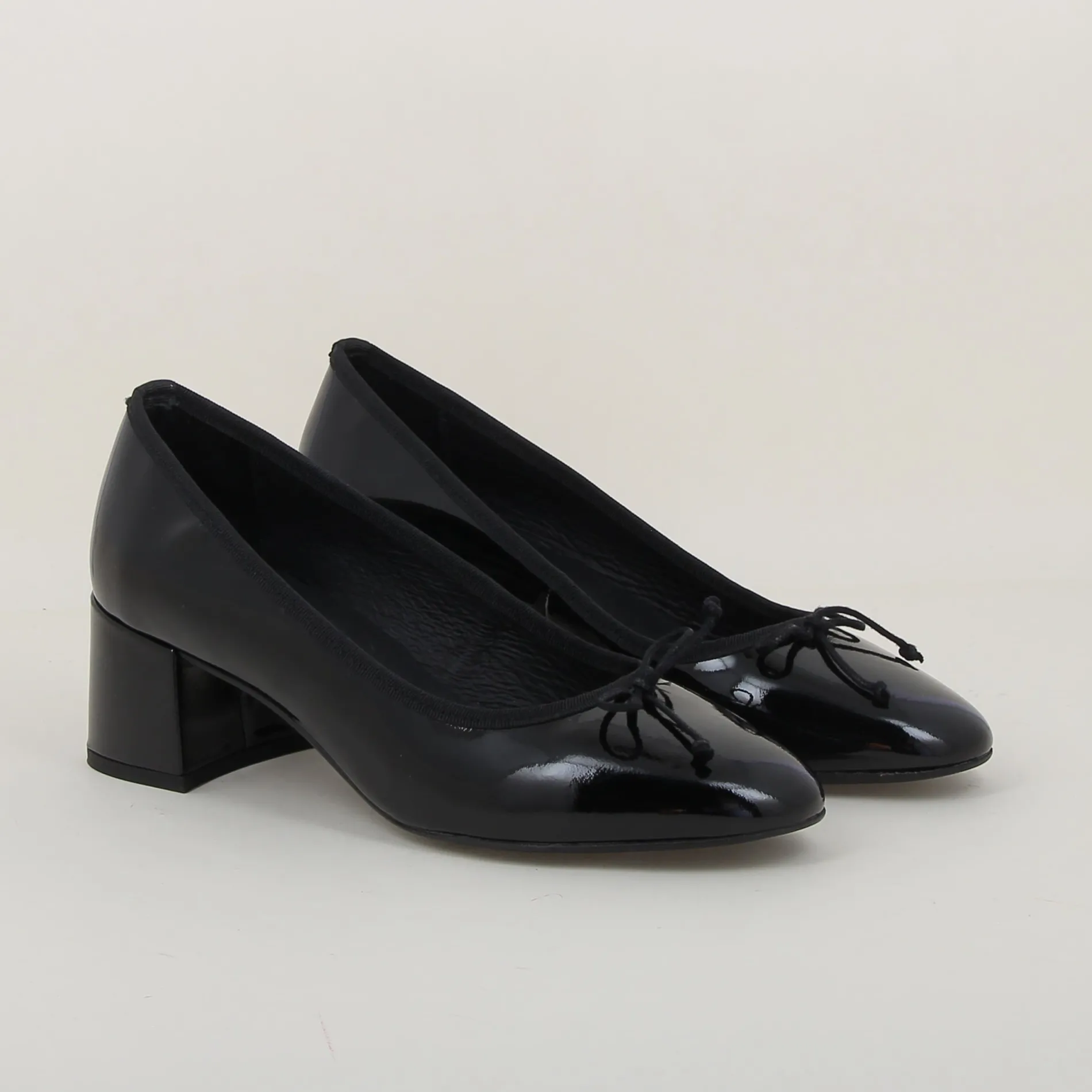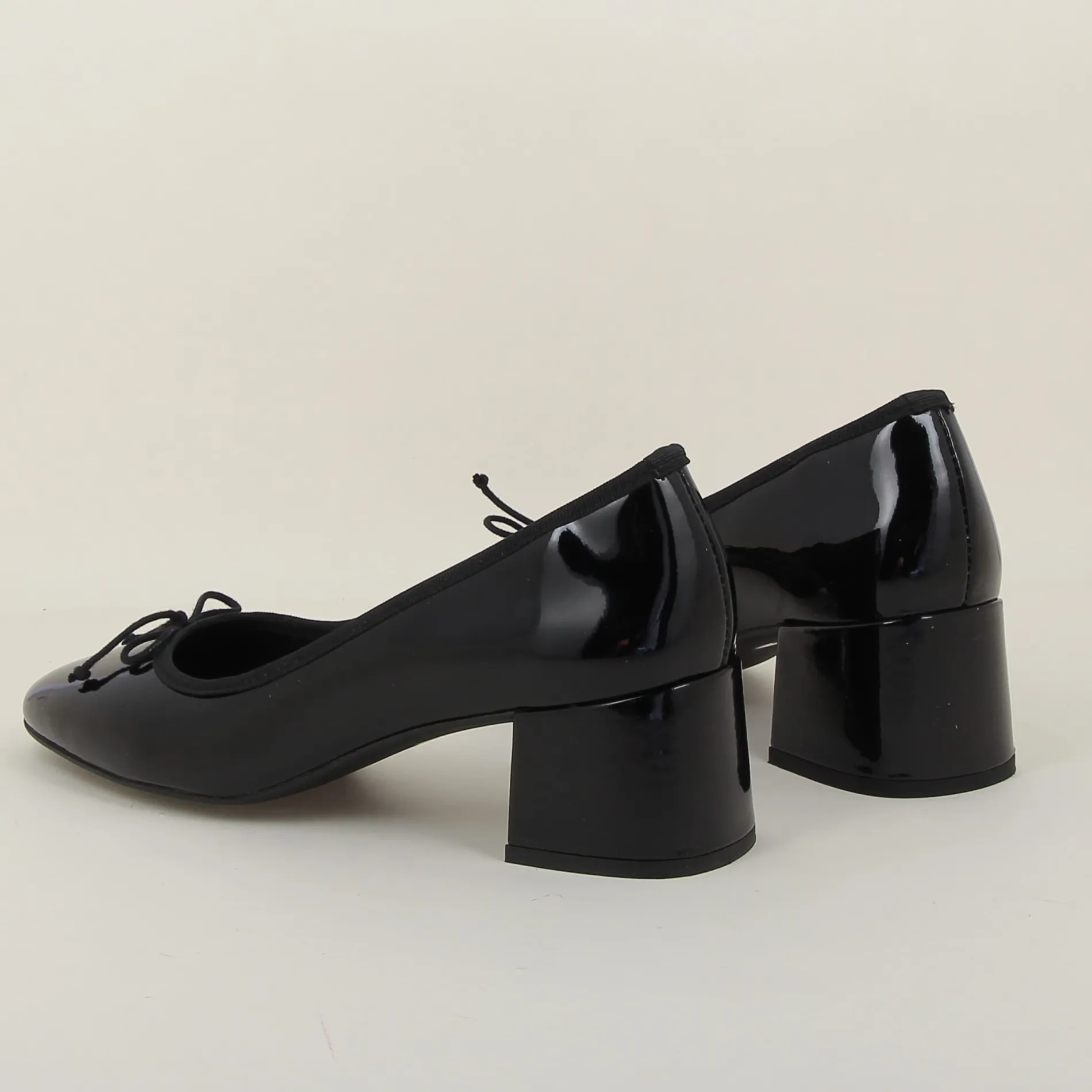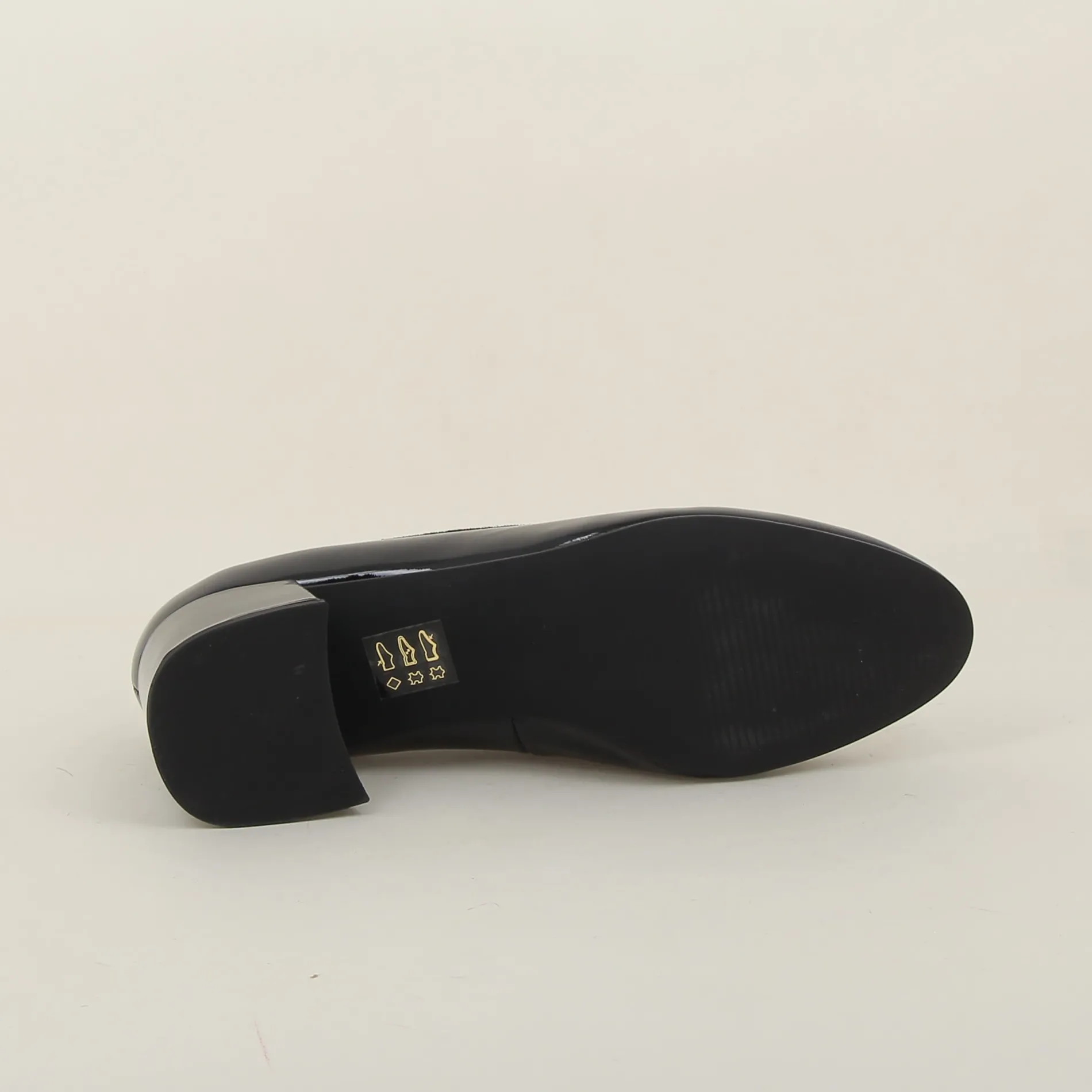 ★ Talons : Talons blocs, d’une hauteur de 5 cm, recouverts de cuir vernis noir pour une élégance uniforme tout en assurant stabilité et confort.